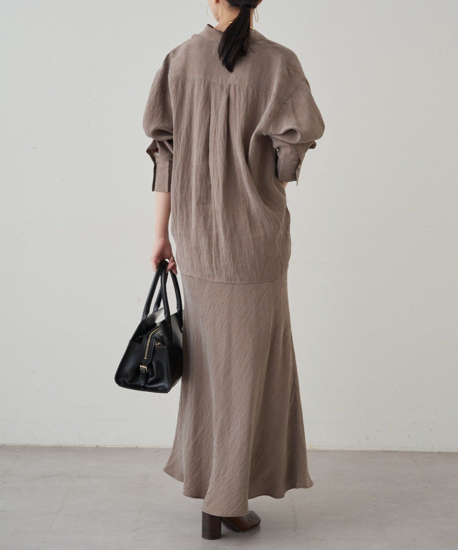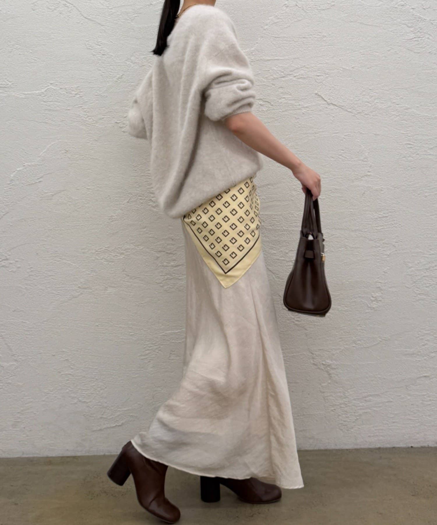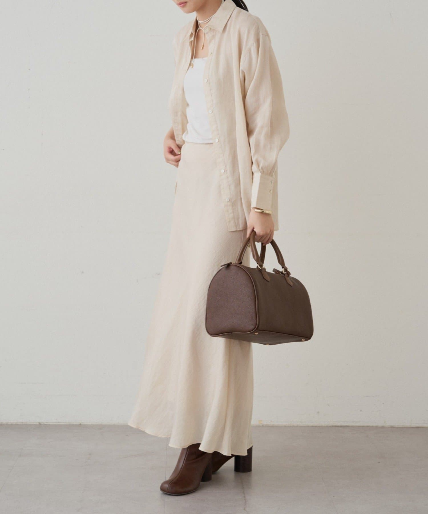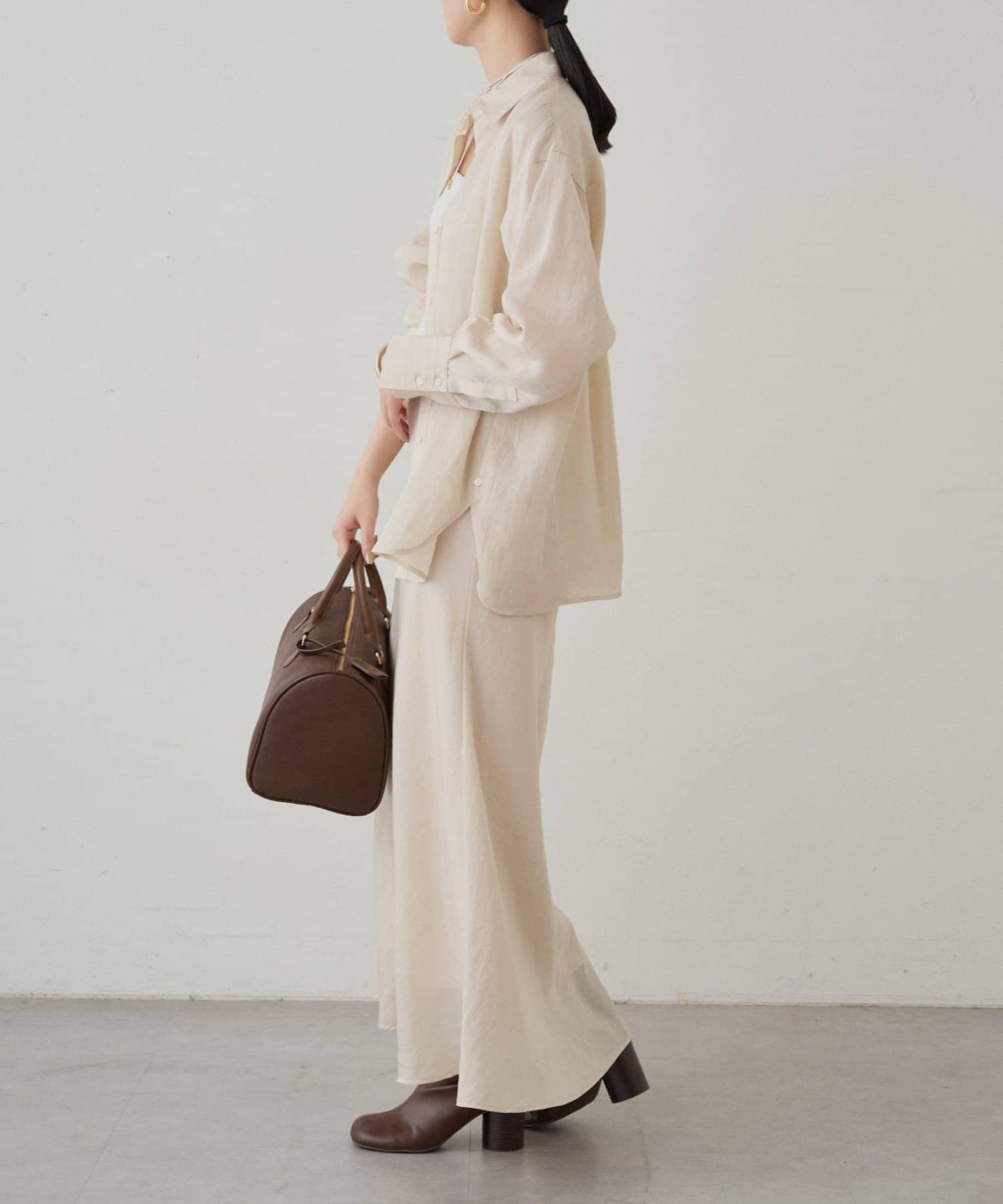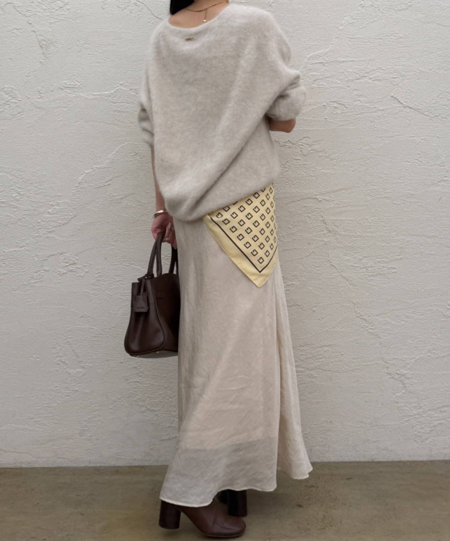 ブラウスやニットと合わせてきれいめに、Tシャツやカットソーと合わせてカジュアルにも着こなせます。