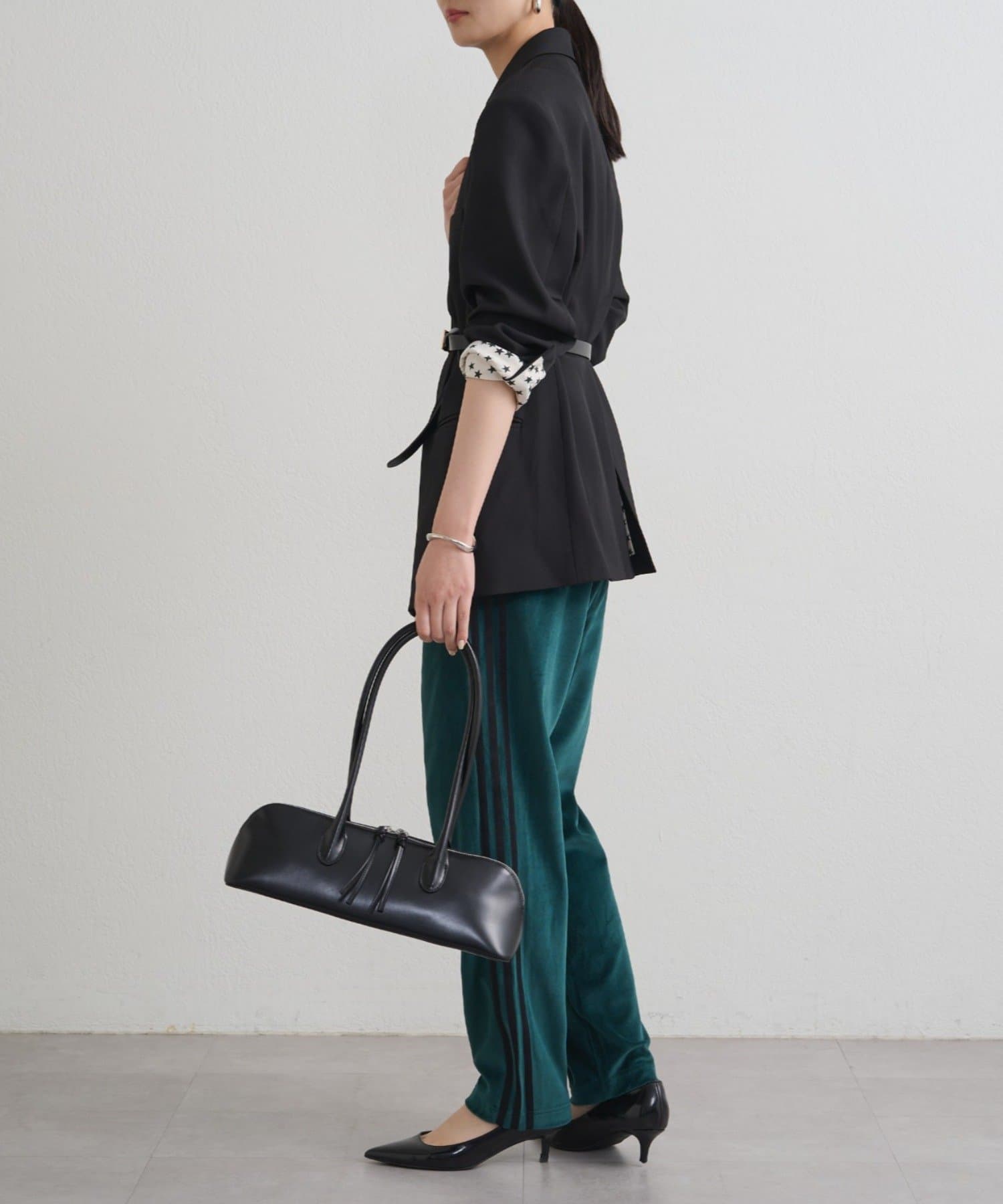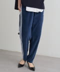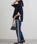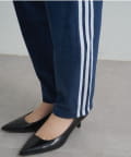 スポーティーな印象のサイドラインが、コーディネートにカジュアルながらも洗練された印象を与えます。