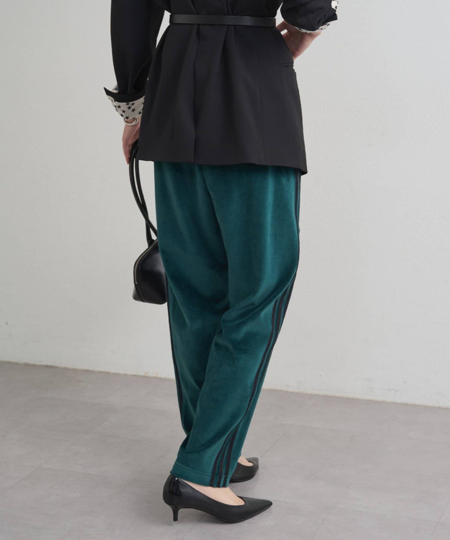 ベロアトラックパンツでワンランク上のカジュアルスタイル