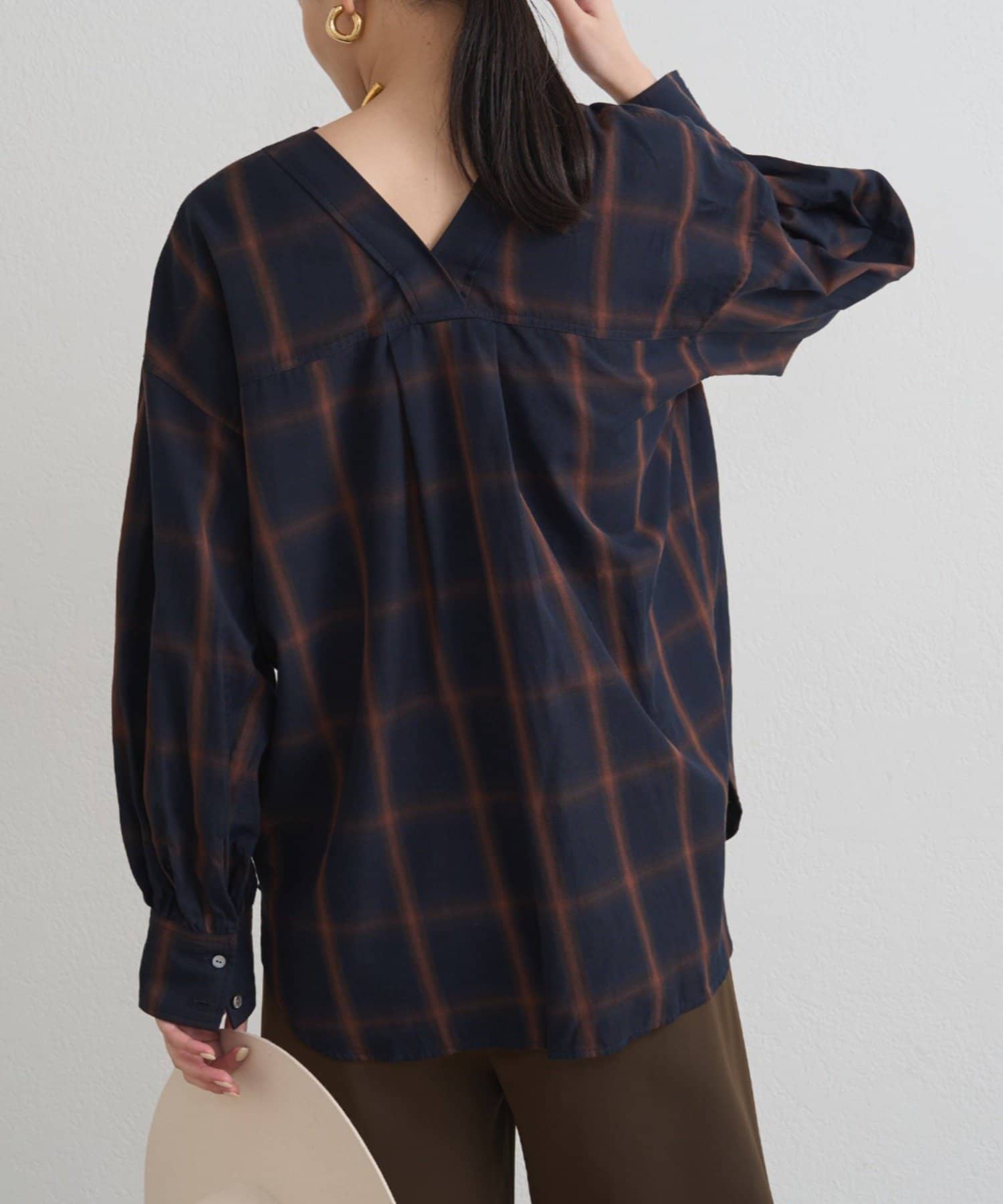 Vネックデザインでデコルテを美しく見せ、女性らしさをプラス。ネックレスとの相性も抜群です。