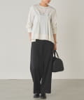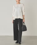 デコルテを美しく見せるラウンドネック。お手持ちのネックレスとの相性も抜群で、コーディネートの幅が広がります。