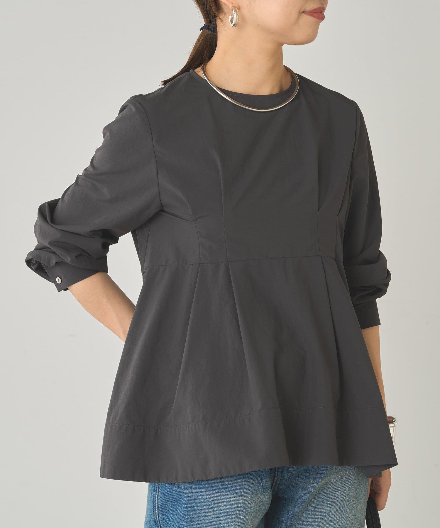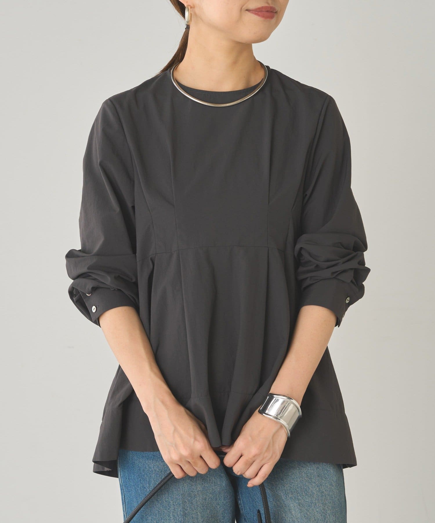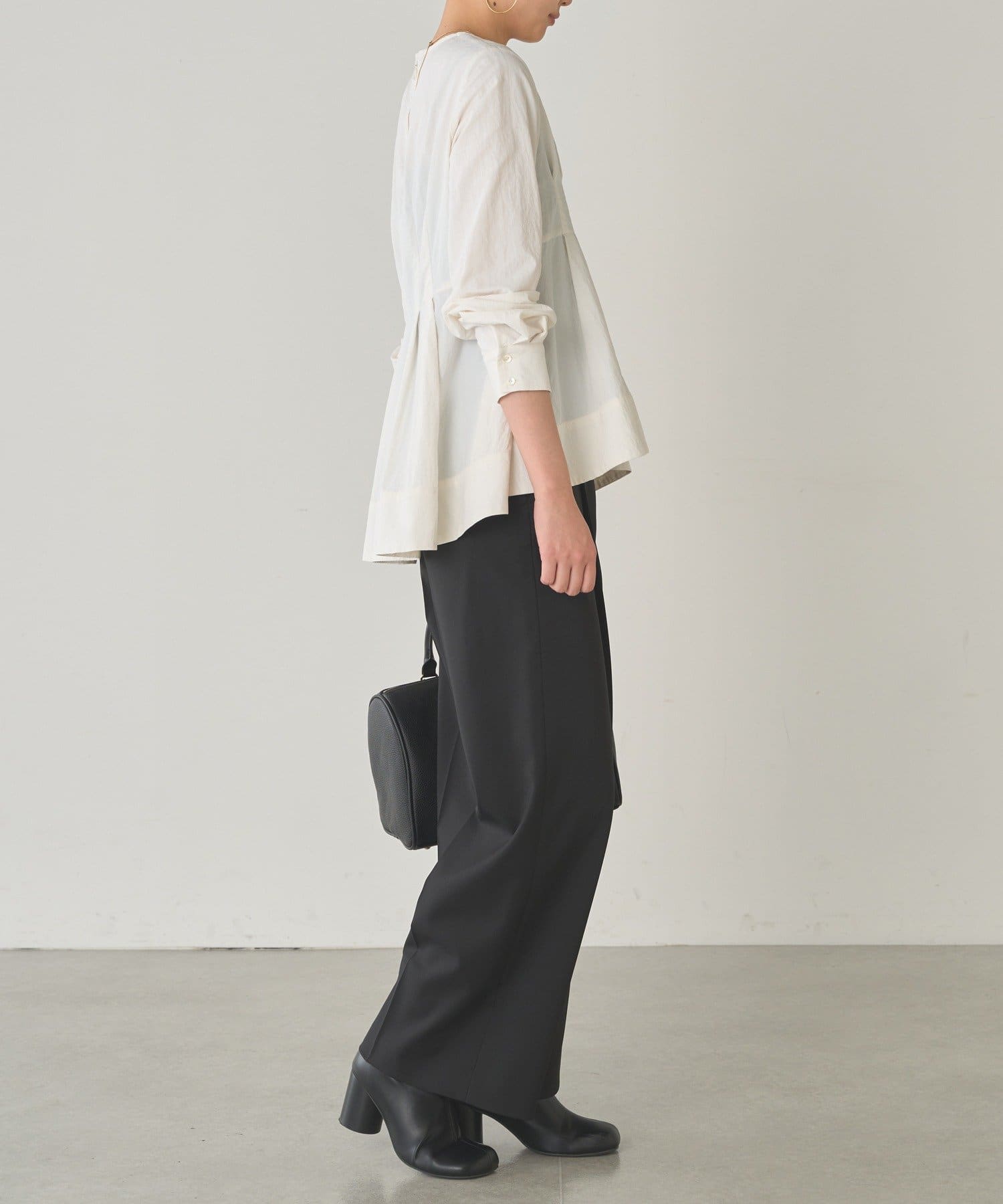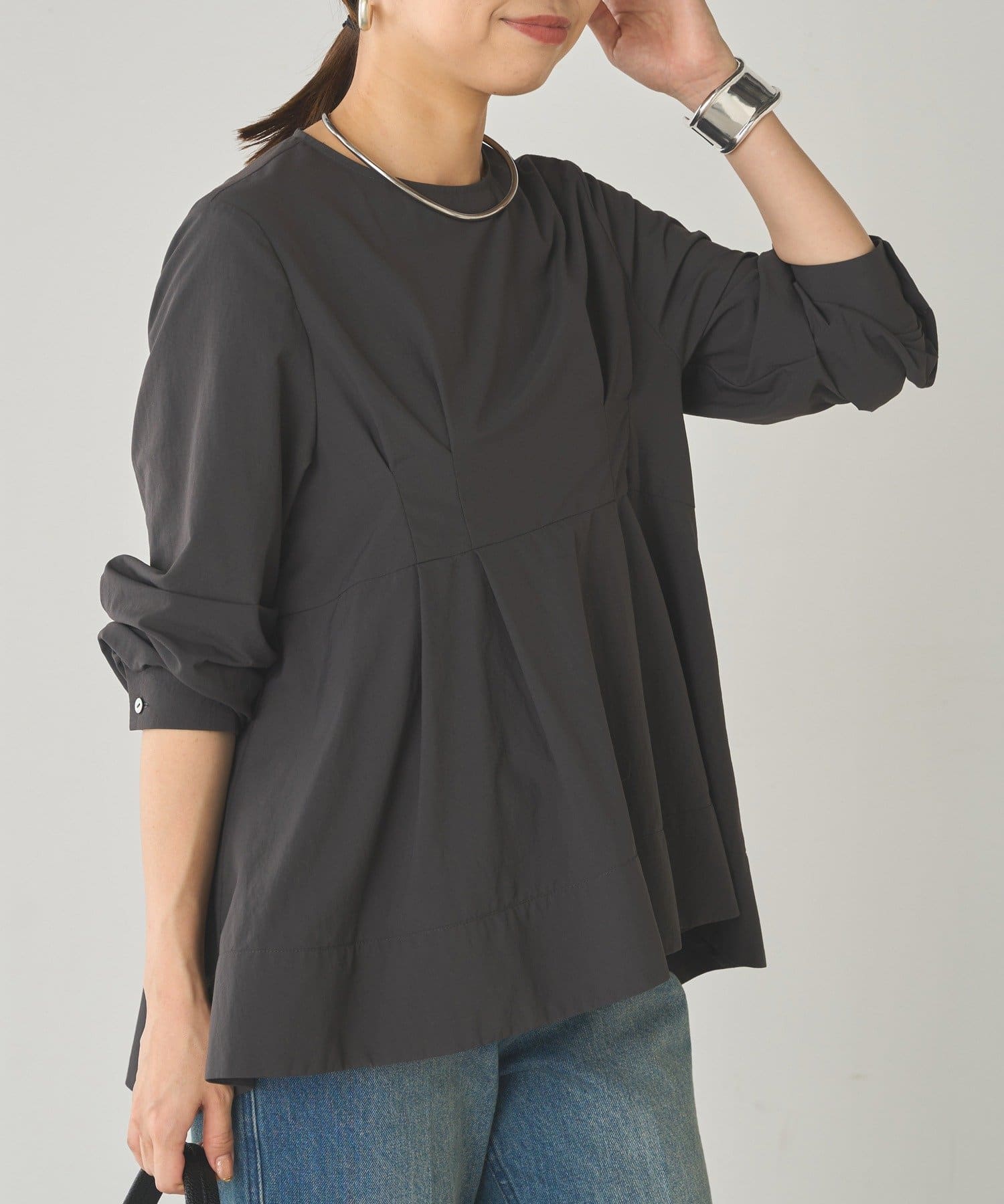 身頃に施されたギャザーが、女性らしい柔らかなシルエットを演出。