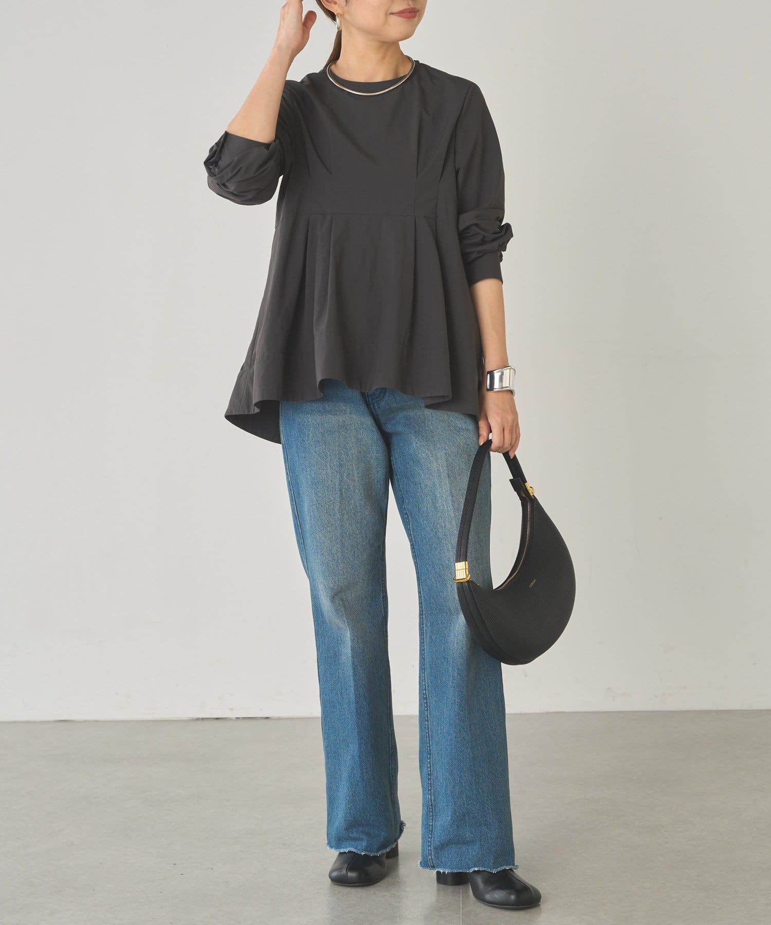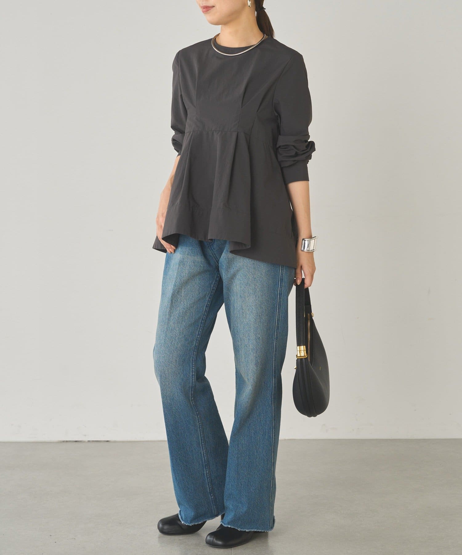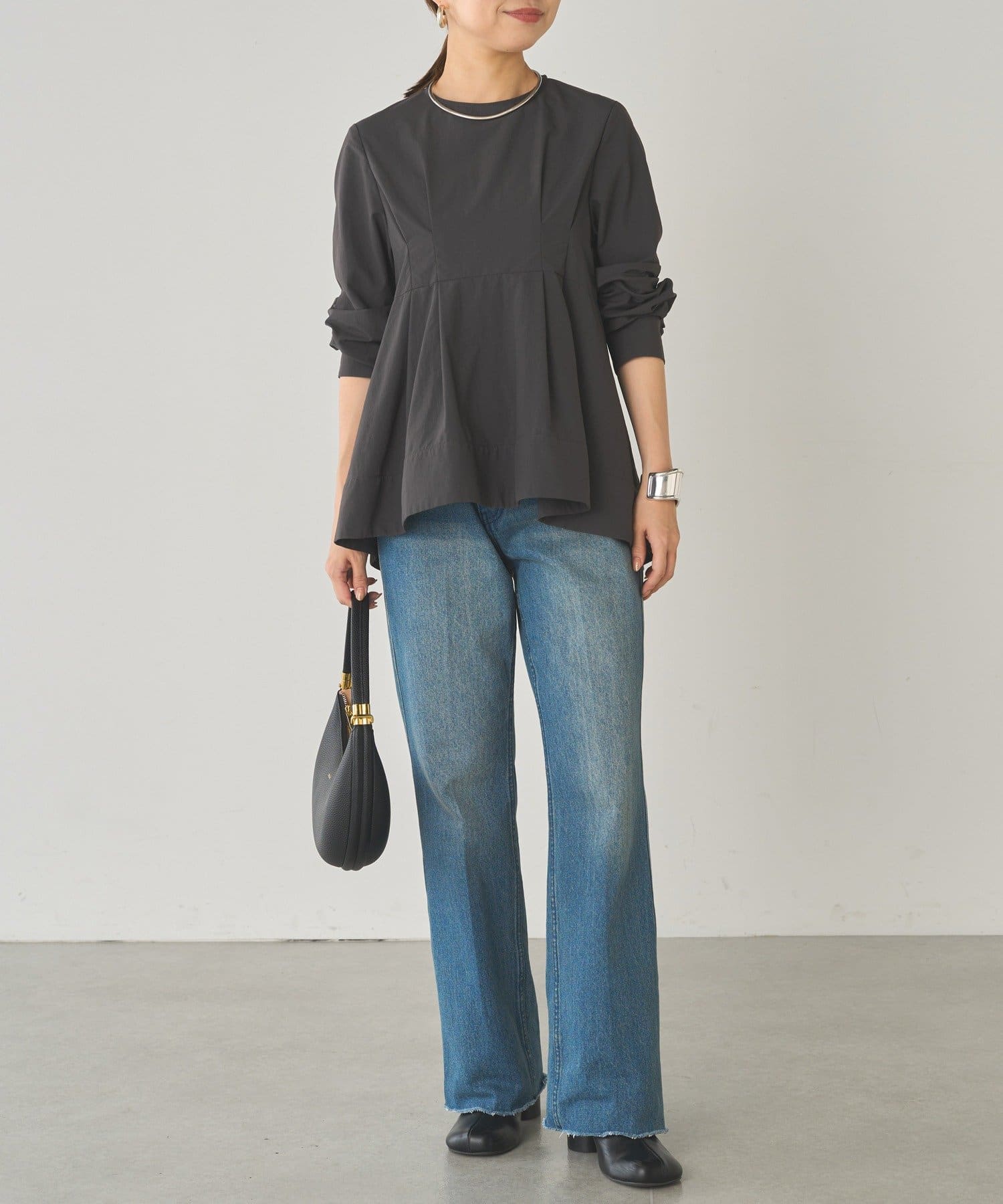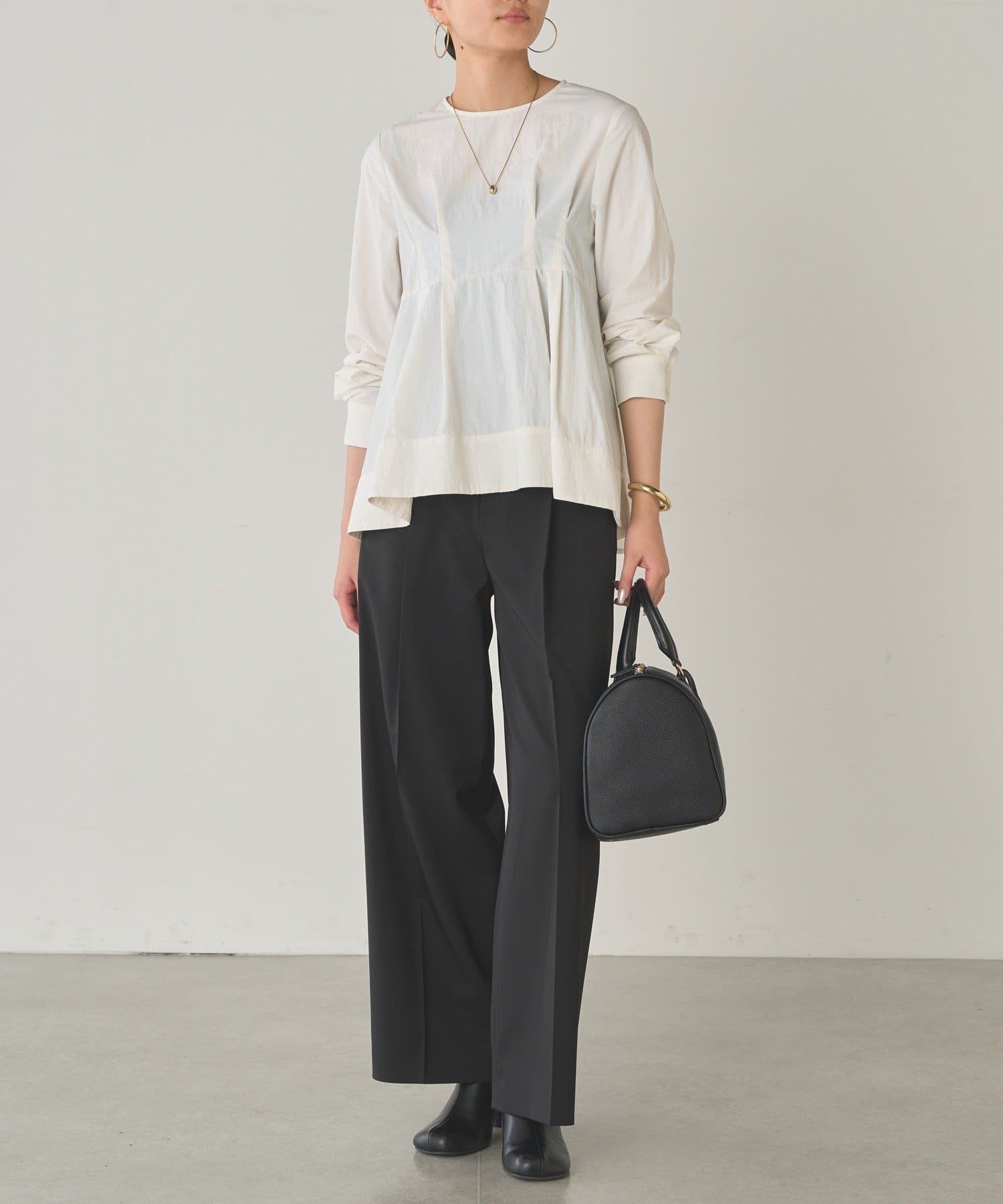 身頃に施されたギャザーが、女性らしい柔らかなシルエットを演出。