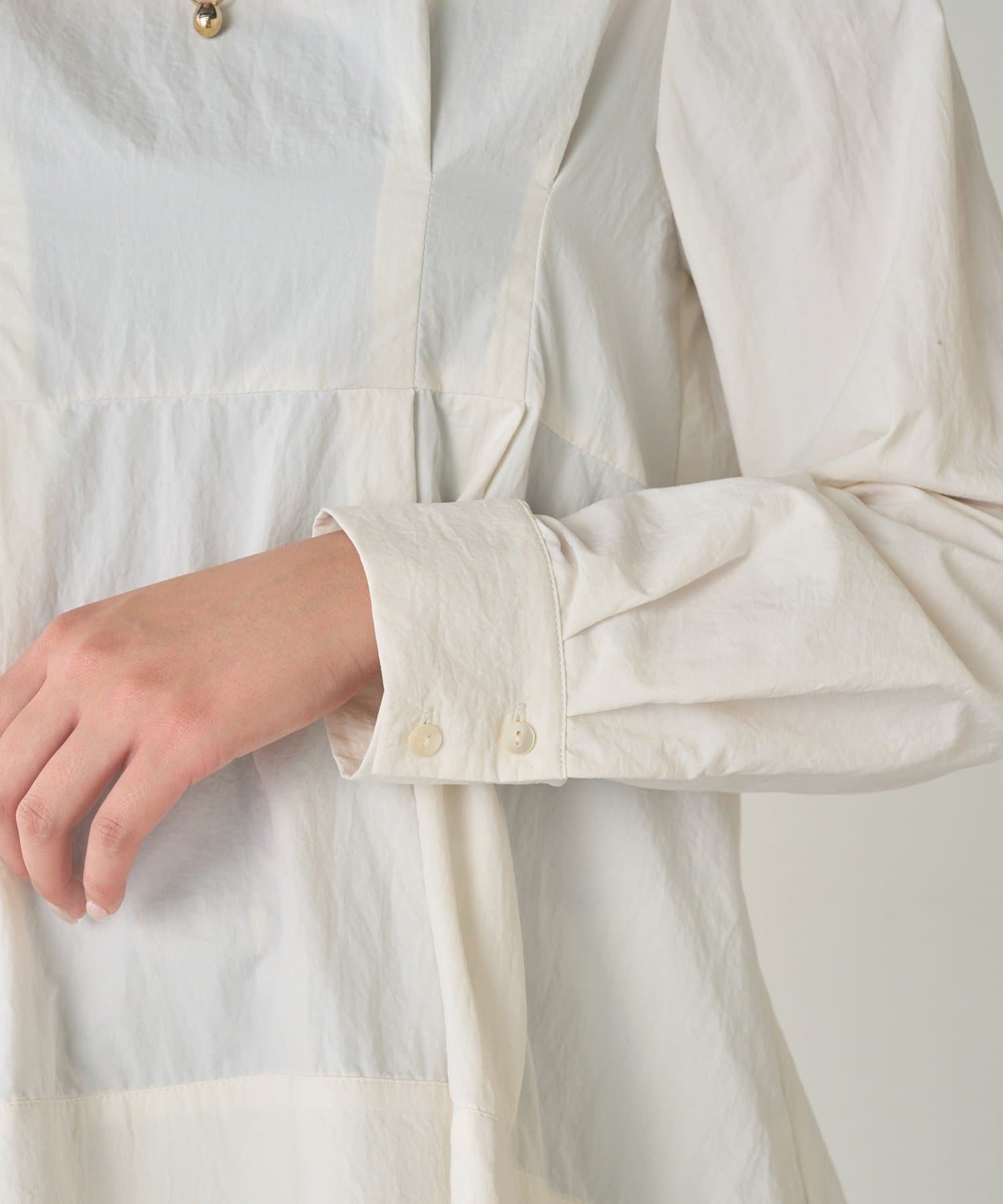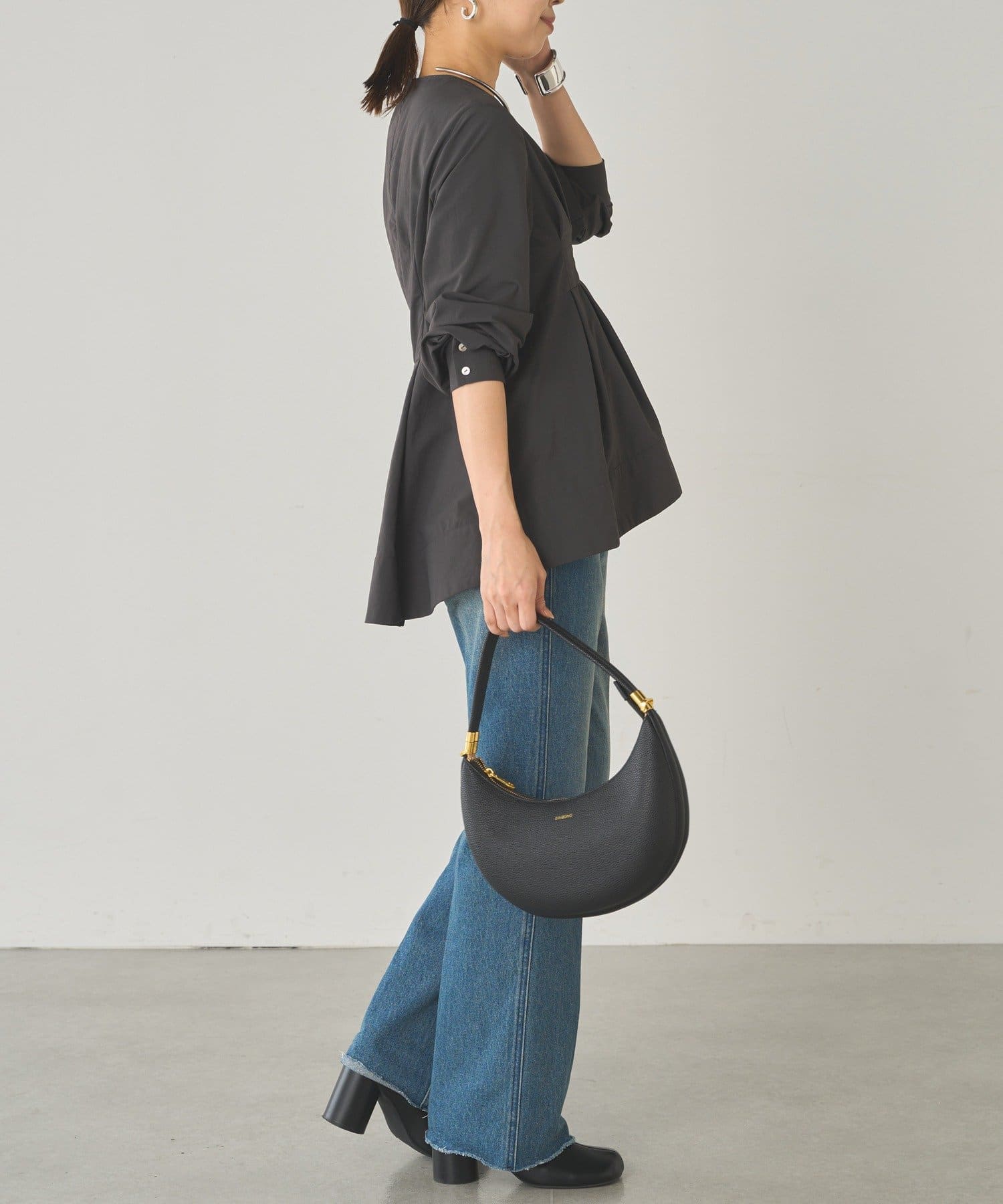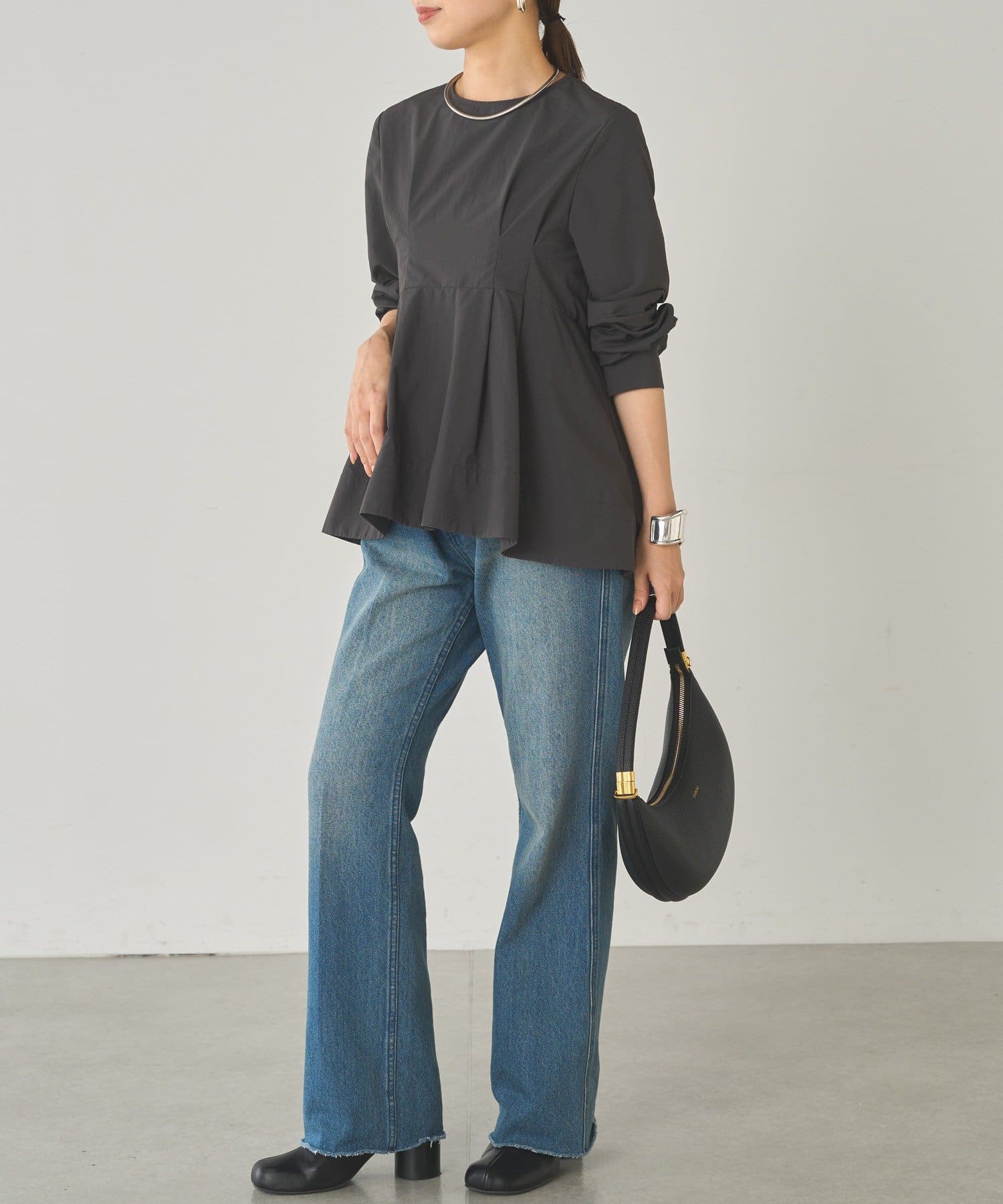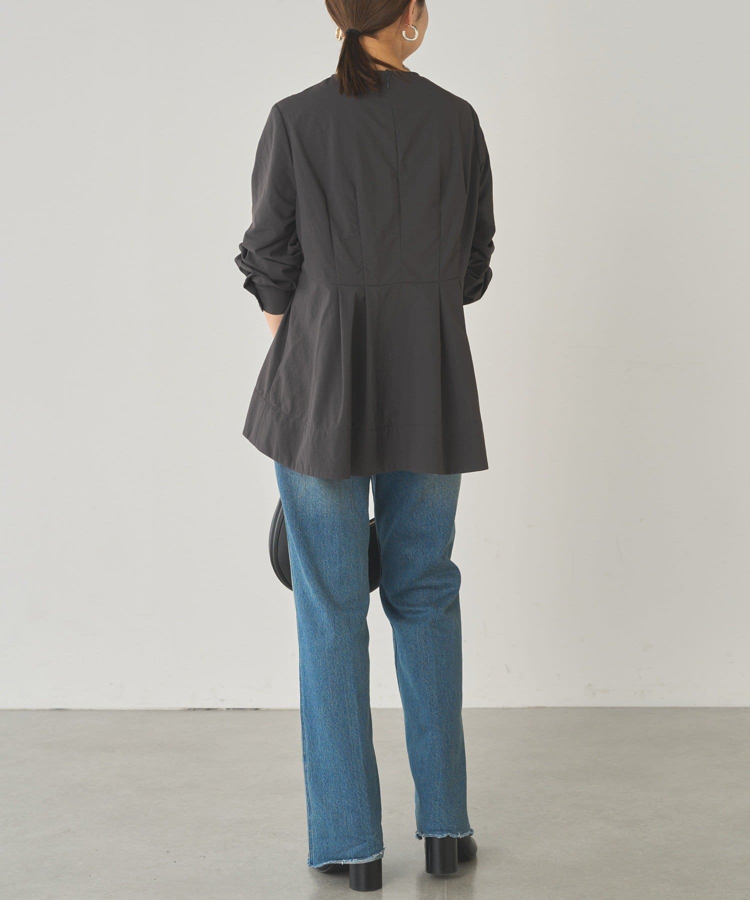 身頃に施されたギャザーが、女性らしい柔らかなシルエットを演出。