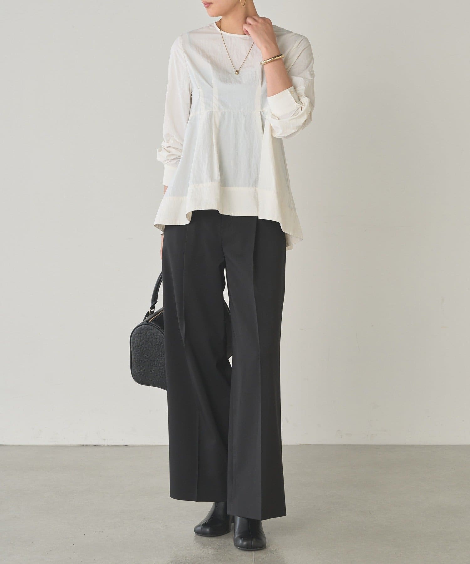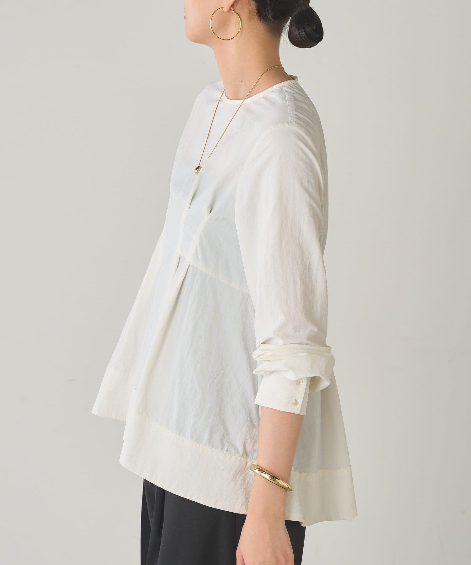 シンプルな中にもこだわりが光る、軽やかブラウス。