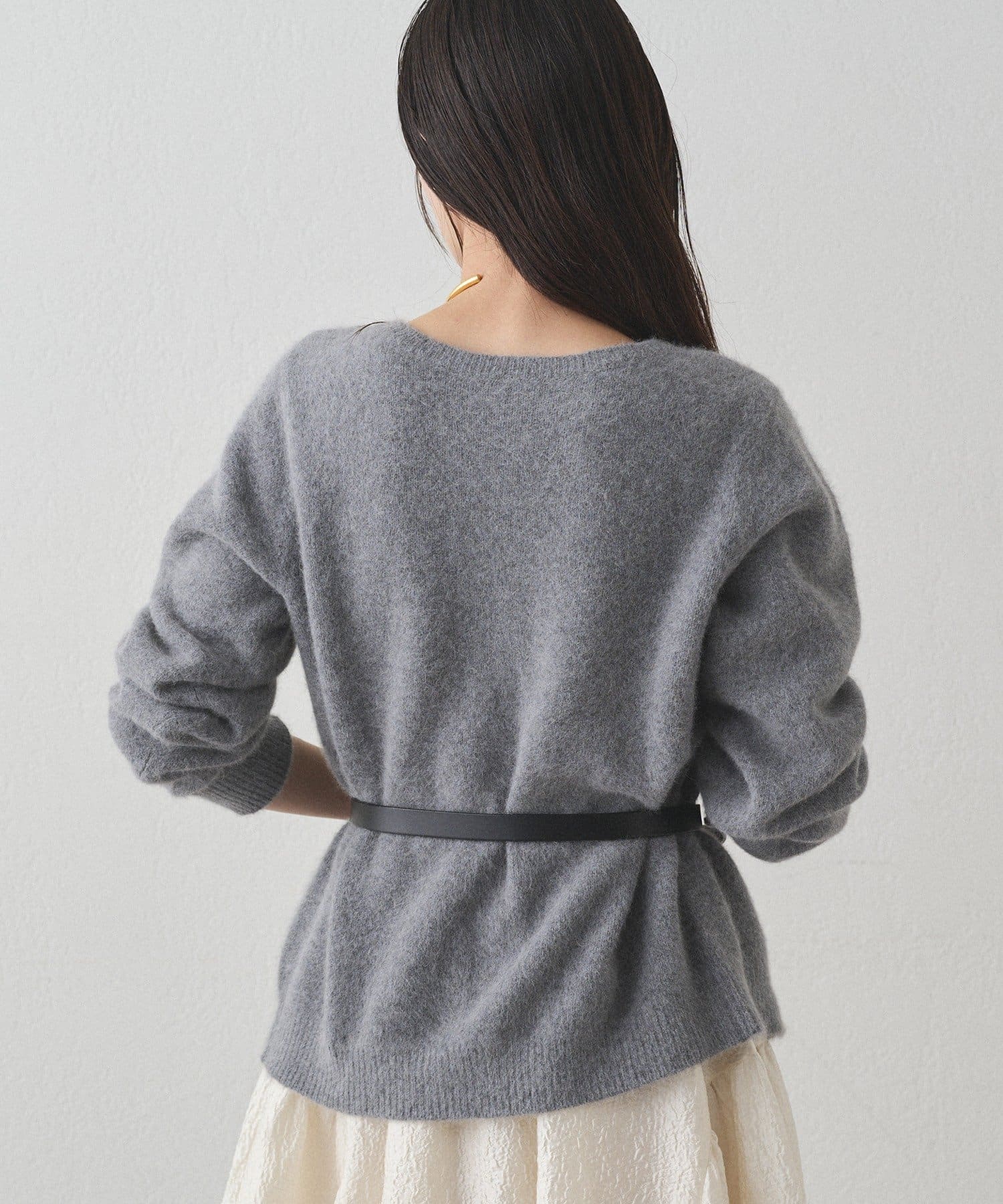 首元をすっきりと見せるクルーネックは、ネックレスやスカーフとの相性も抜群。