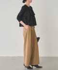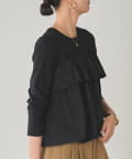 胸元にあしらわれたフリルは、甘すぎない、大人の女性に似合うデザイン。シンプルなトップスに華やかさをプラスし、顔周りを明るく見せてくれます。フリルの配置やボリューム感にもこだわり、着る人の魅力を最大限に引き出します。