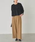 柔らかく、肌触りの良い素材を使用しているので、ストレスフリーな着心地です。程よくゆとりのあるシルエットで、体型カバー効果も期待できます。
