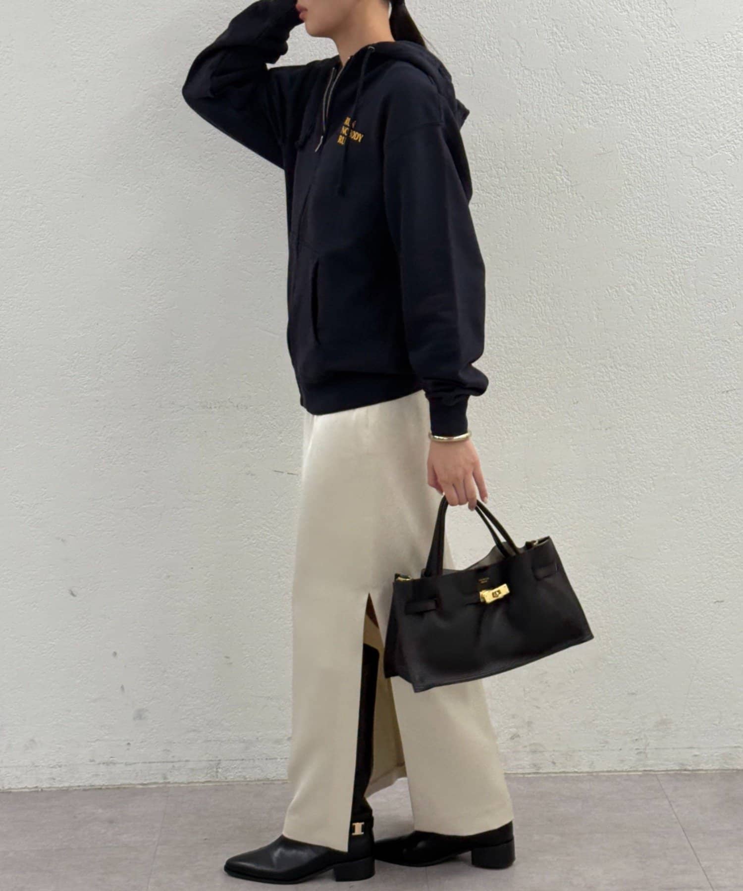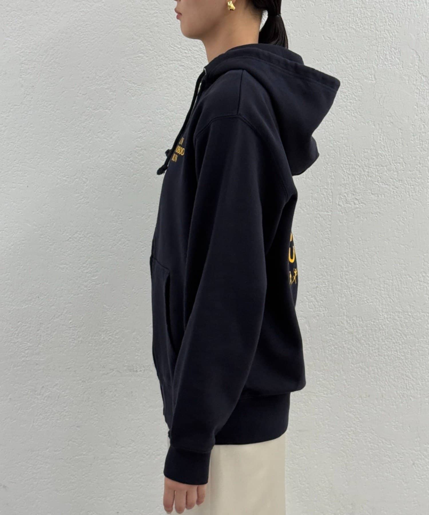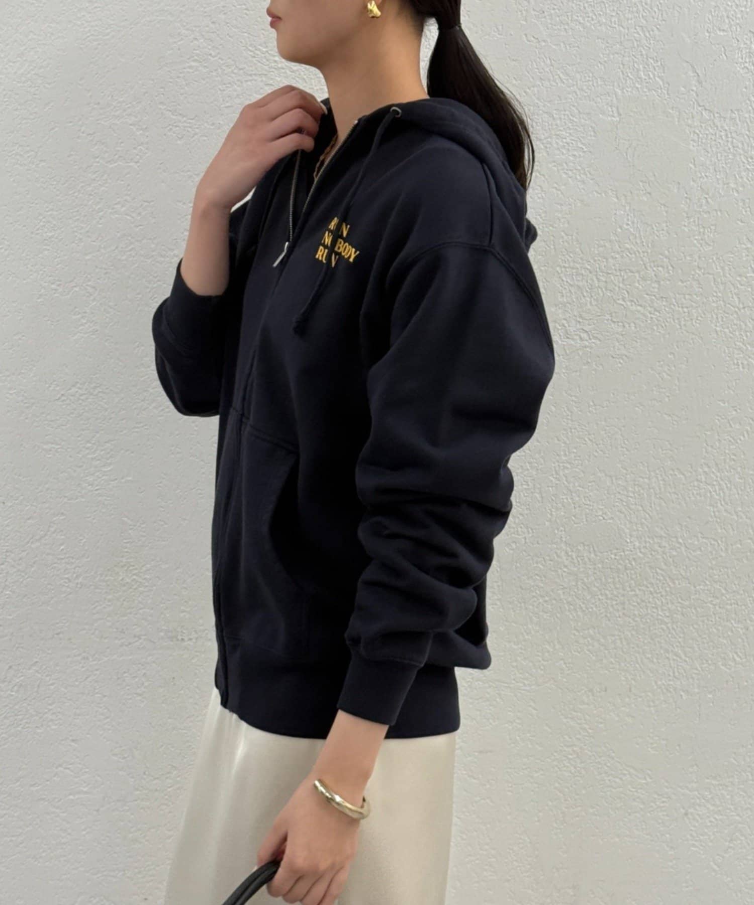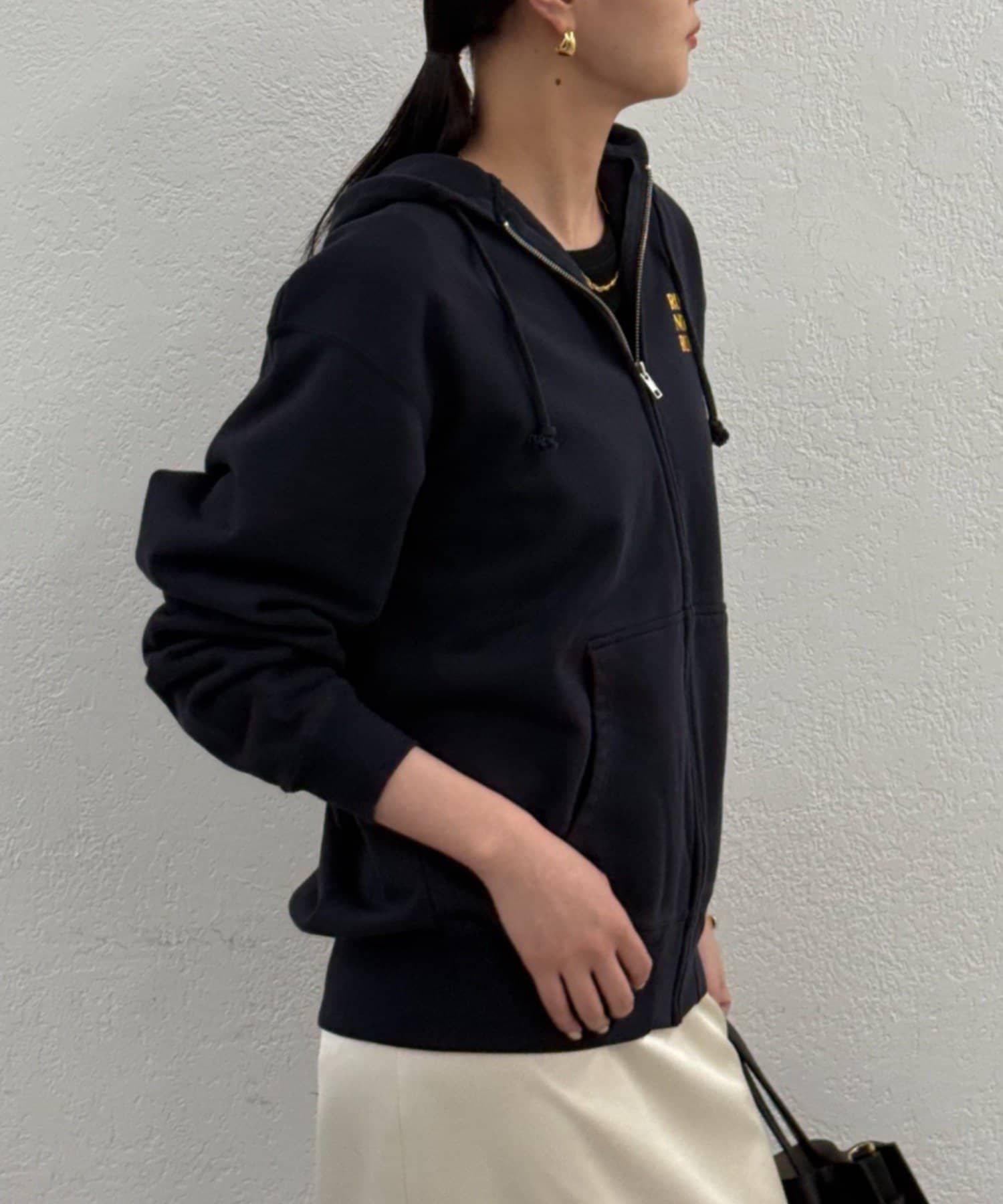 一見カジュアルなフーディーも、遊び心のあるロゴデザインで、ワンランク上のスタイルに。