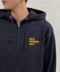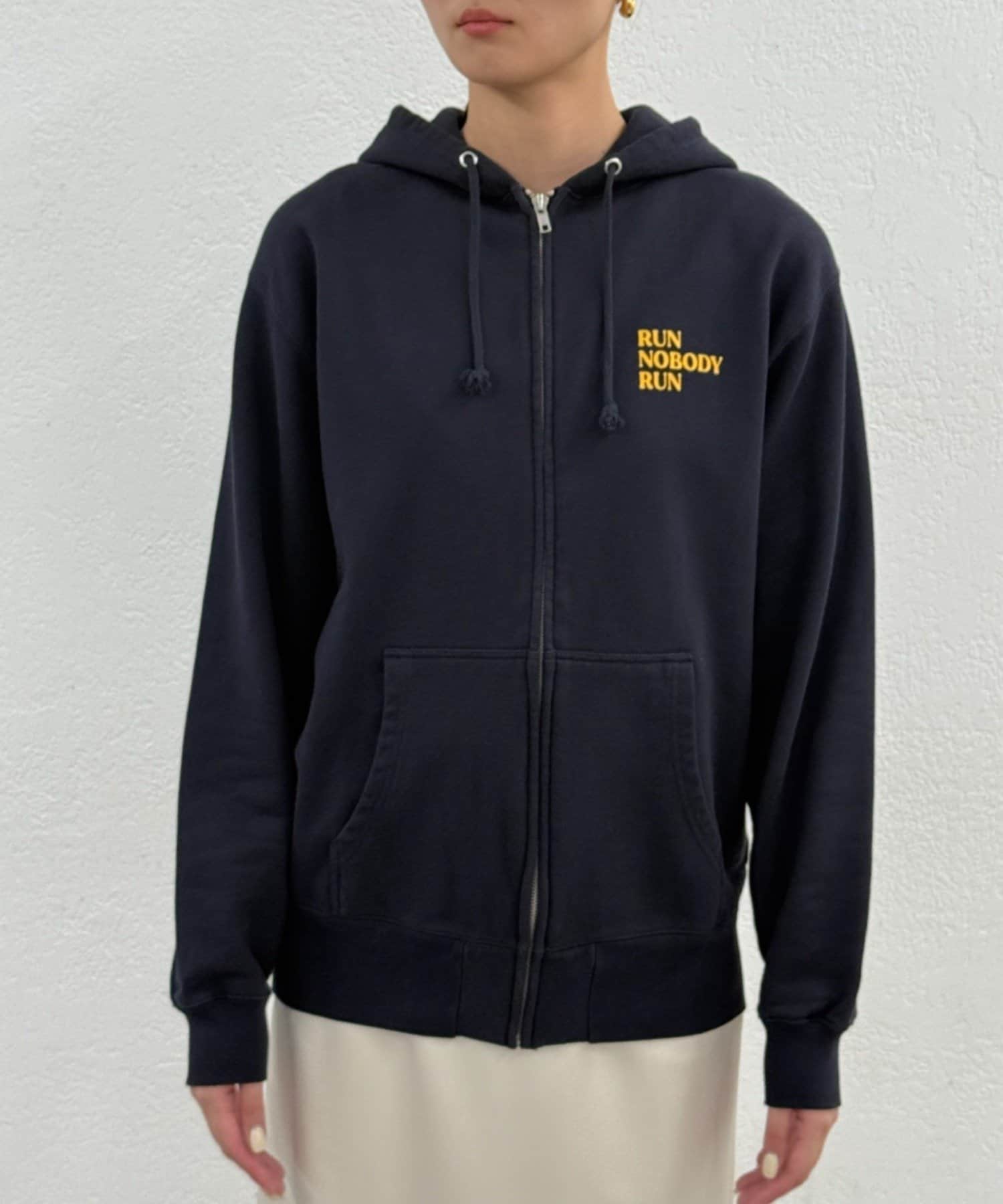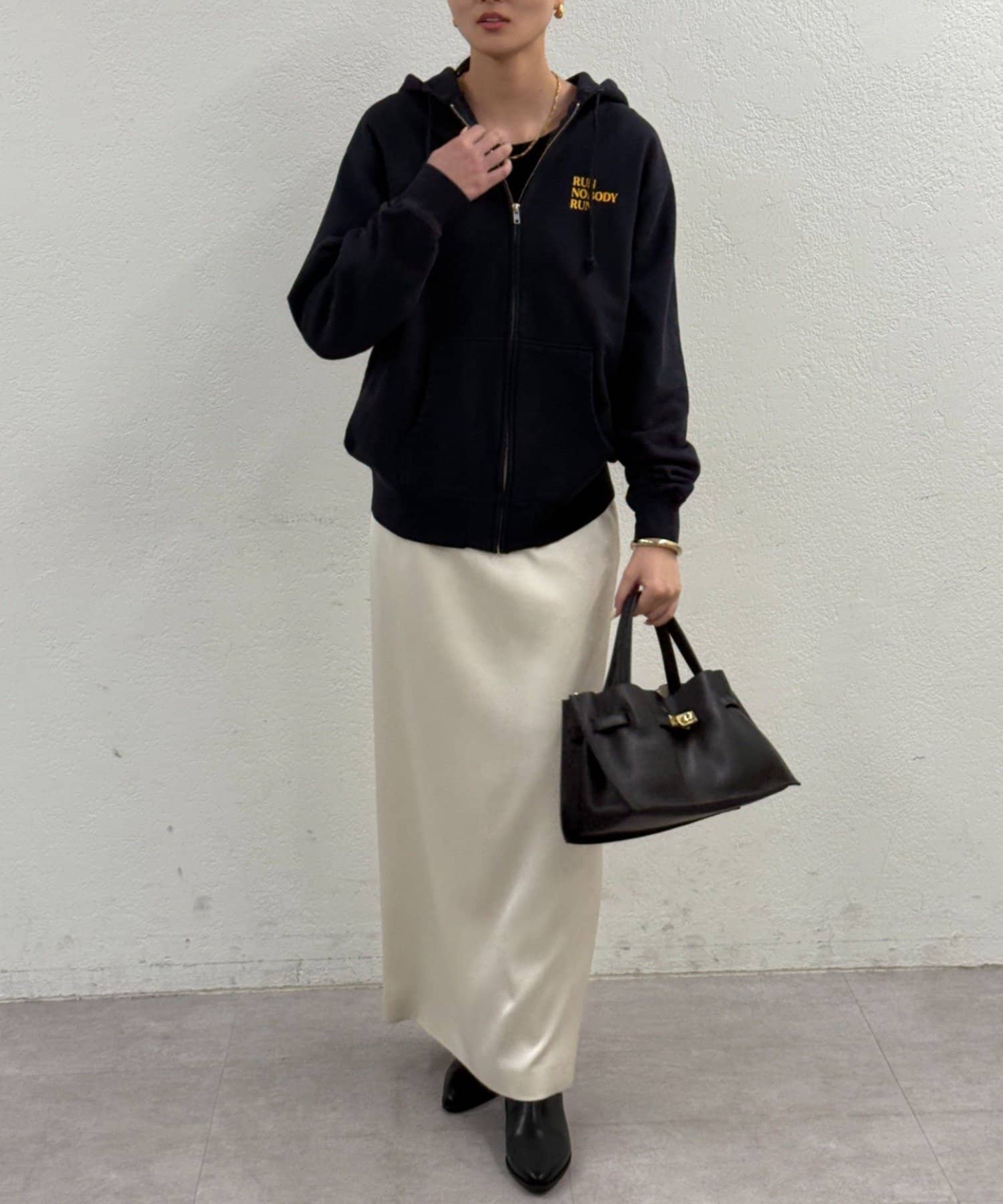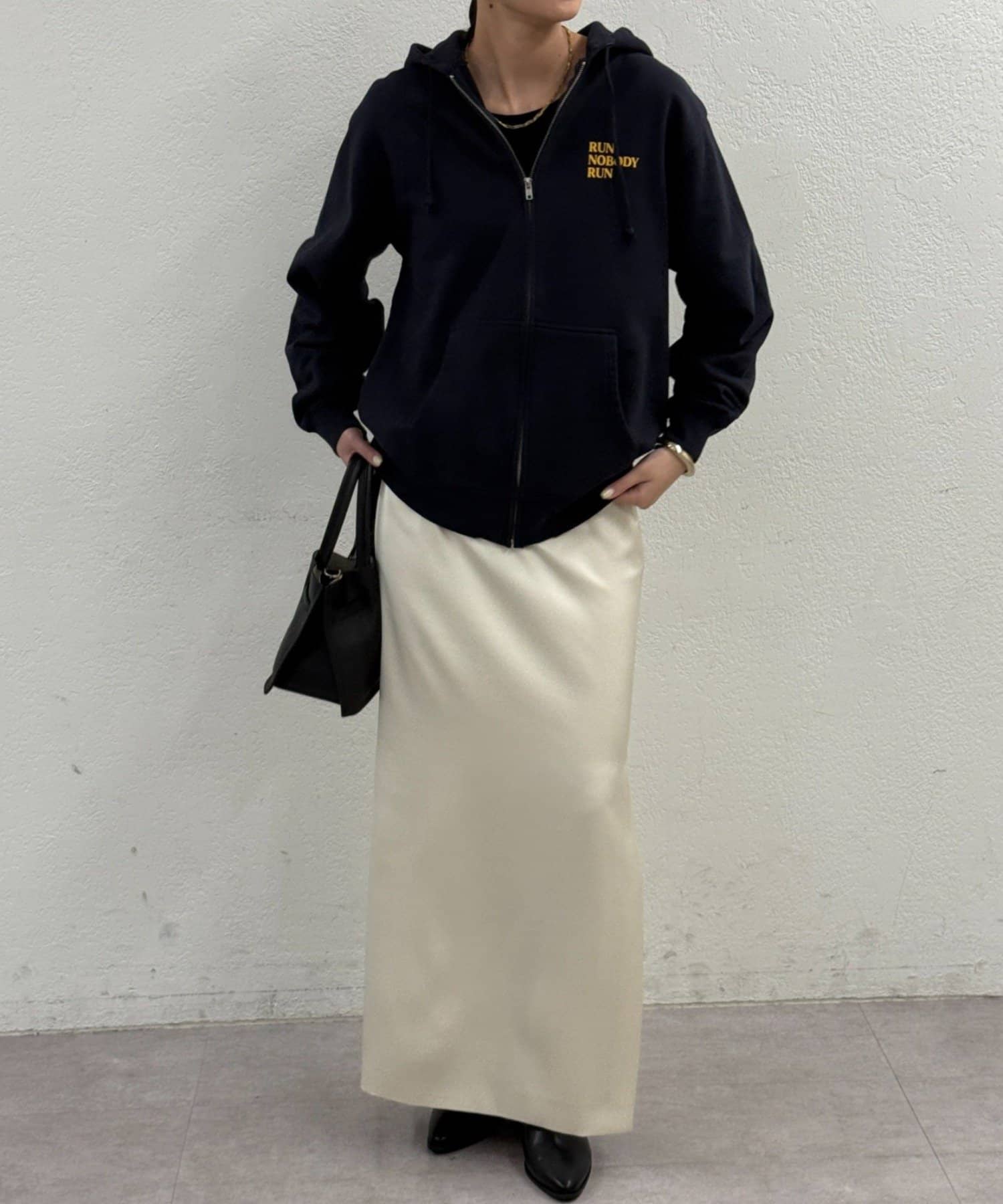 一見カジュアルなフーディーも、遊び心のあるロゴデザインで、ワンランク上のスタイルに。