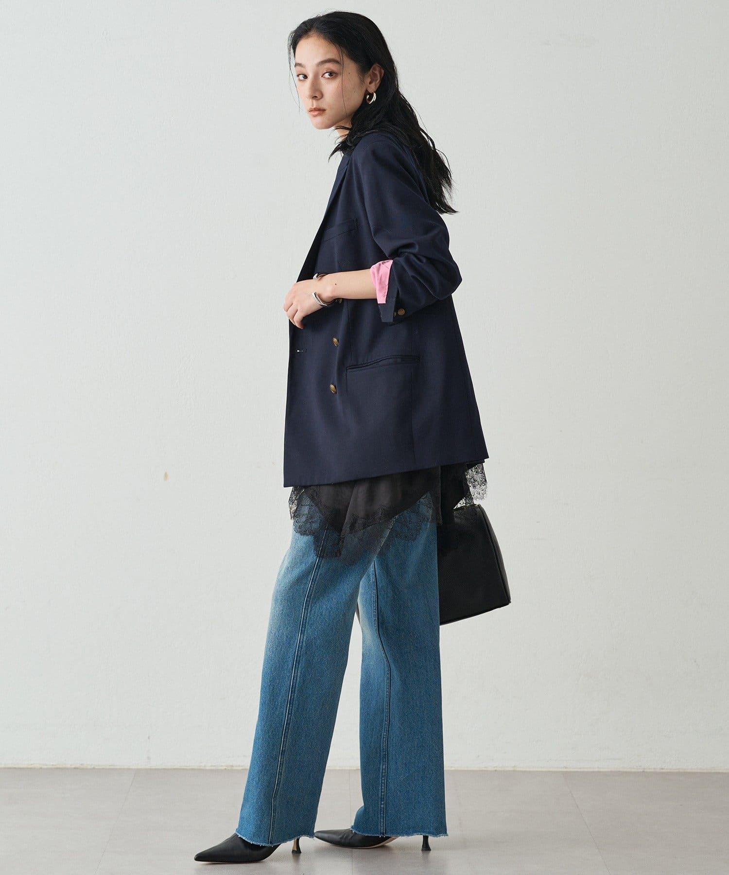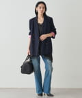デニムやTシャツと合わせたカジュアルスタイルも、こなれ感のある大人カジュアルにアップデートできます。