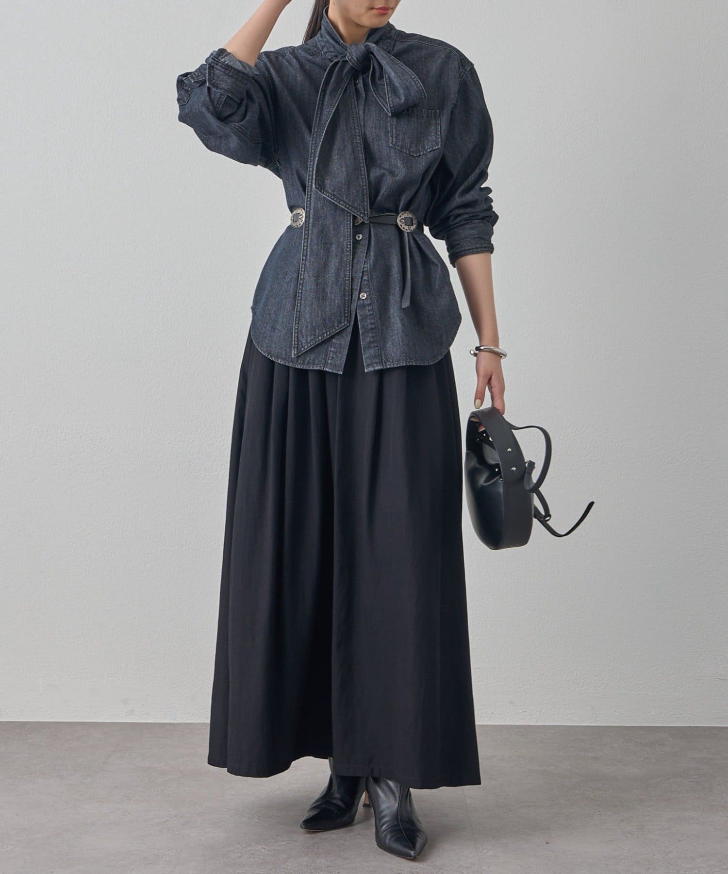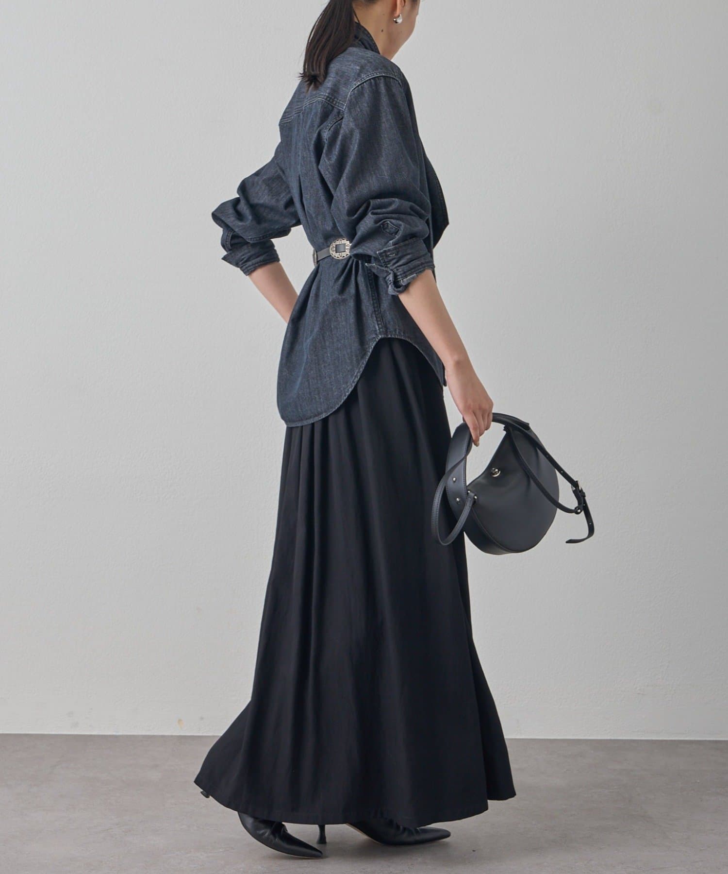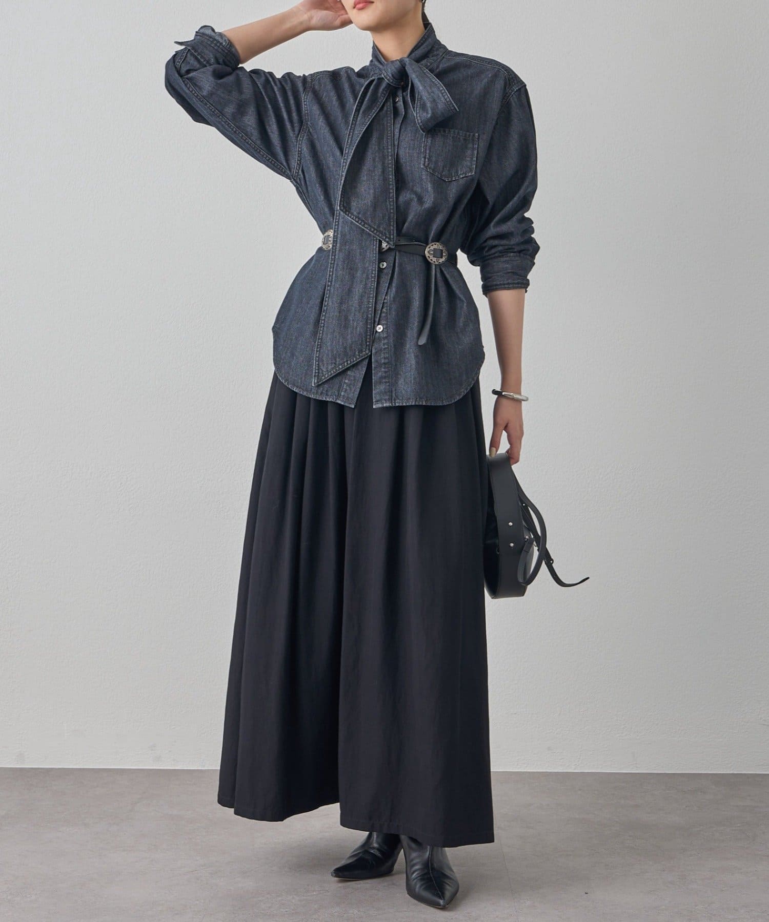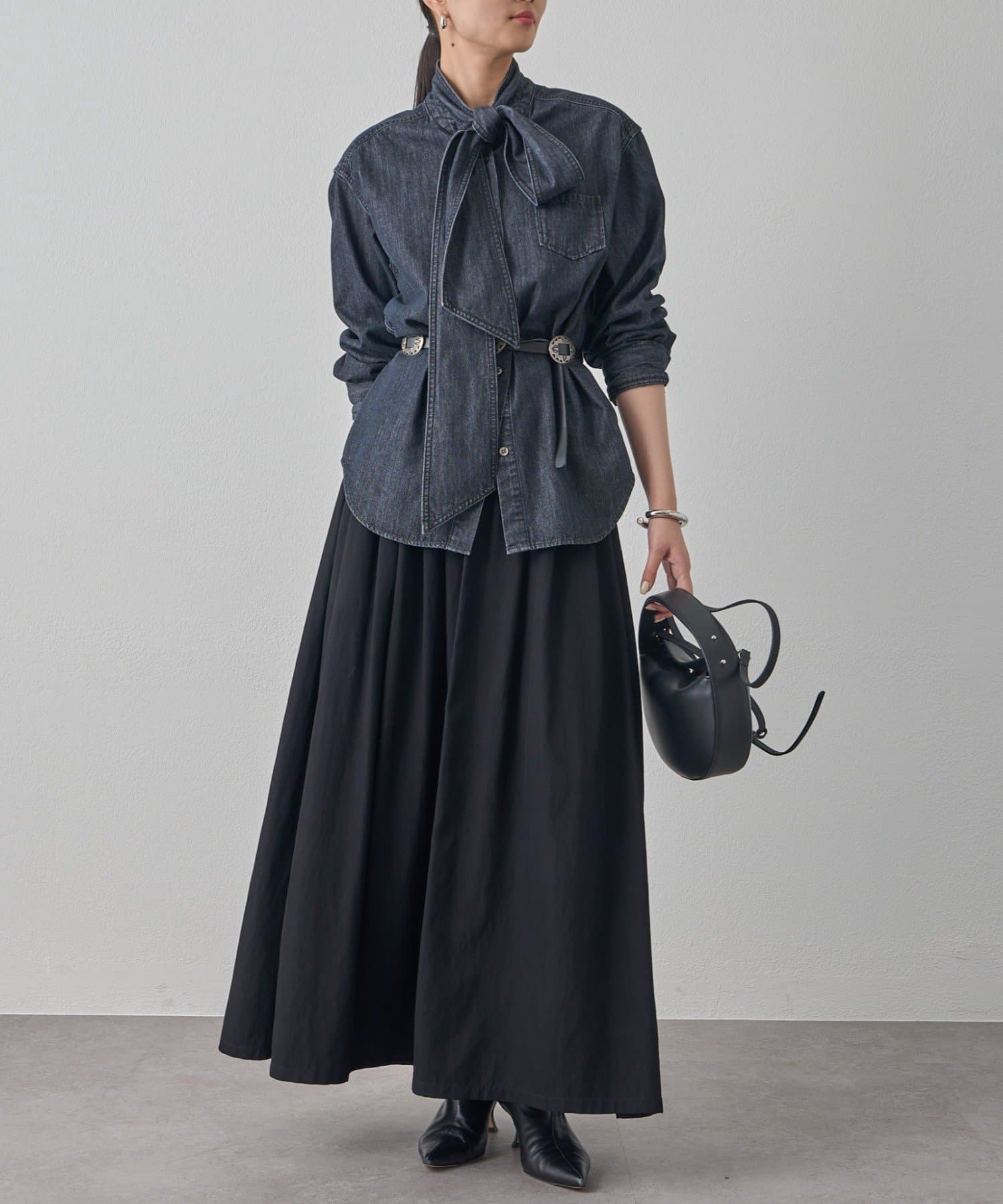 シンプルなデザインだからこそ、小物で個性を演出するのがおすすめ。