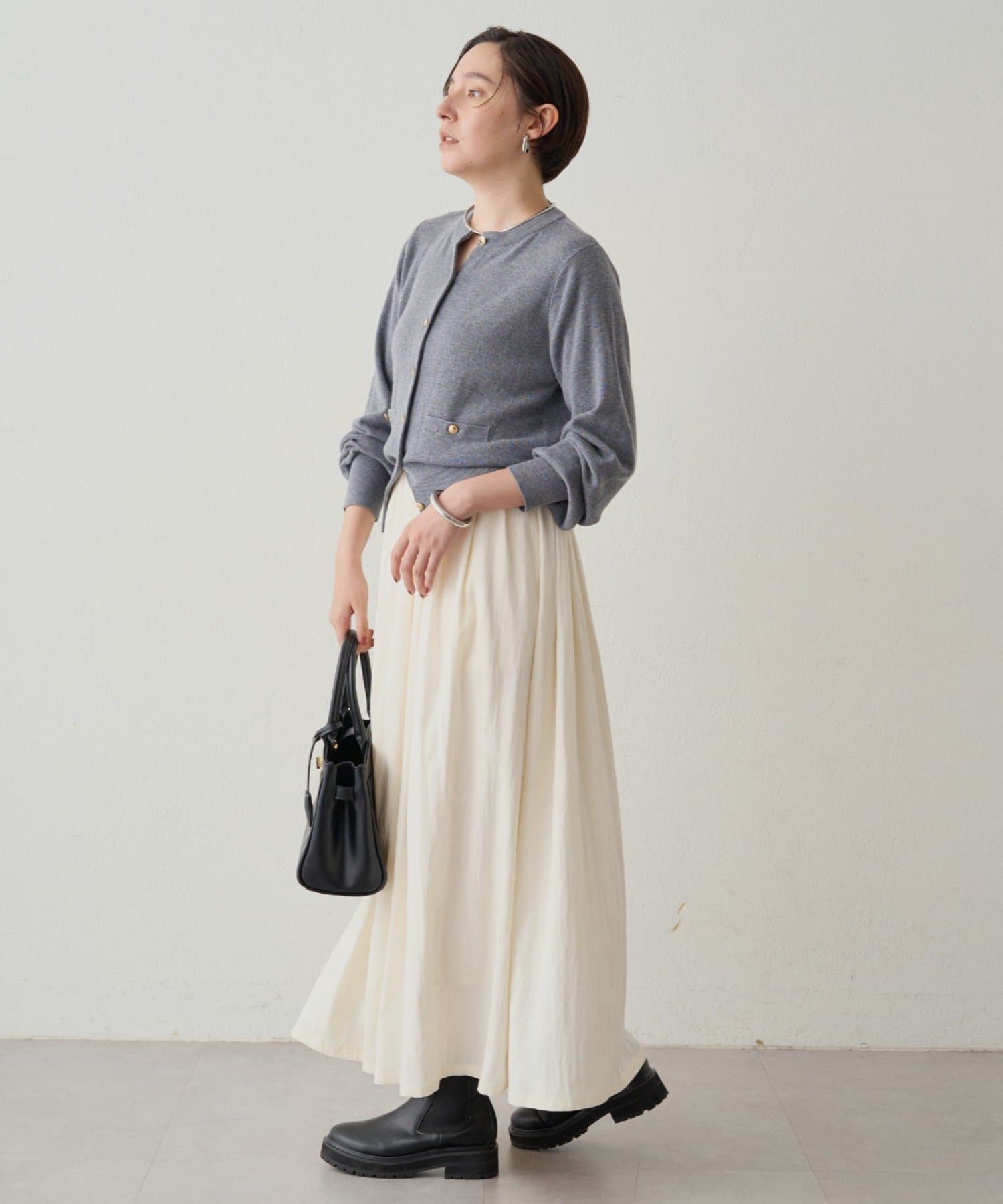 軽やかでストレスフリーな着心地ながら、上品な印象をキープ。