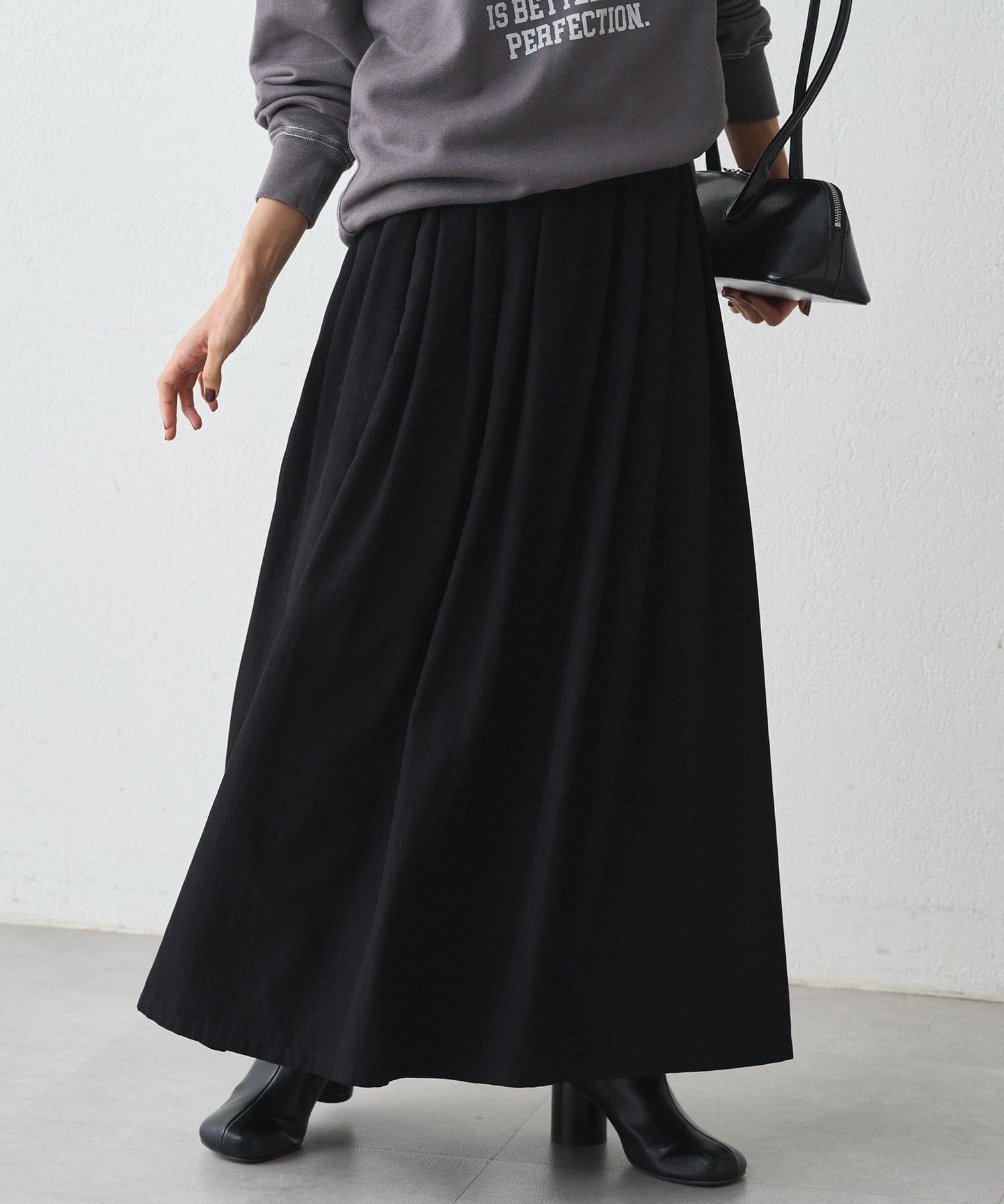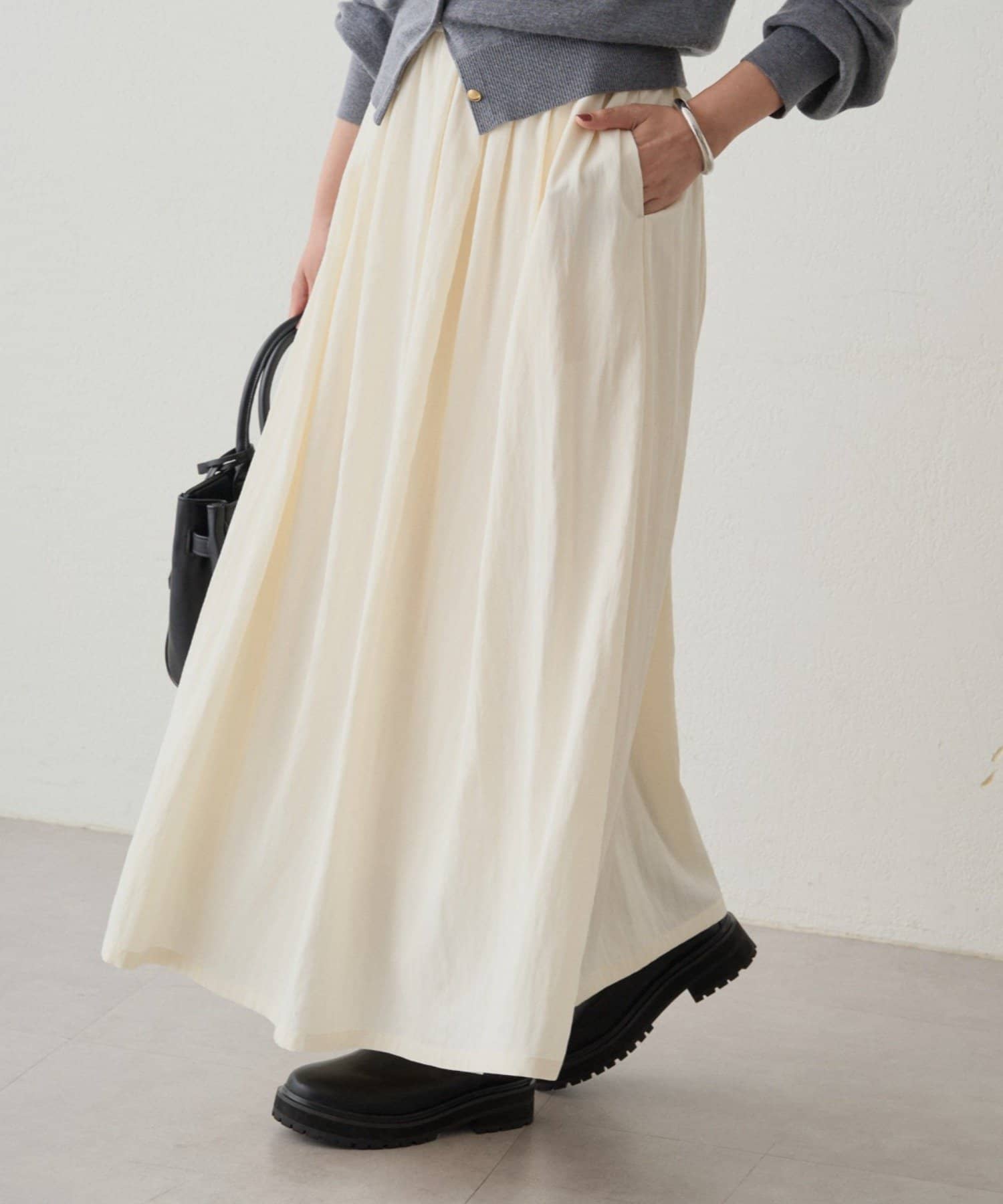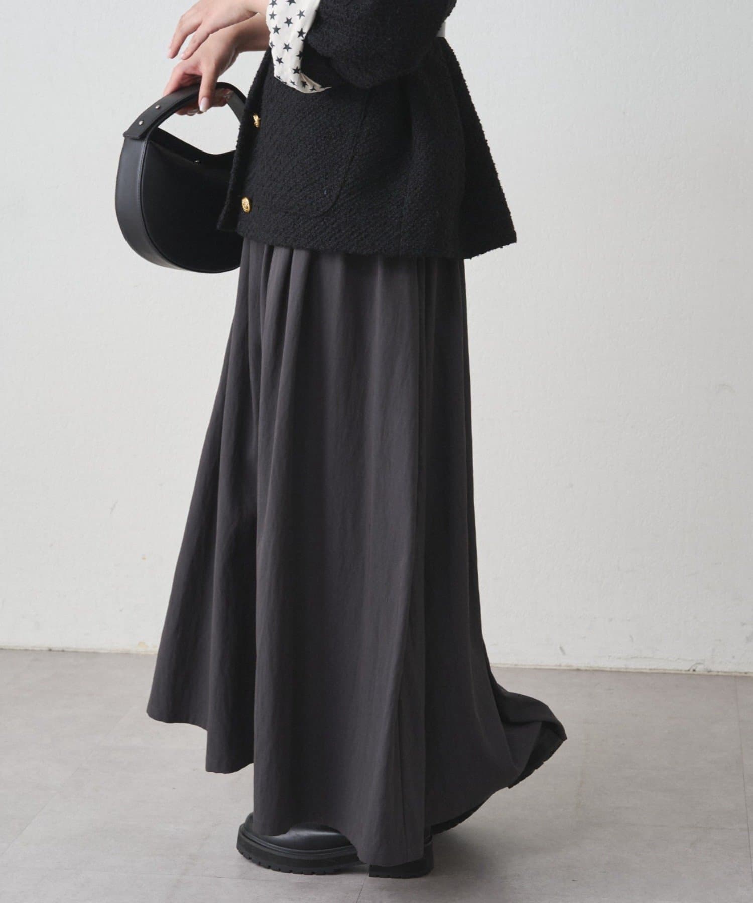 ふんわりと広がるシルエットが美しいロングスカート