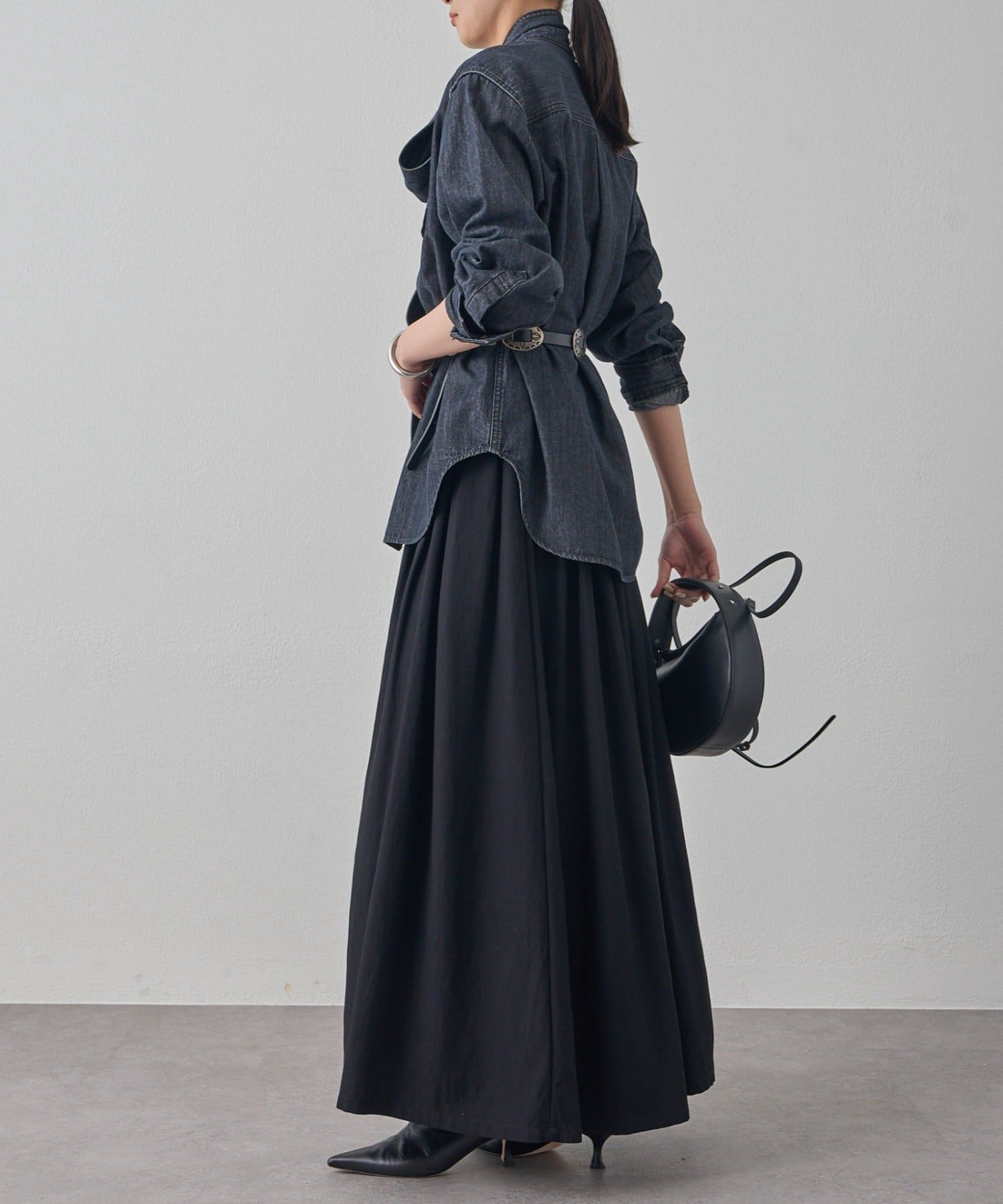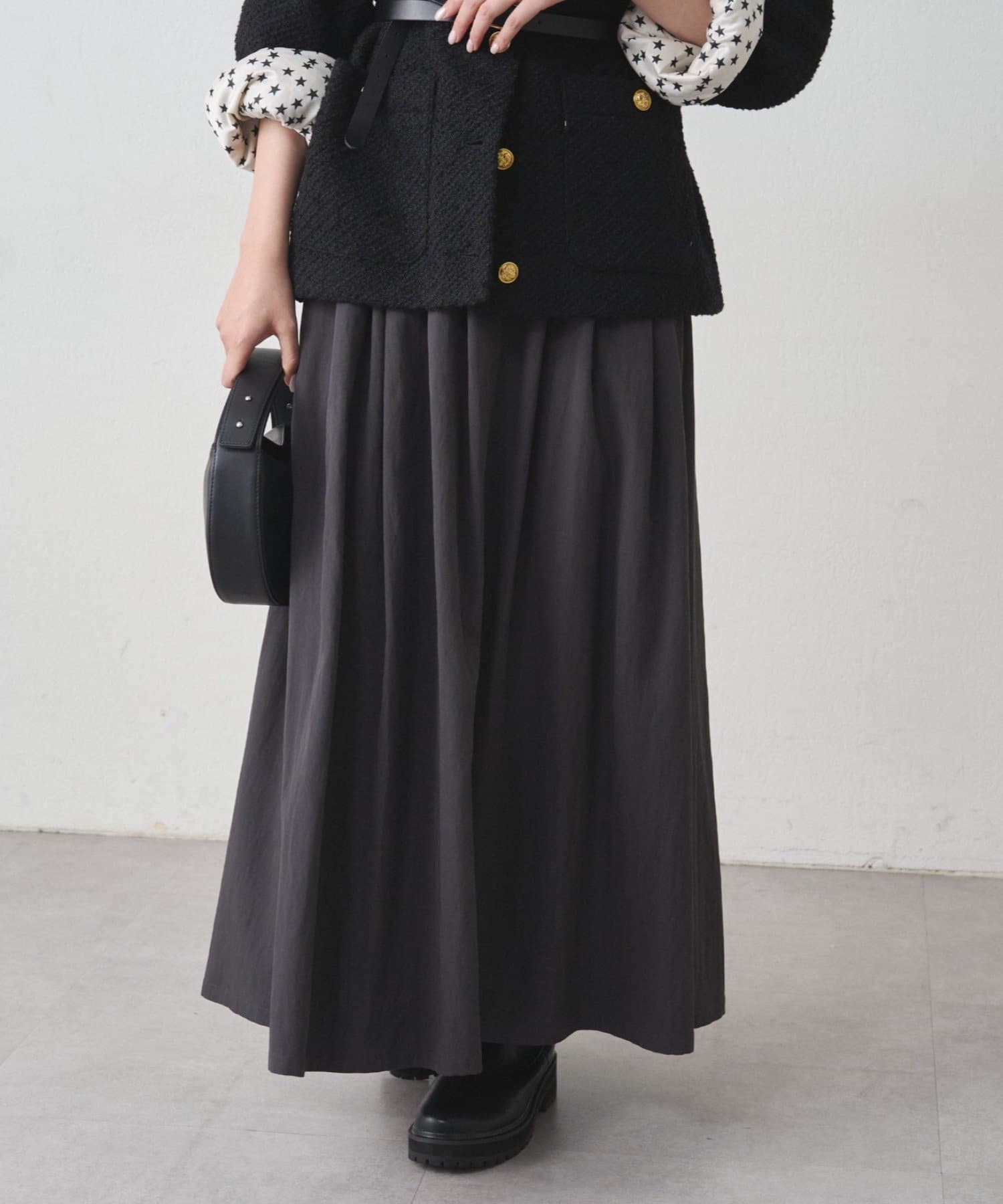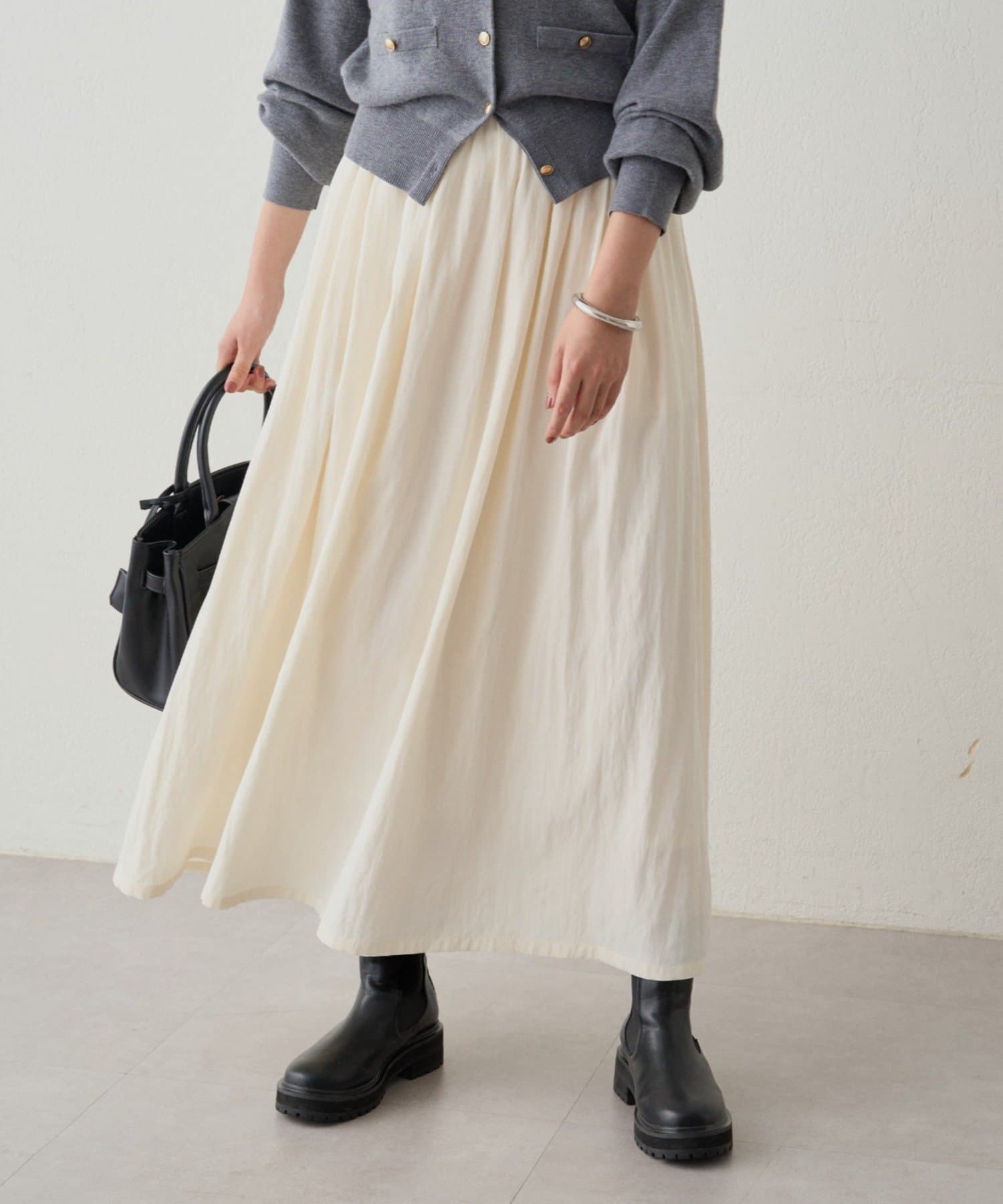 ふんわりと広がるシルエットが美しいロングスカート