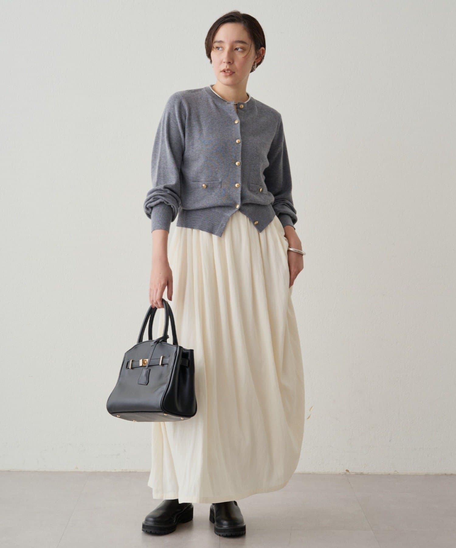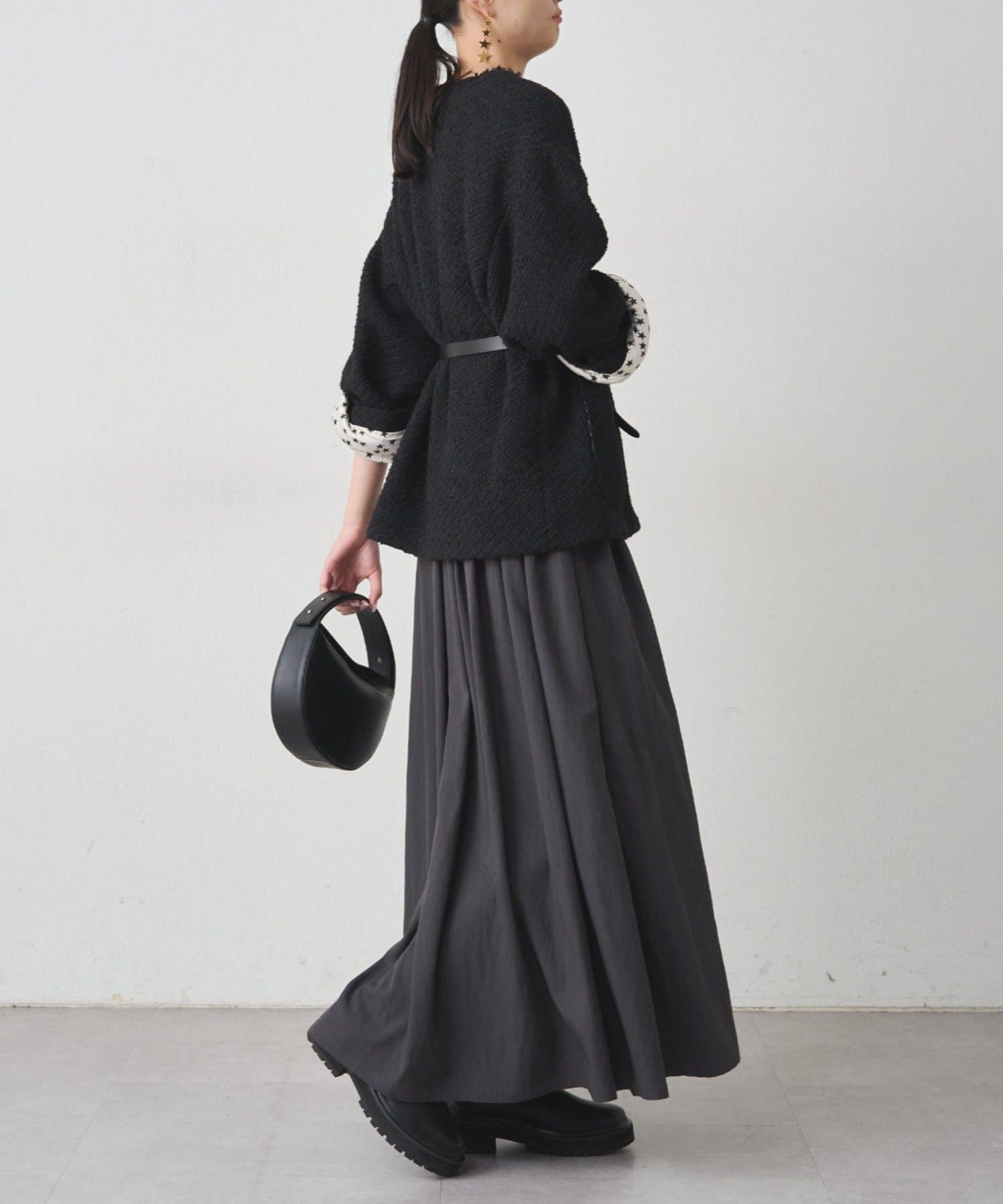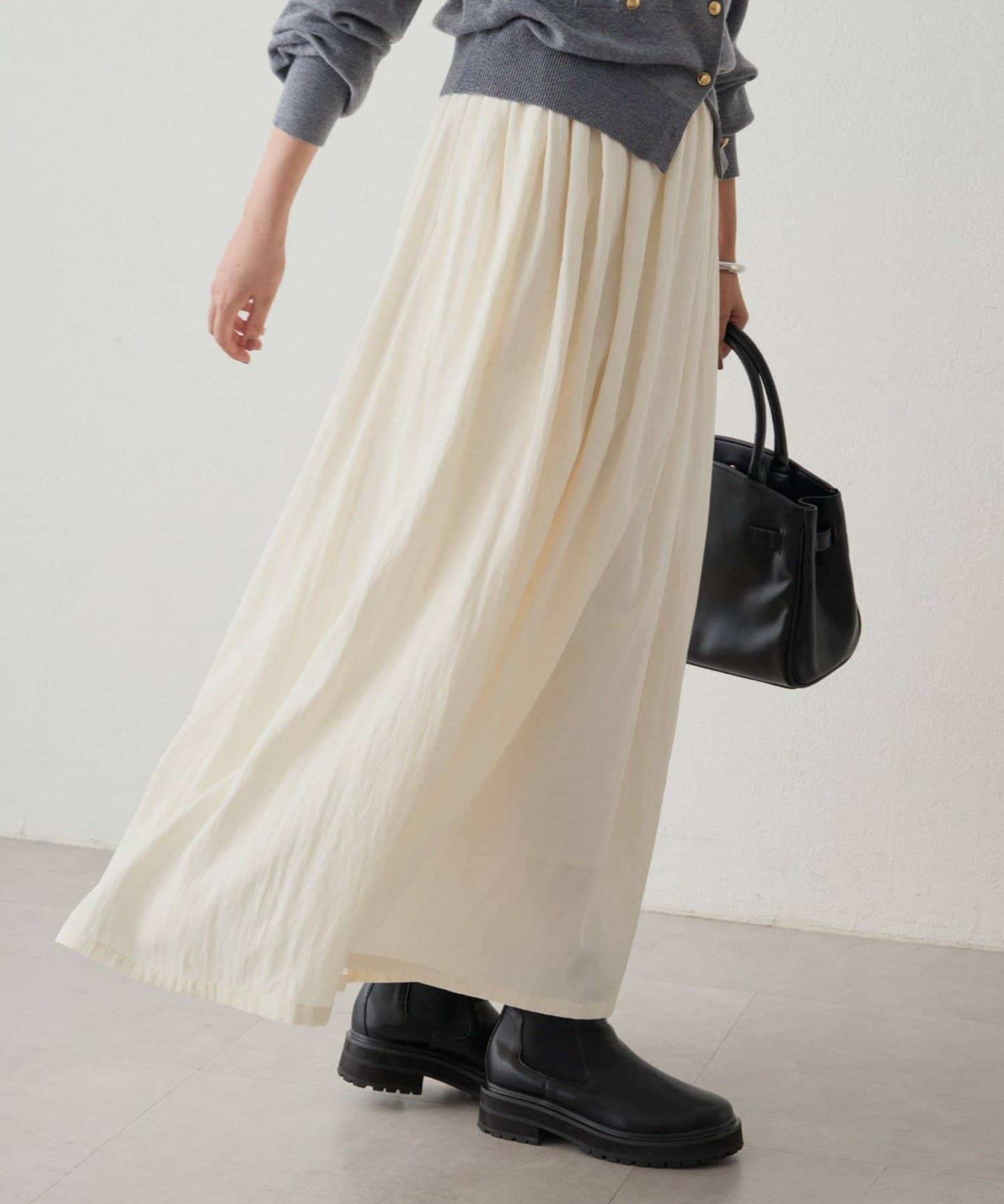 歩くたびに優雅に揺れるシルエットは、女性らしさを引き立てます。