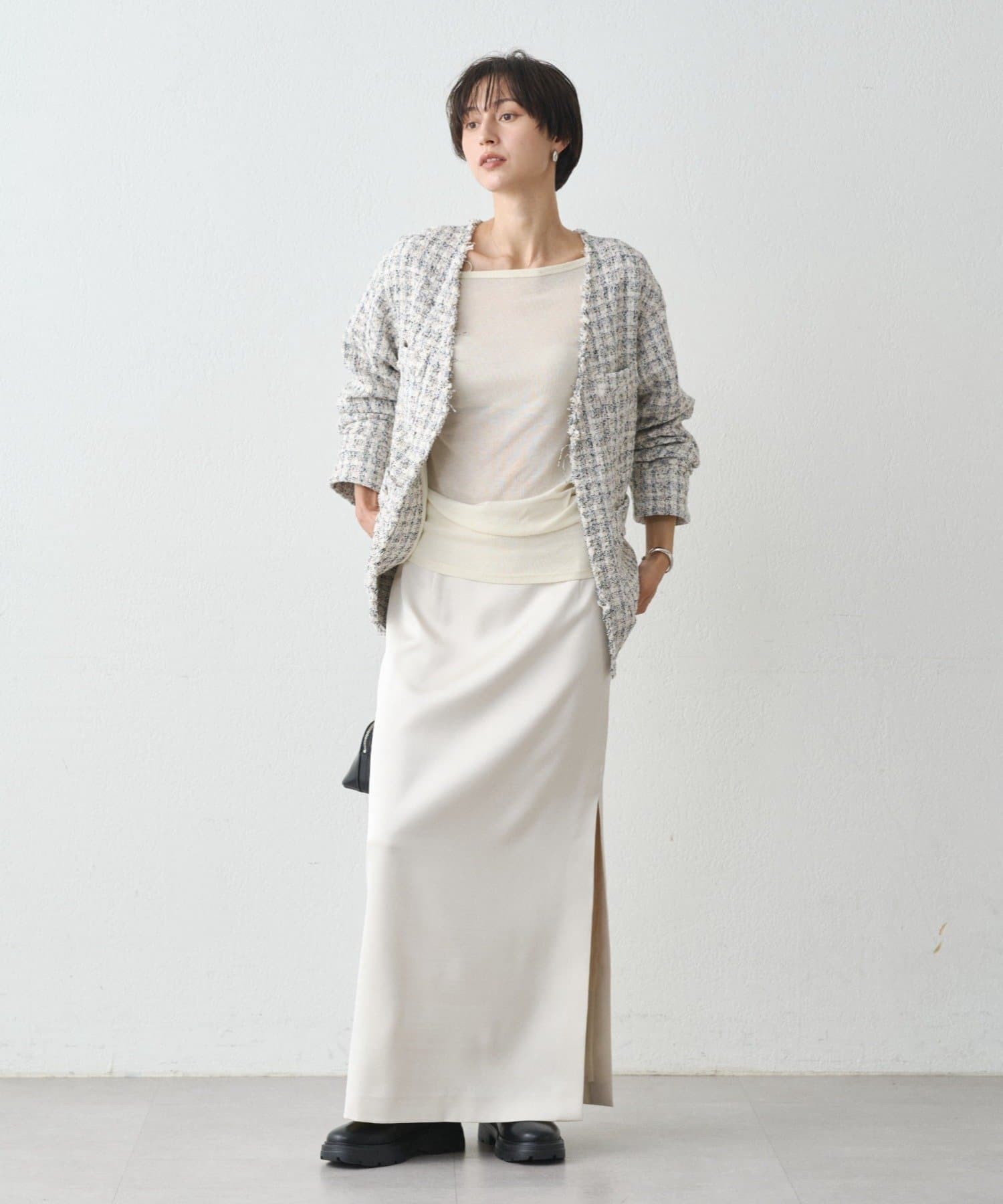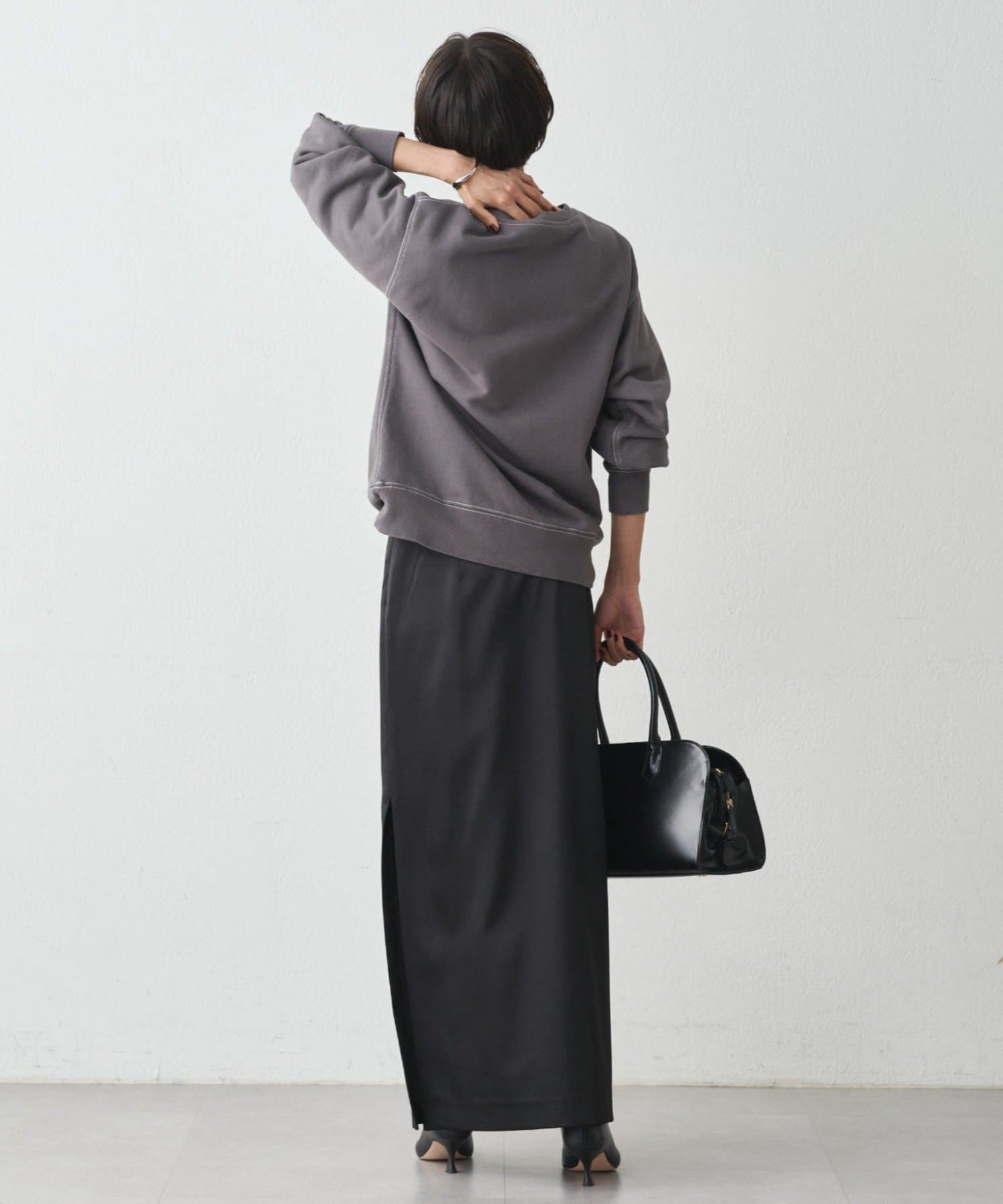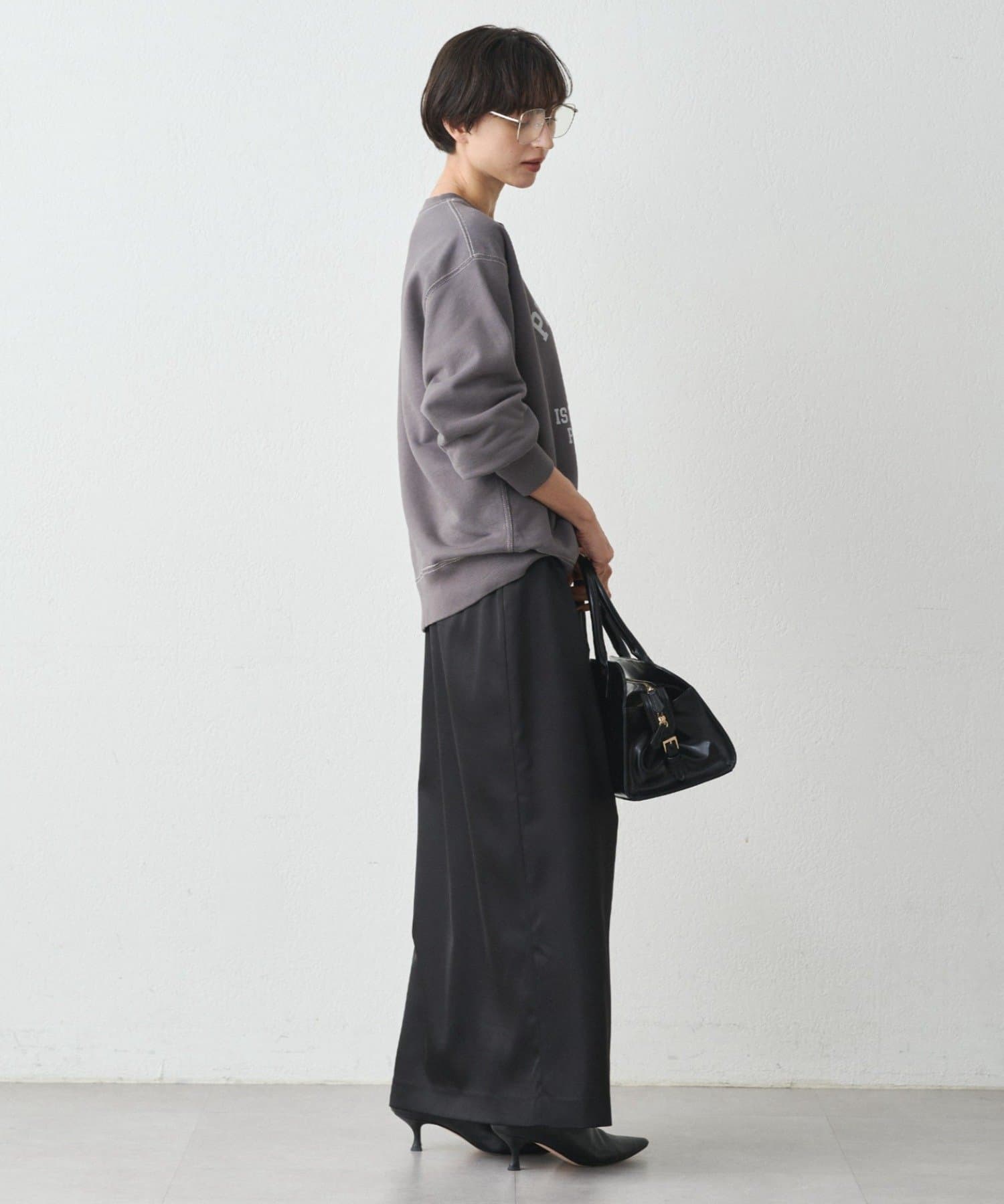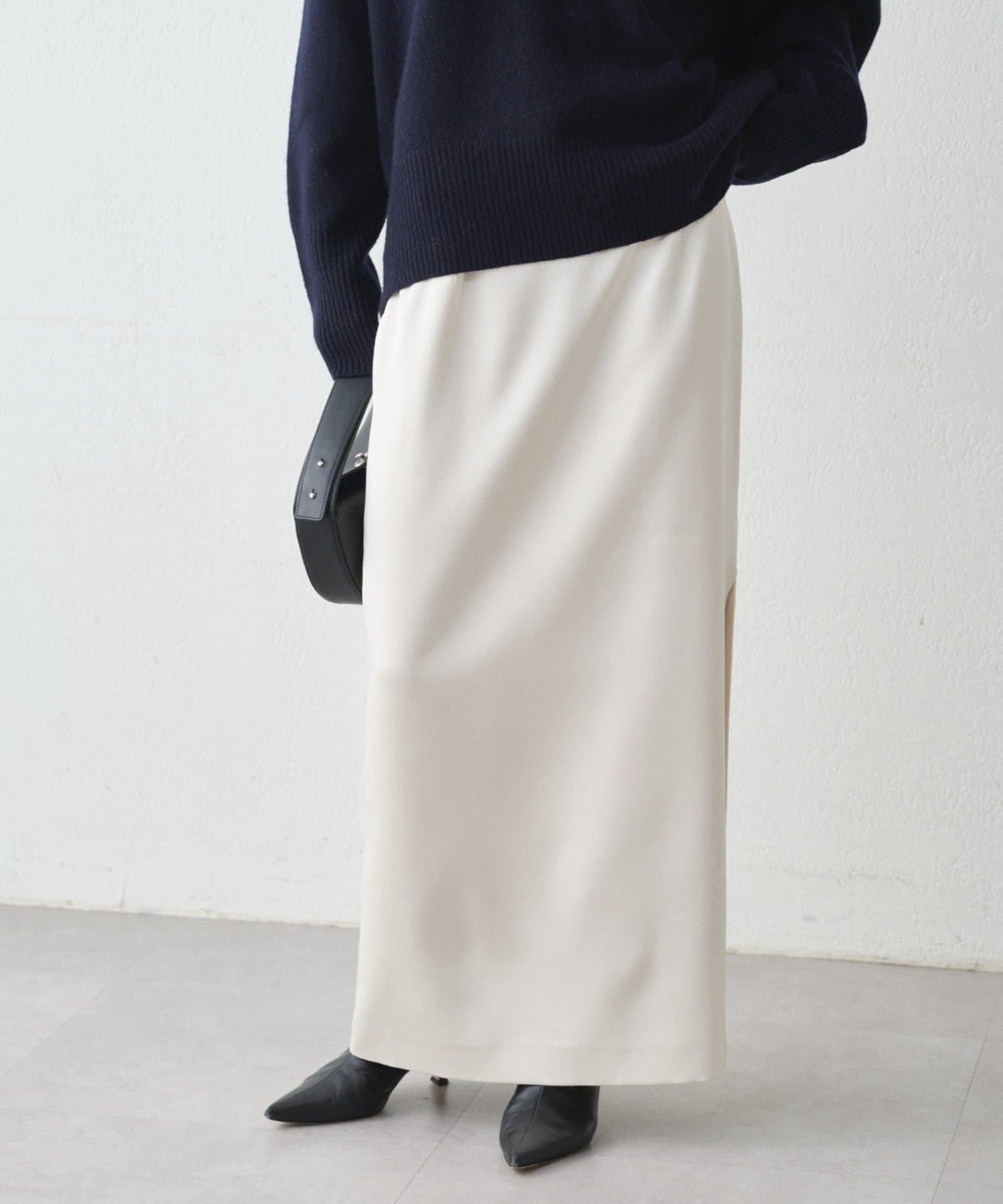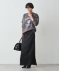 歩くたびに優雅な揺れ感を生み出す、スリットサテンタイトスカート