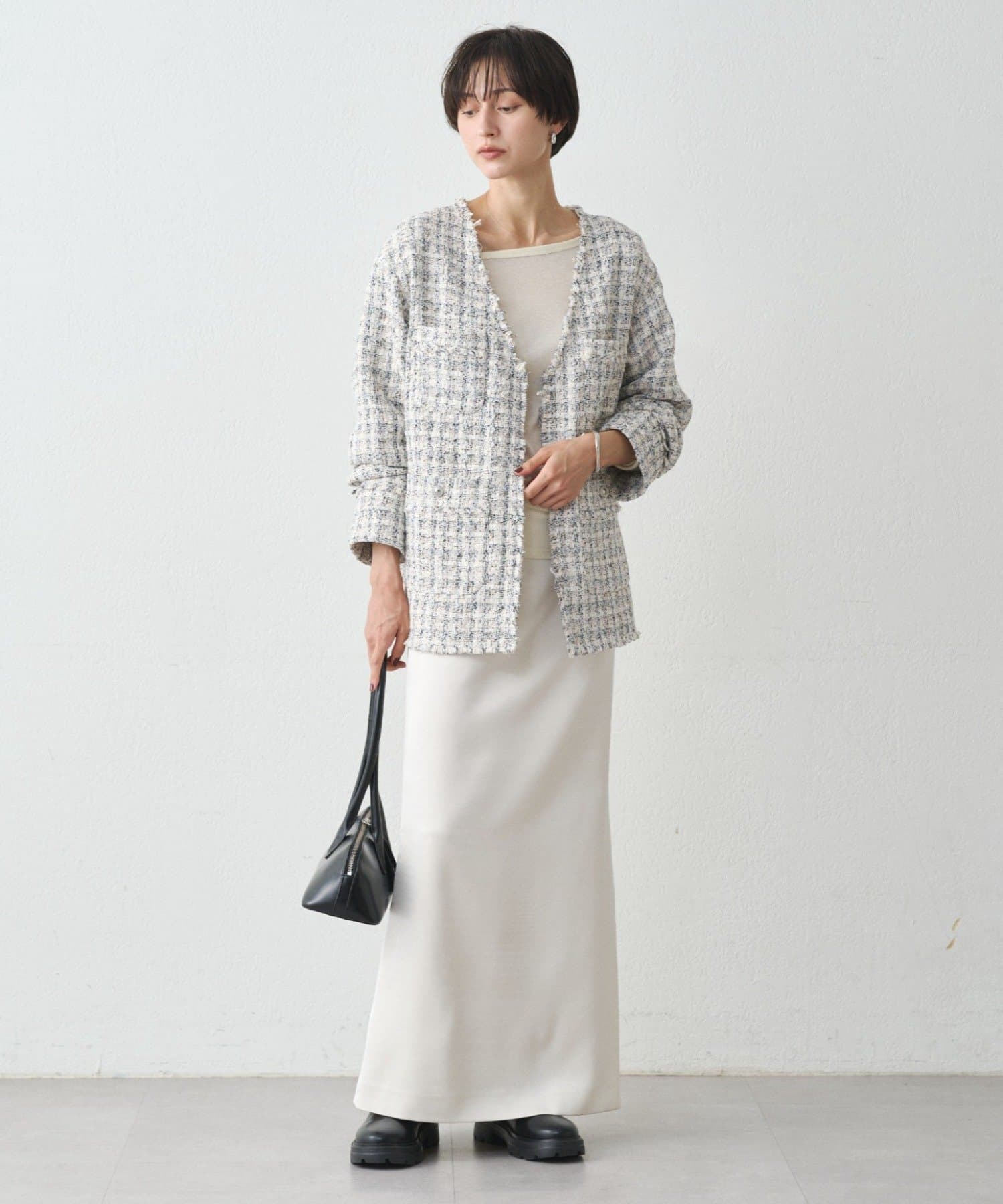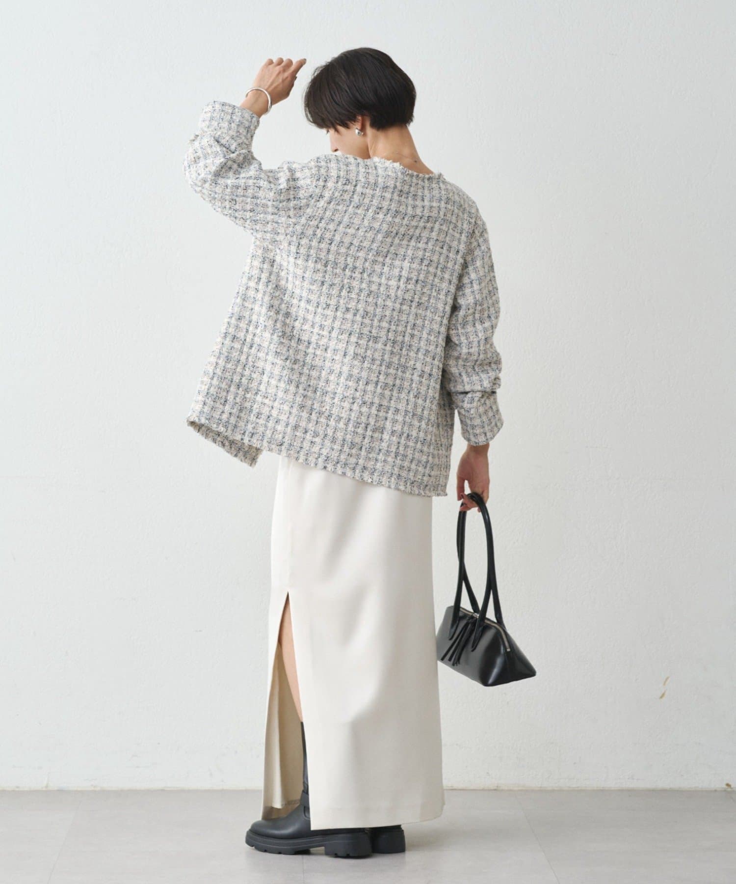 ブラウスと合わせてオフィススタイルにも合わせるアイテムによって、様々な表情を見せてくれる着回し力の高さも魅力です。