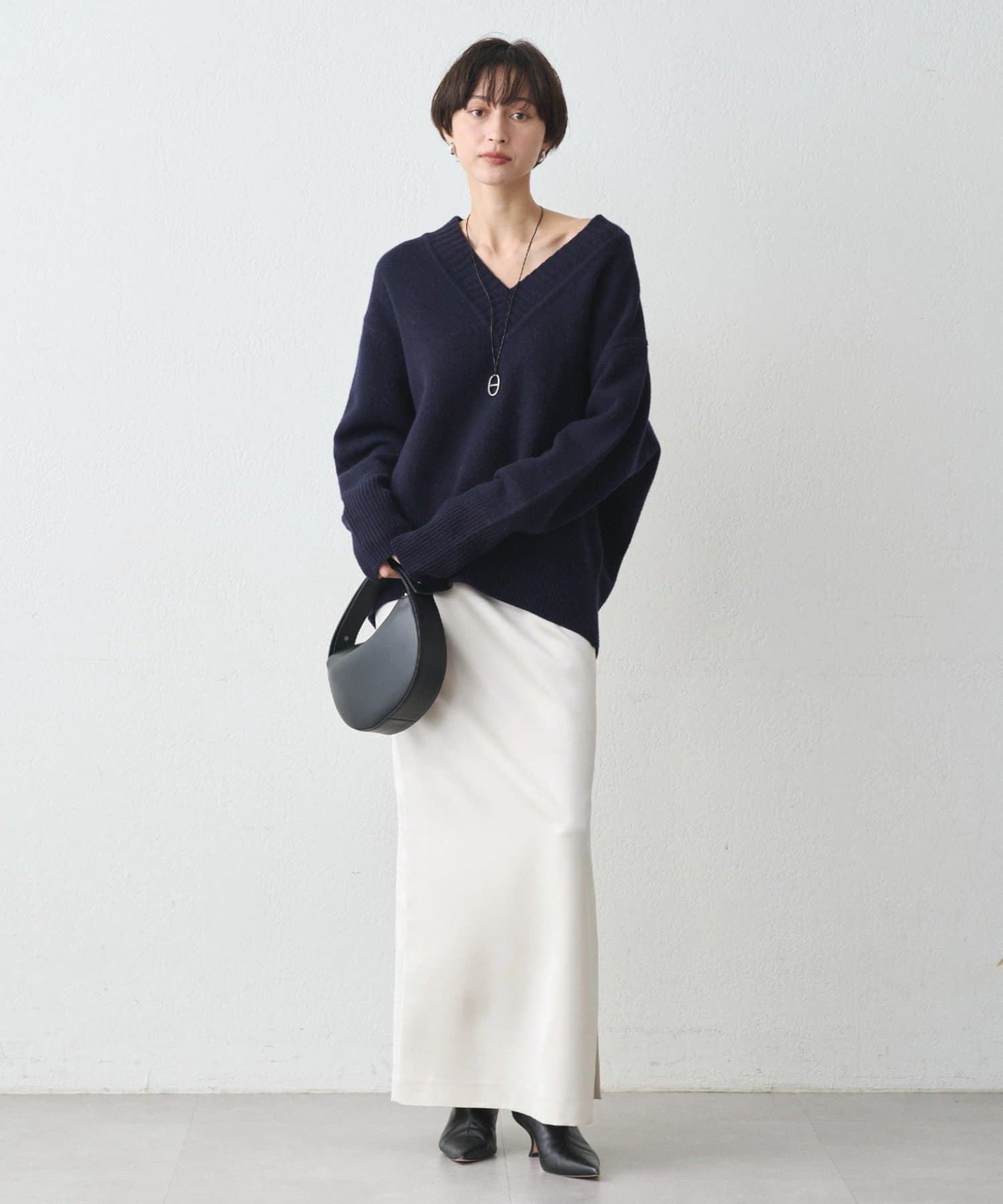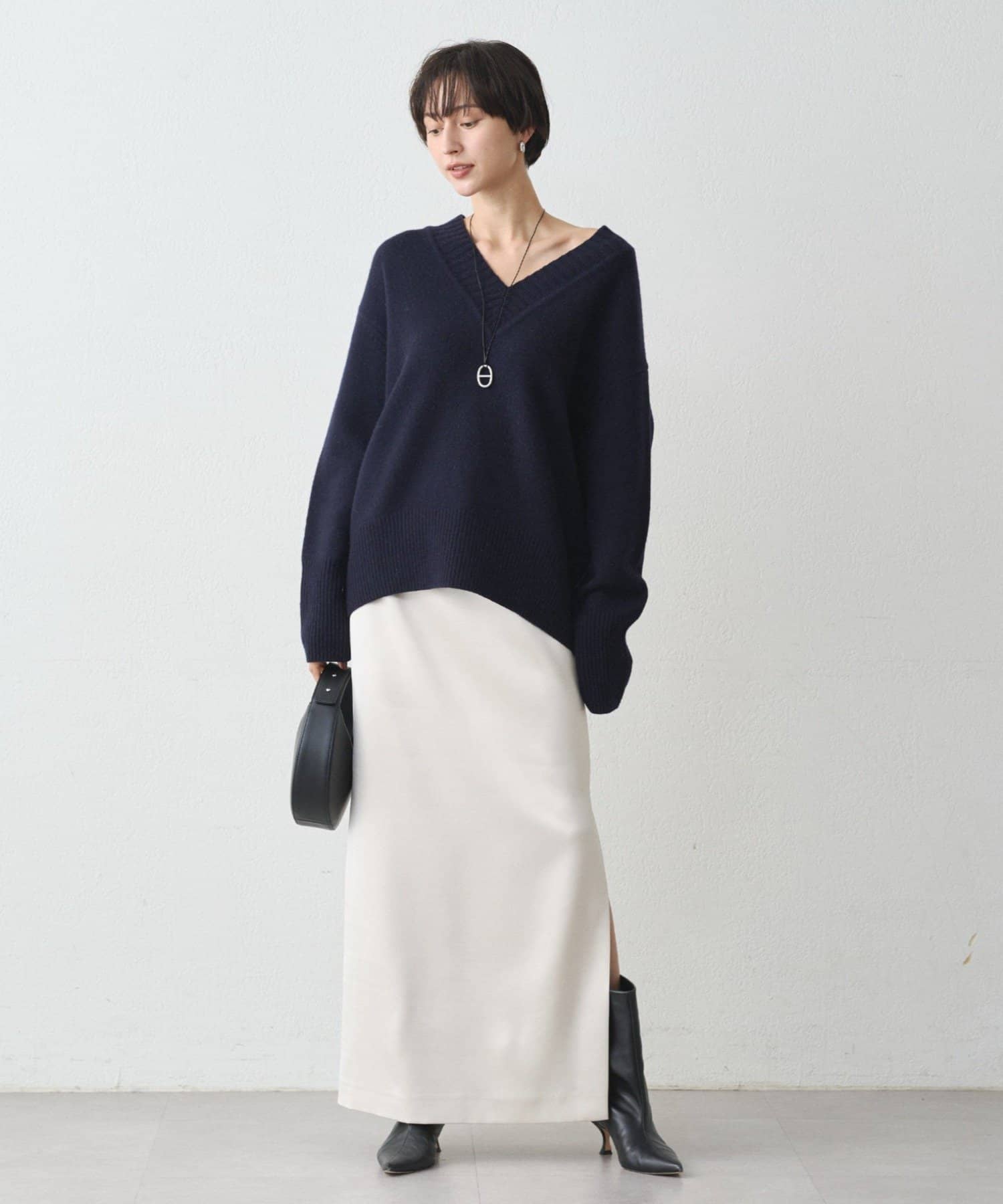 カジュアルなニットと合わせて、大人のこなれ感を演出したり、