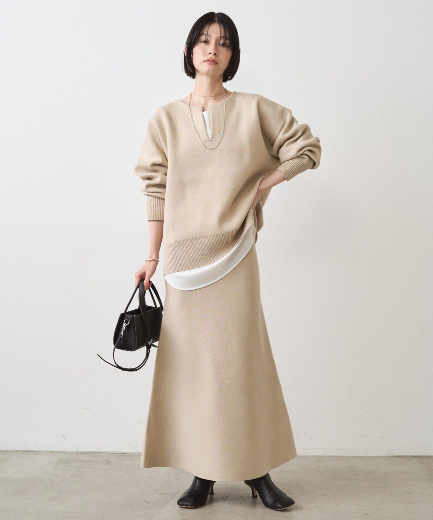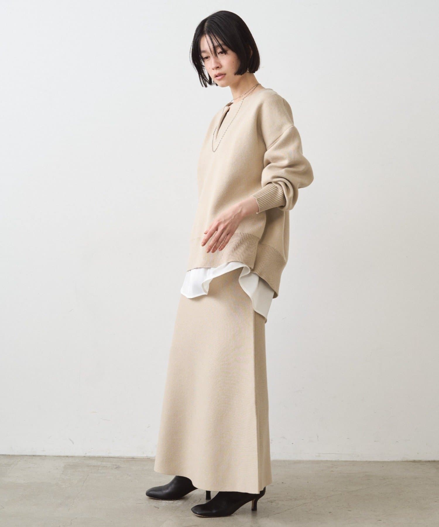 【新色ライトベージュ登場!】@_shirabe.s_コラボ / スウェットライクマーメイドニットスカート