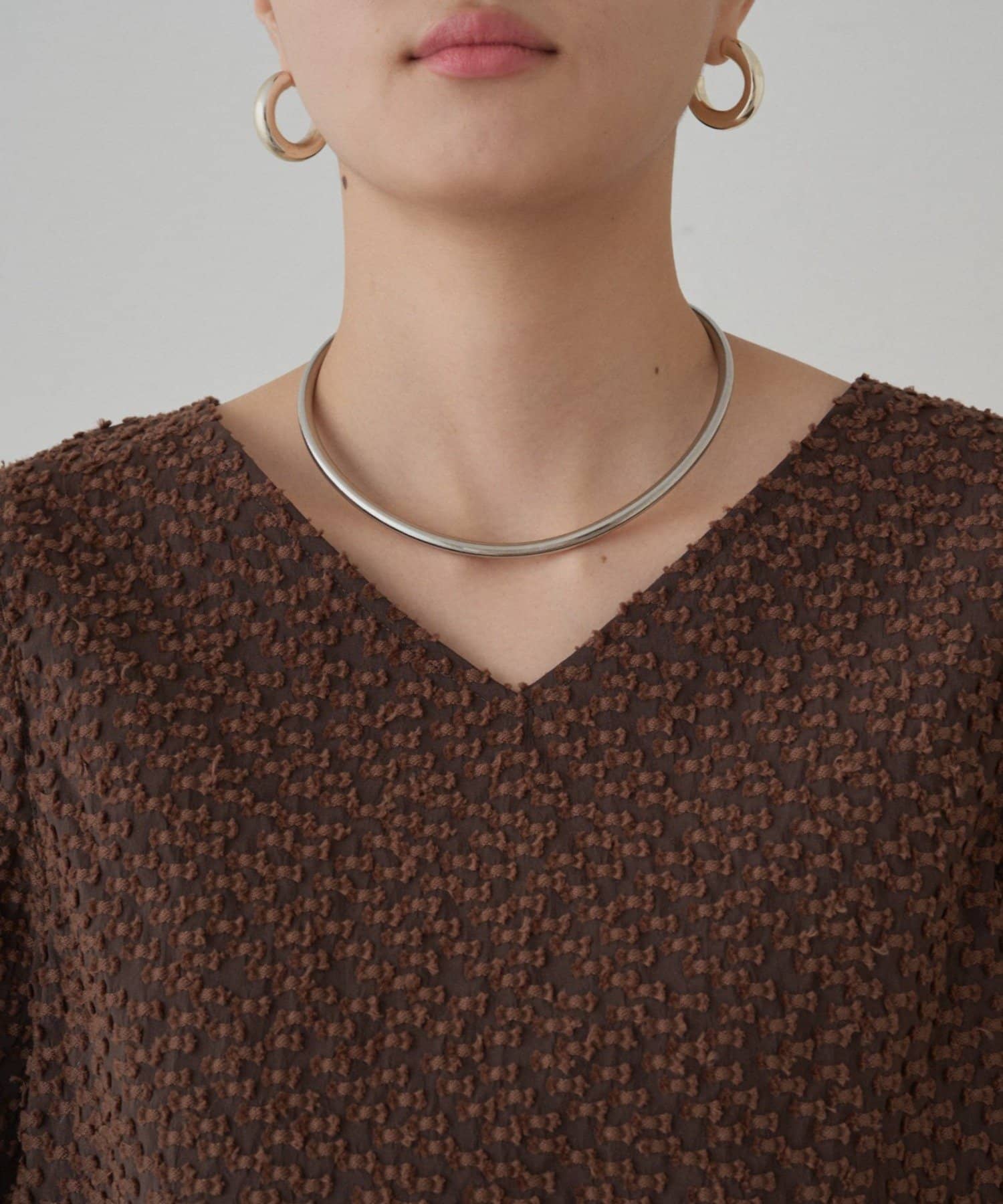 デコルテを美しく見せるVネックラインが、抜け感をプラスしてくれます。