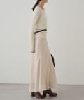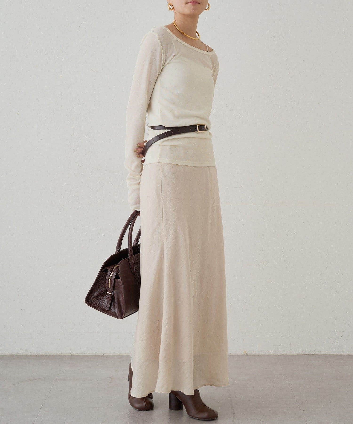 きれいめスカートと合わせてオフィスシーンにも活躍する、上品なスタイリングもおすすめです。