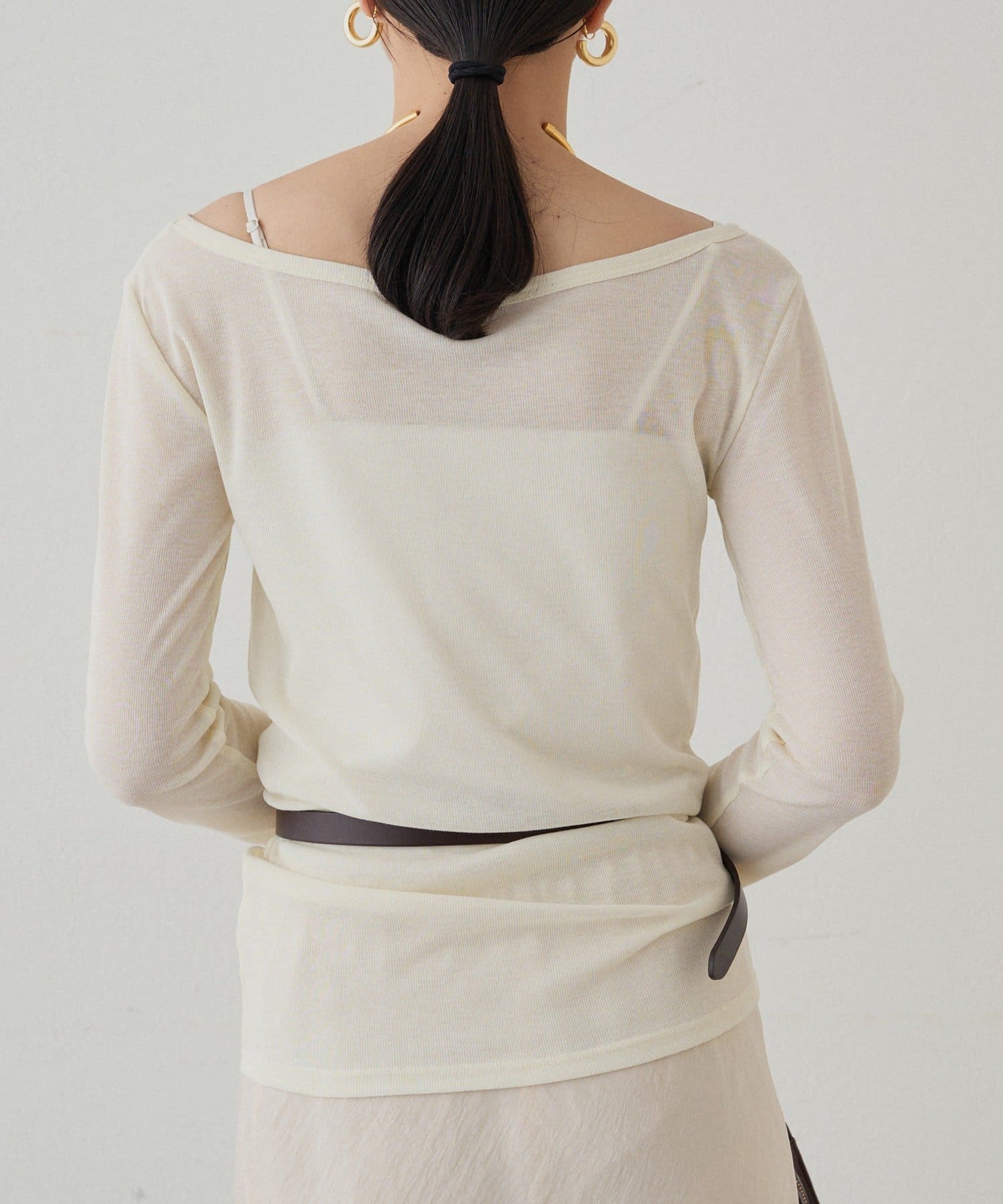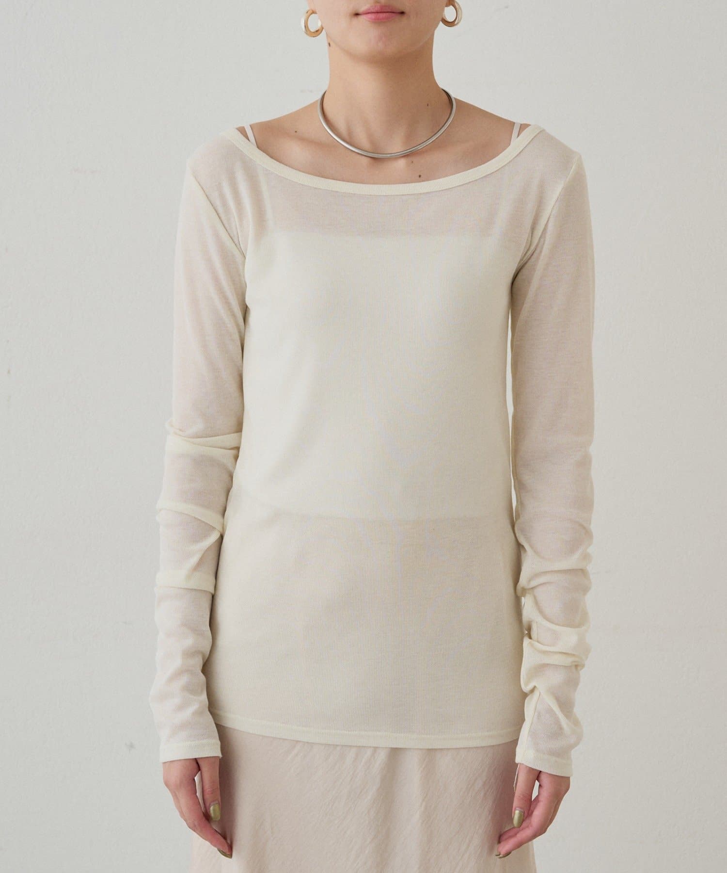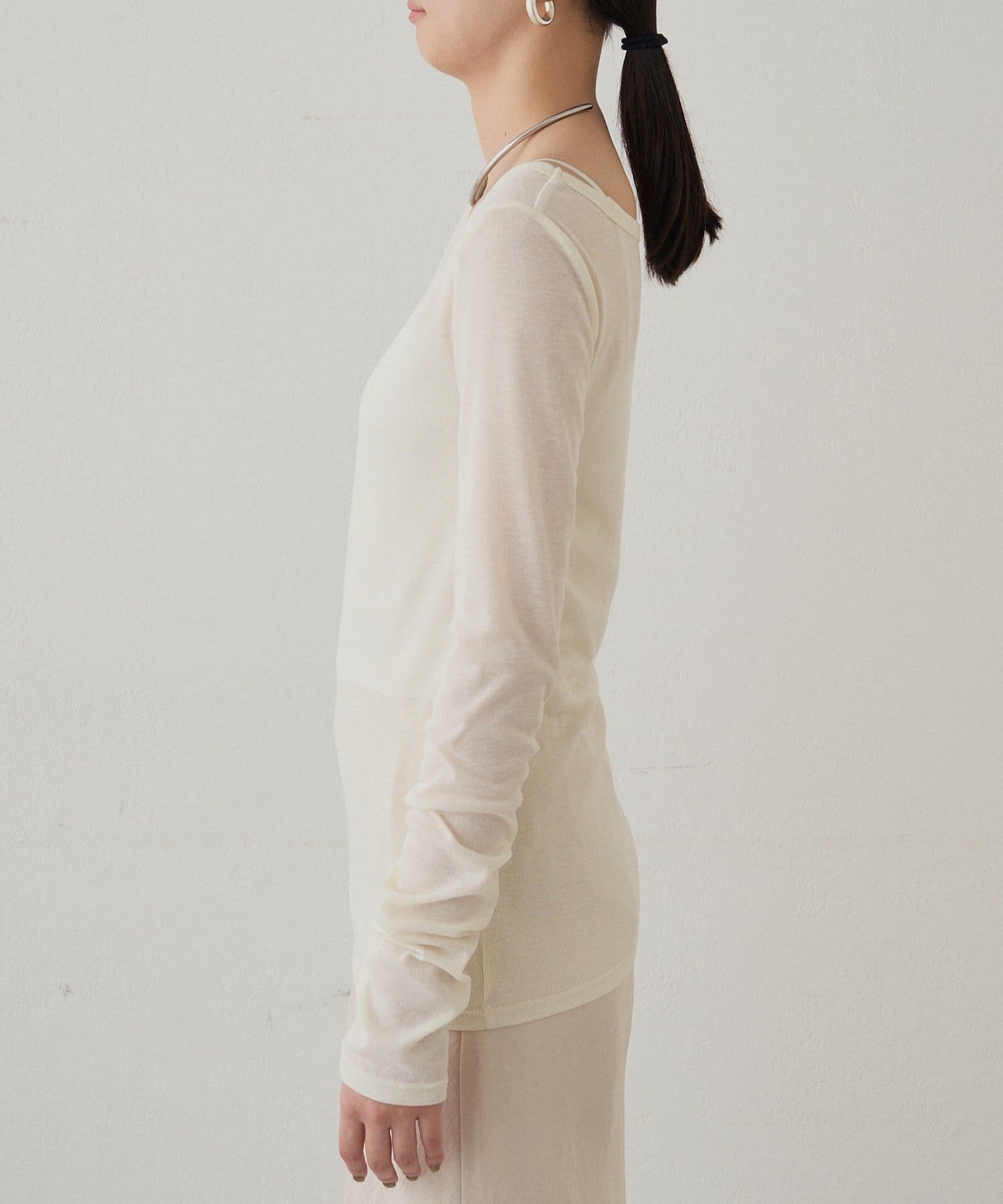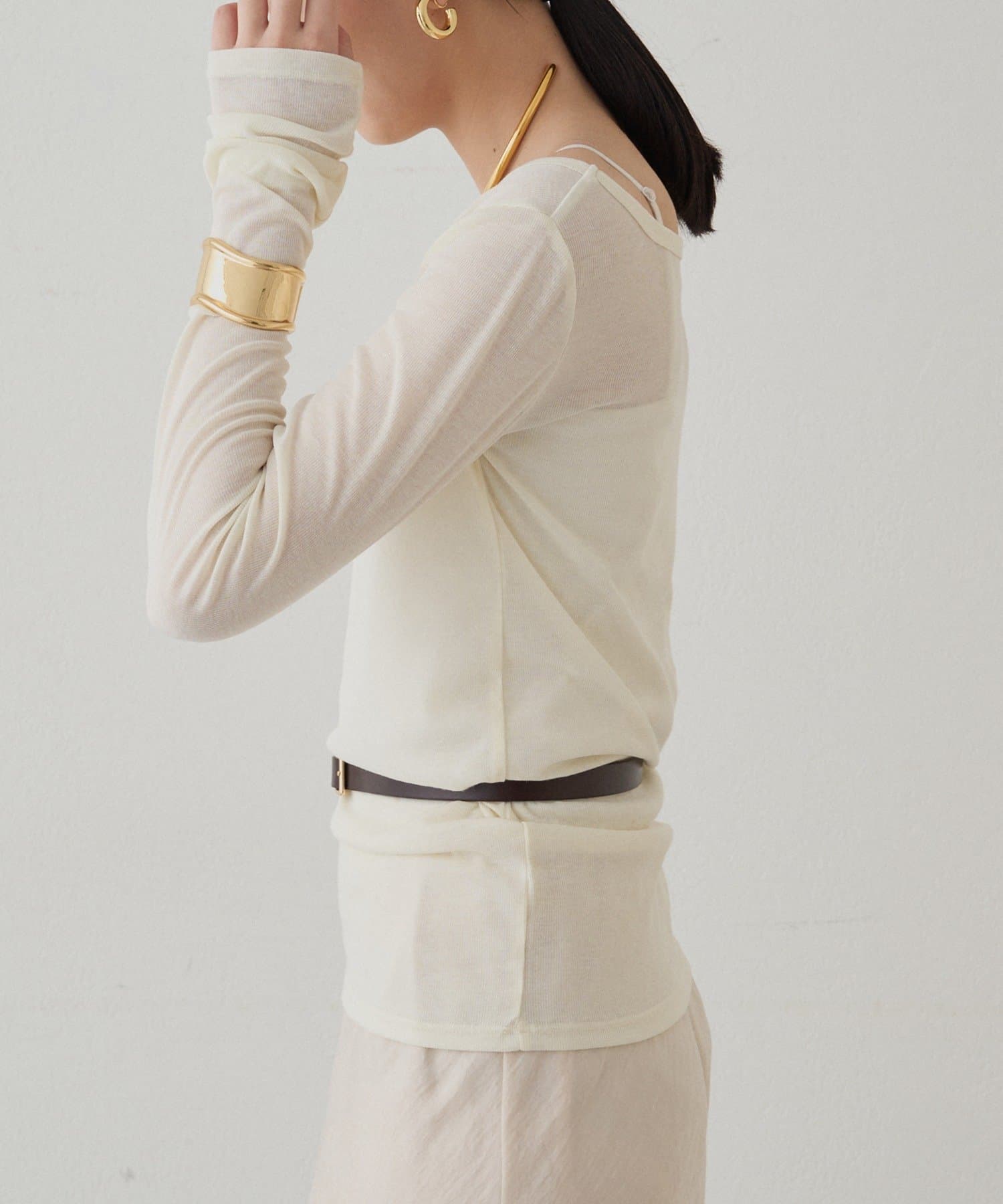 繊細な透け感が魅力。柔らかな長袖トップス。