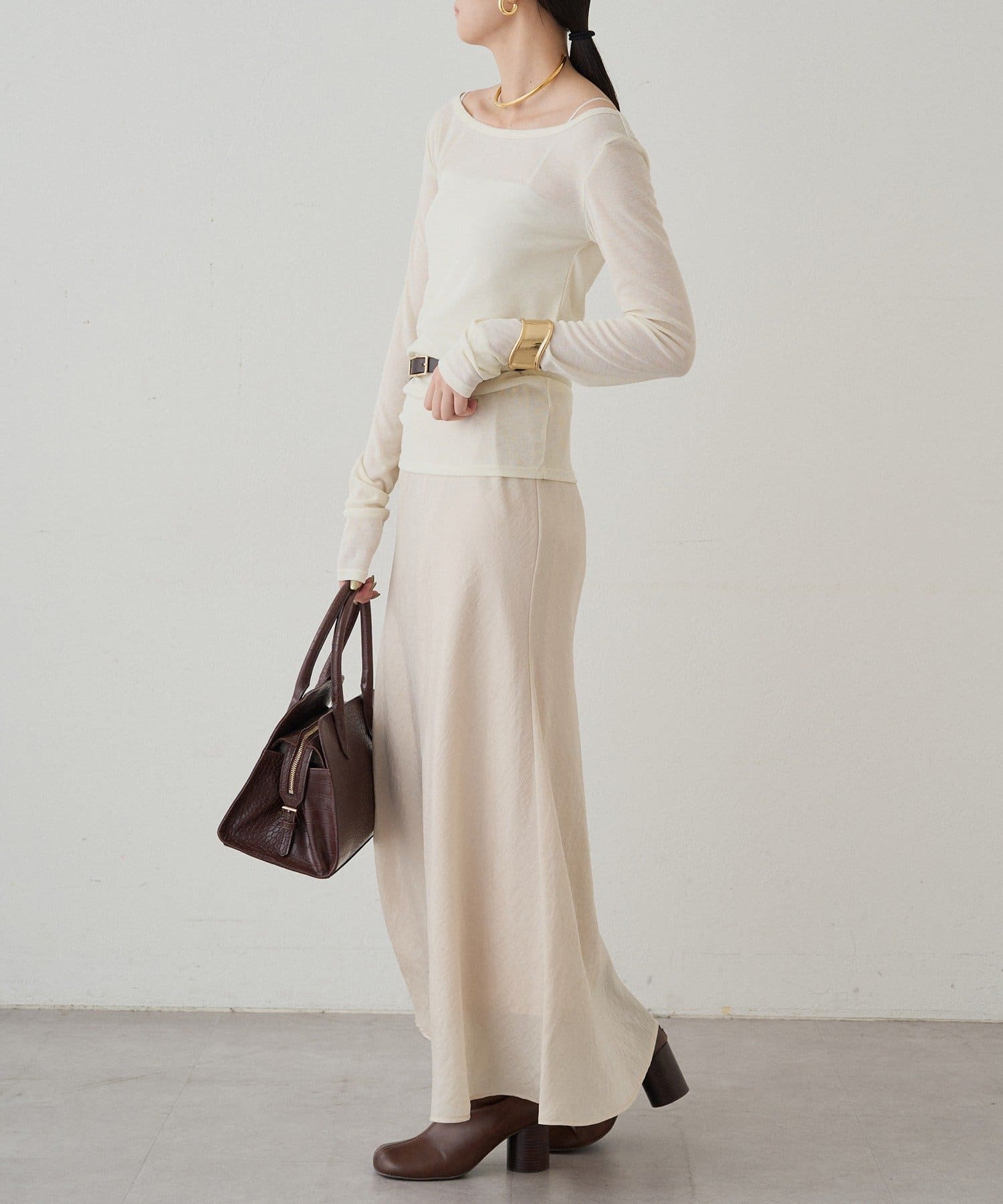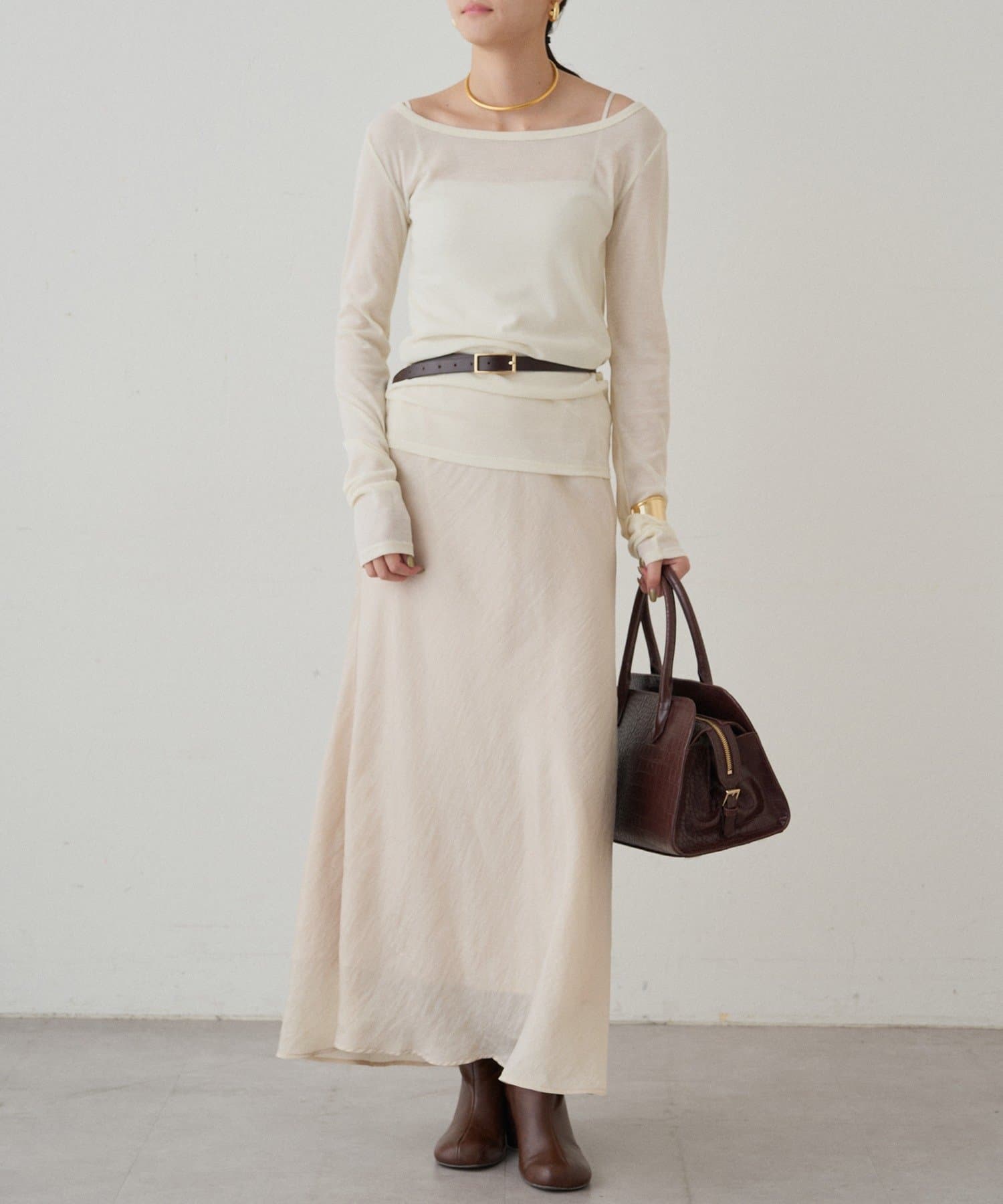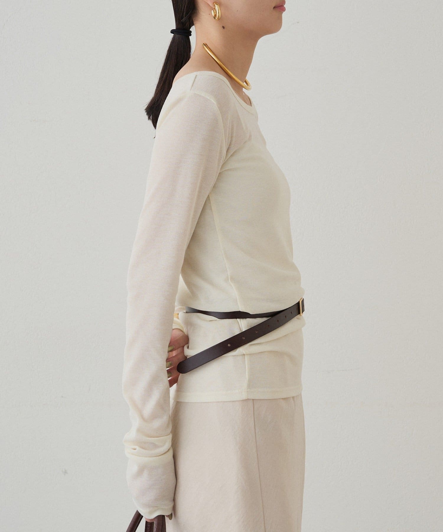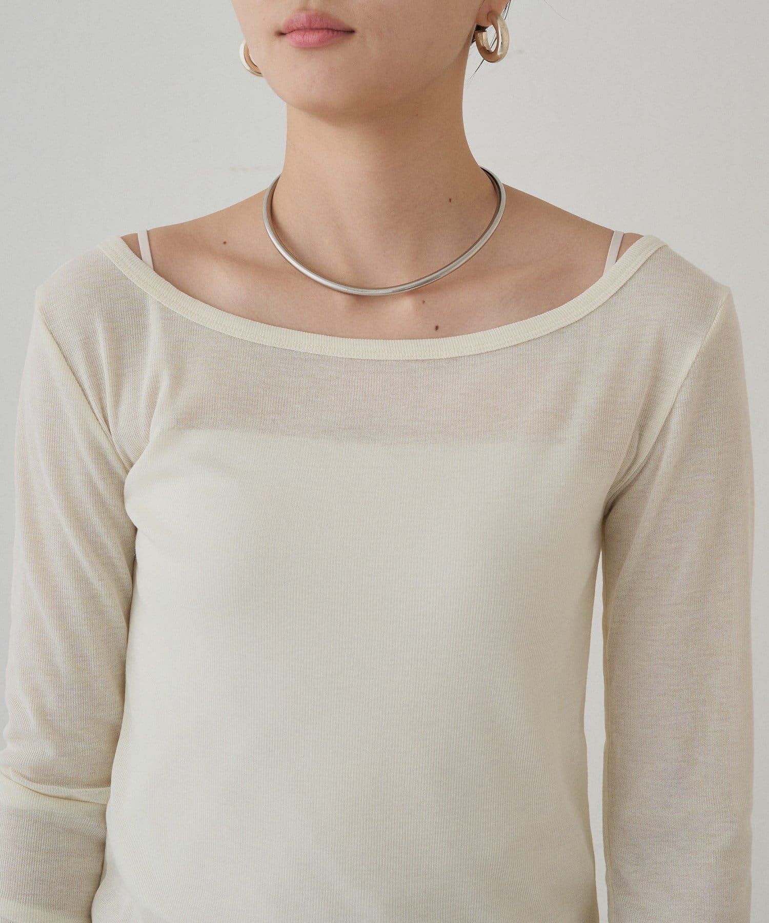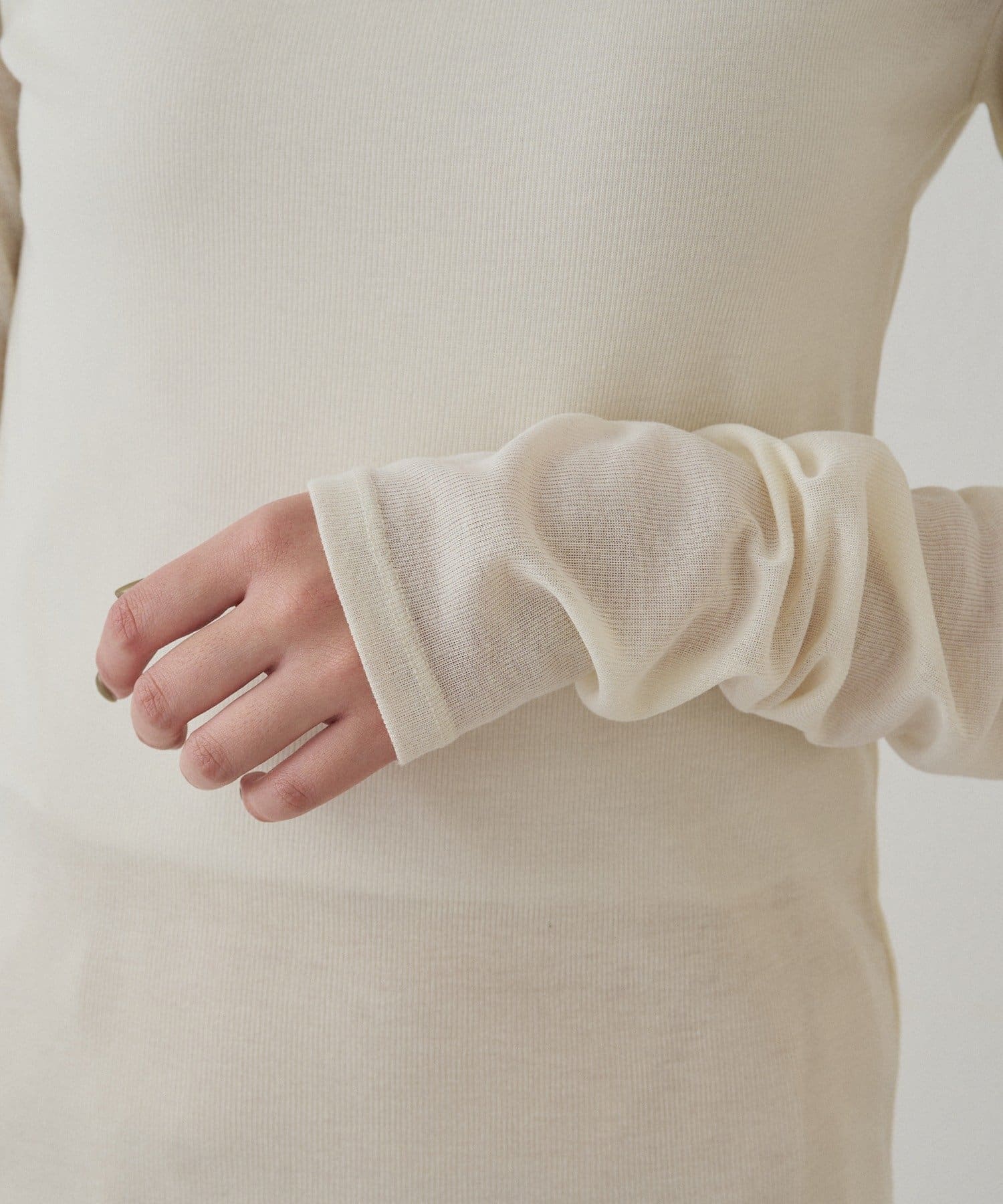繊細な透け感が魅力。柔らかな長袖トップス。
