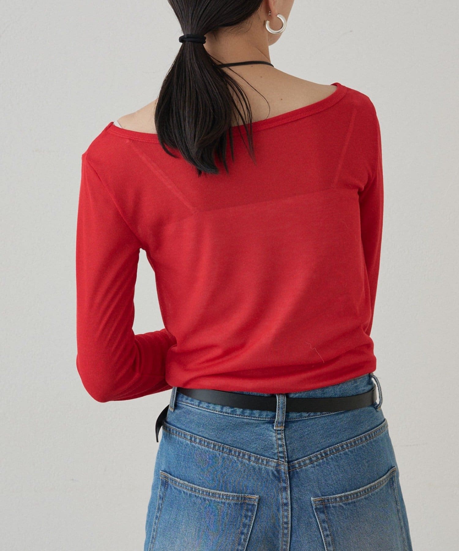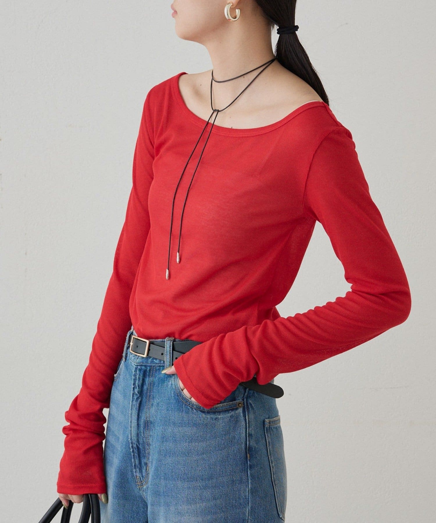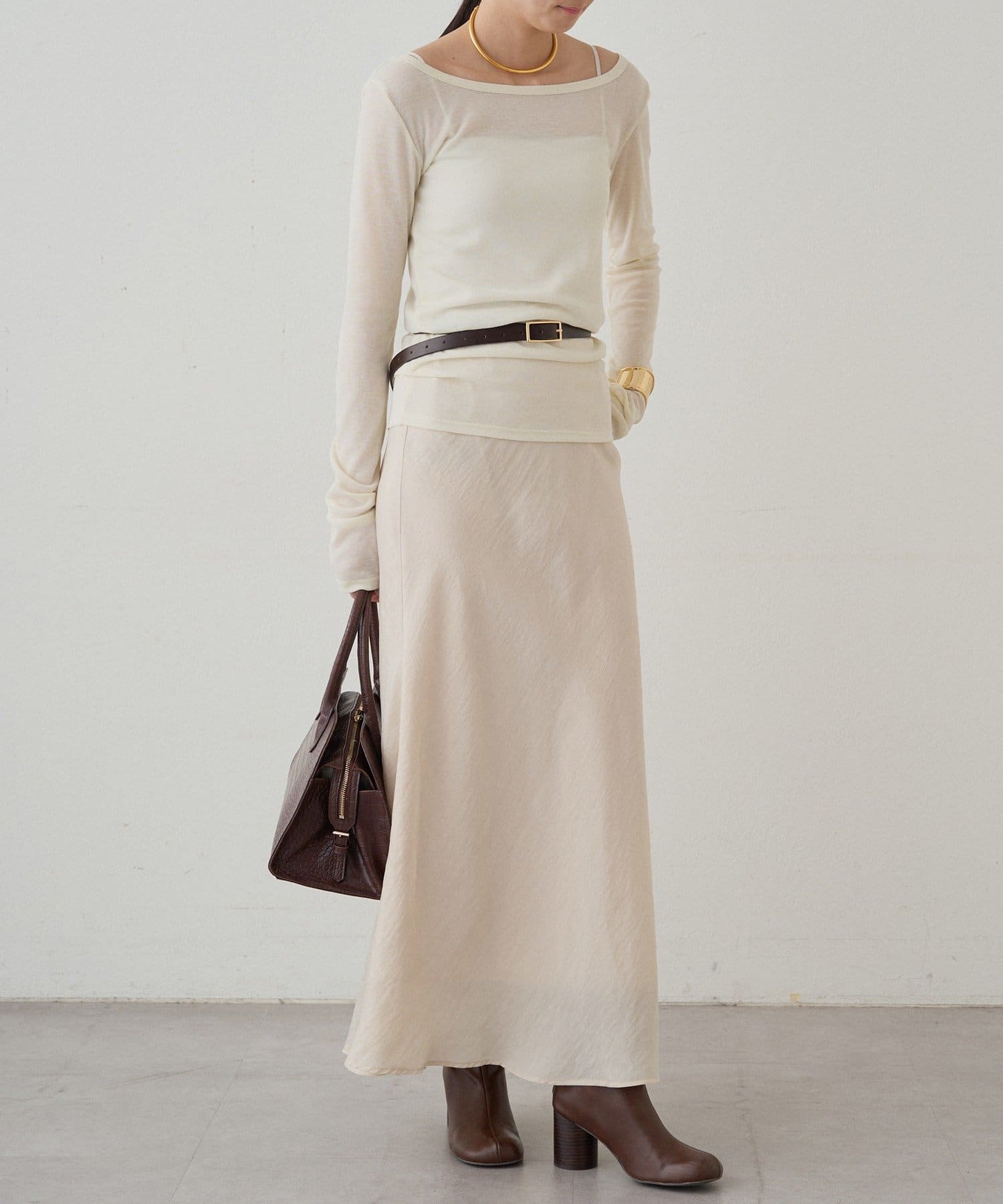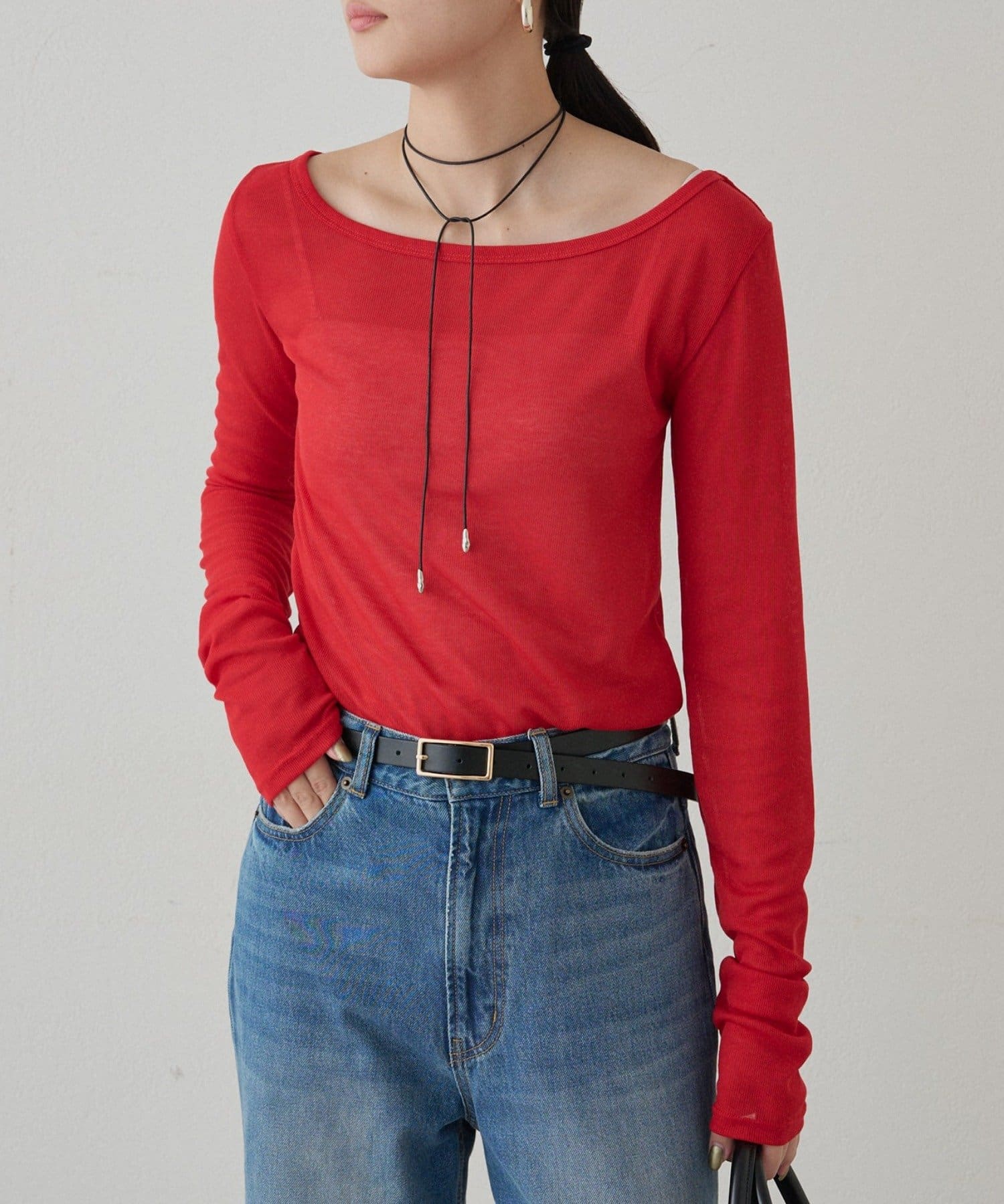 繊細な透け感が魅力。柔らかな長袖トップス。
