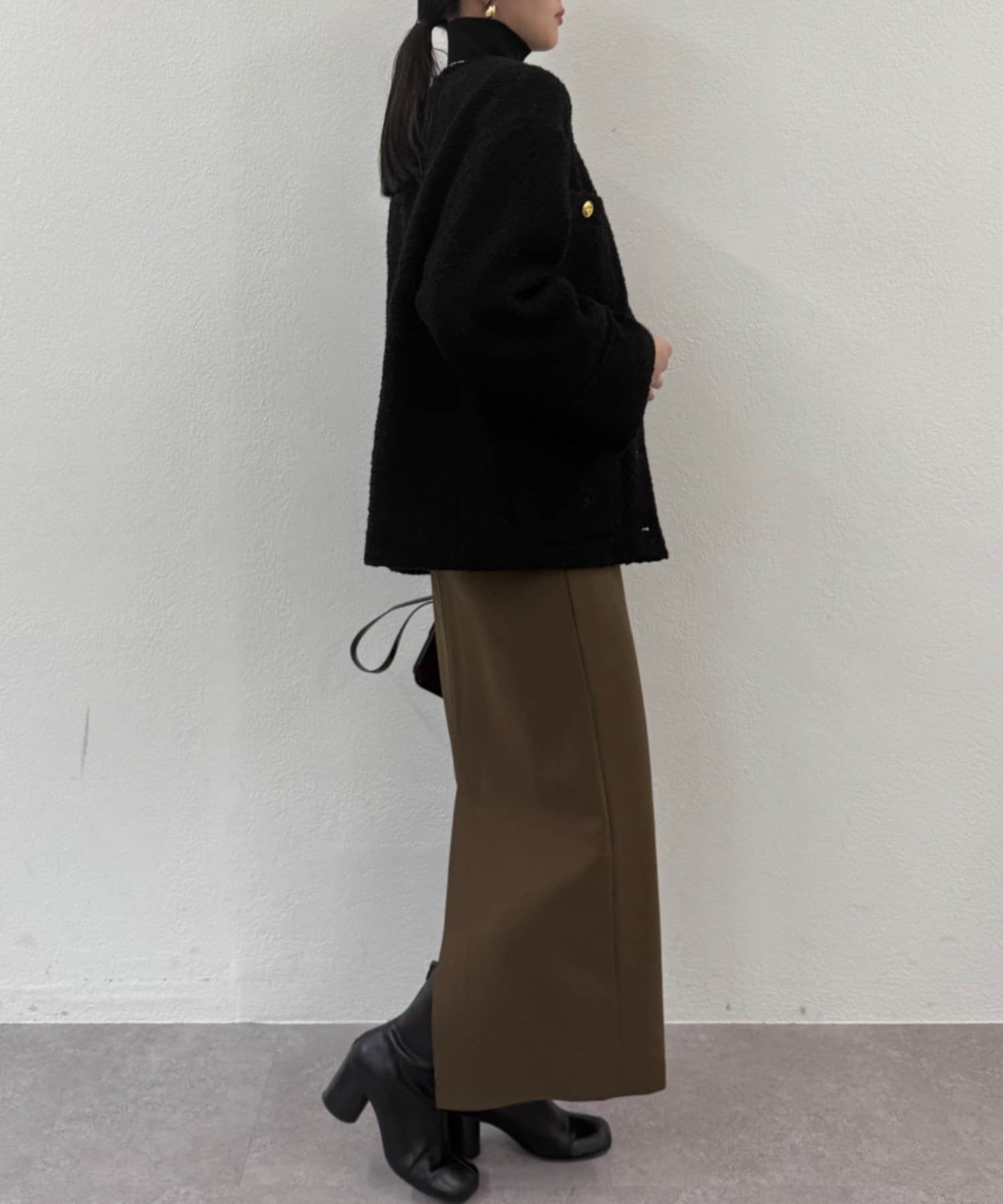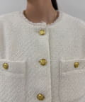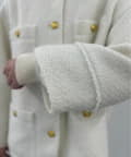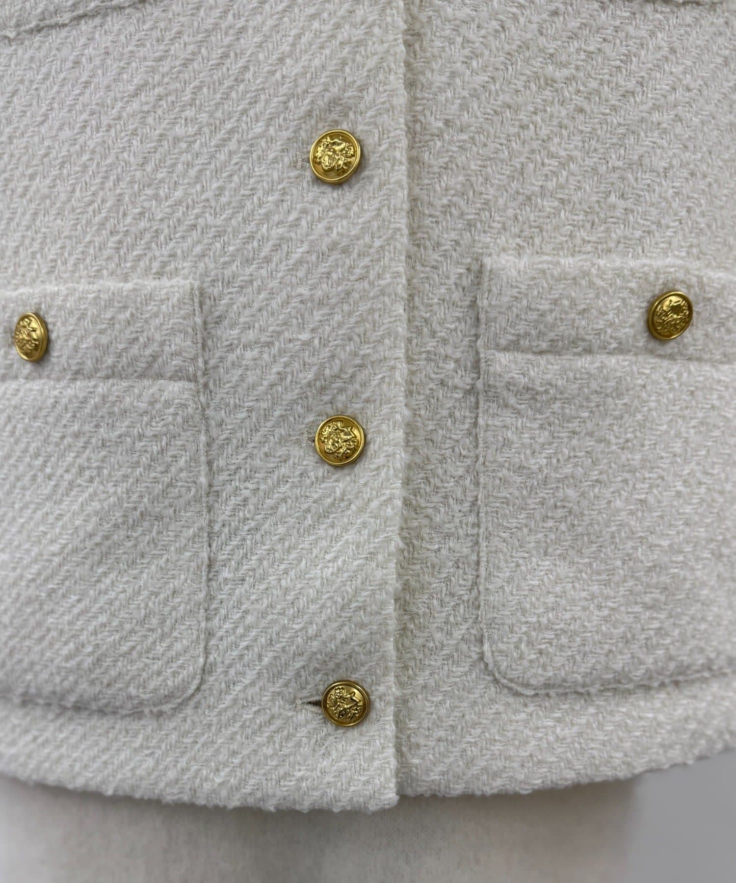 表面感のあるツイード生地に、上品な輝きを放つゴールドボタンをあしらい、存在感と高級感を演出しました。