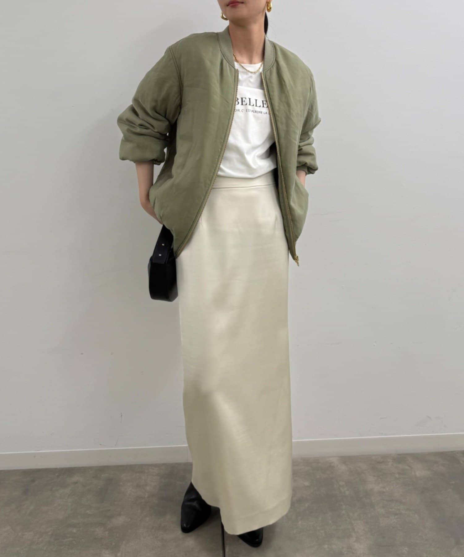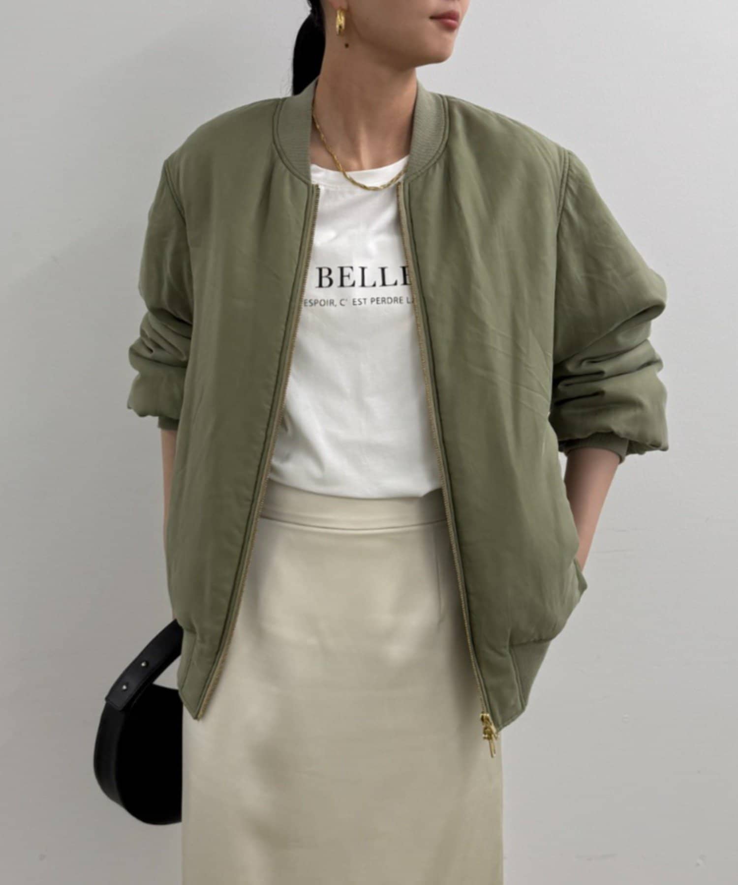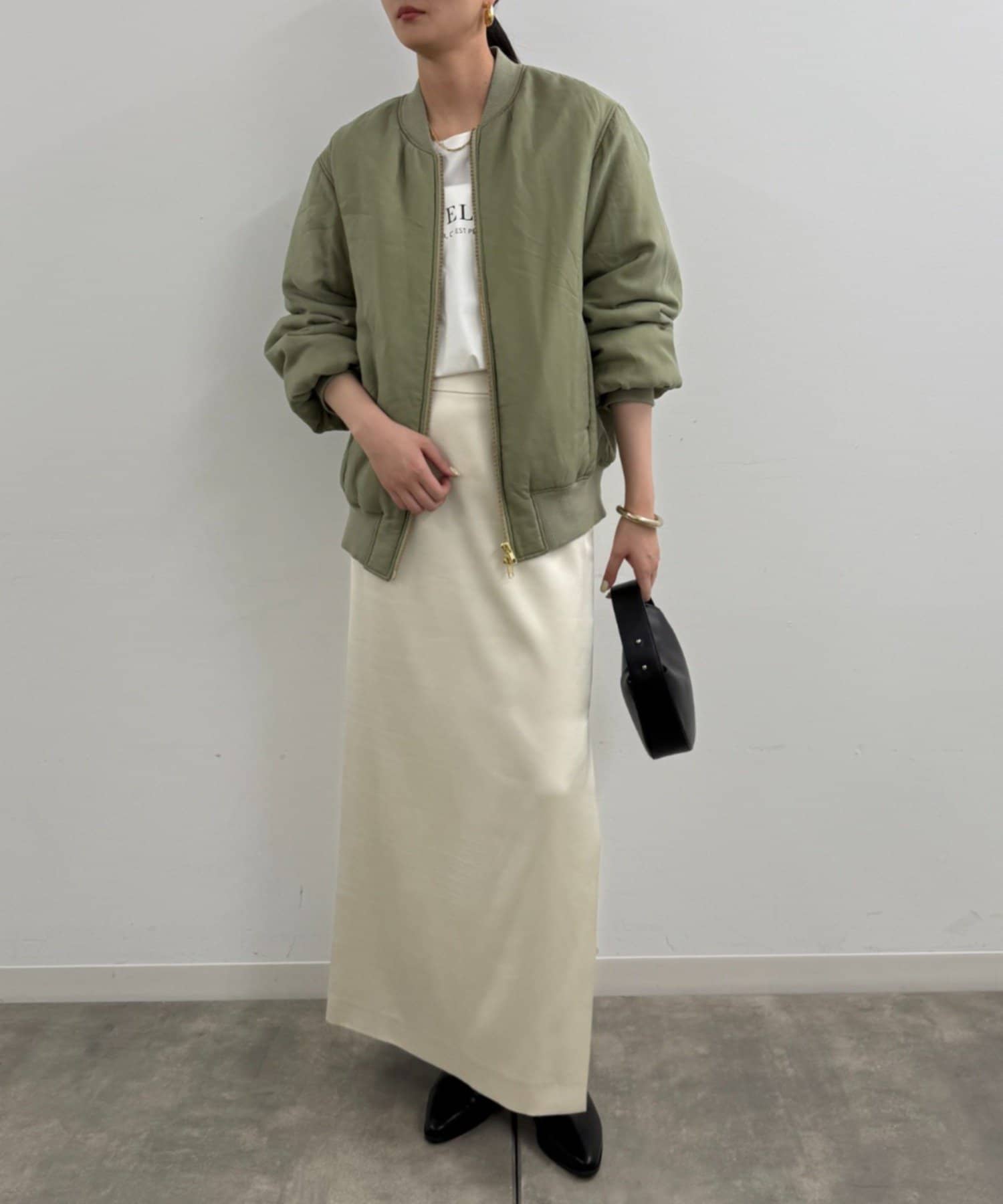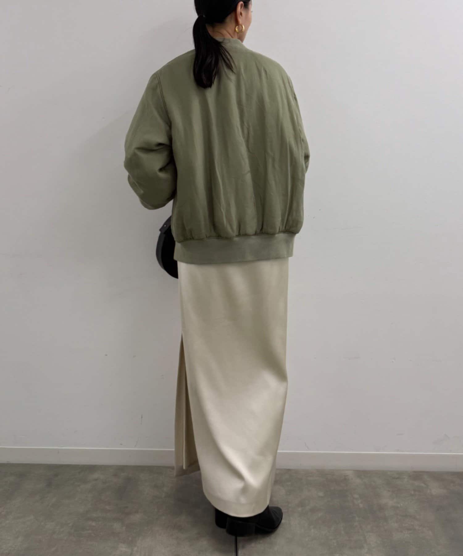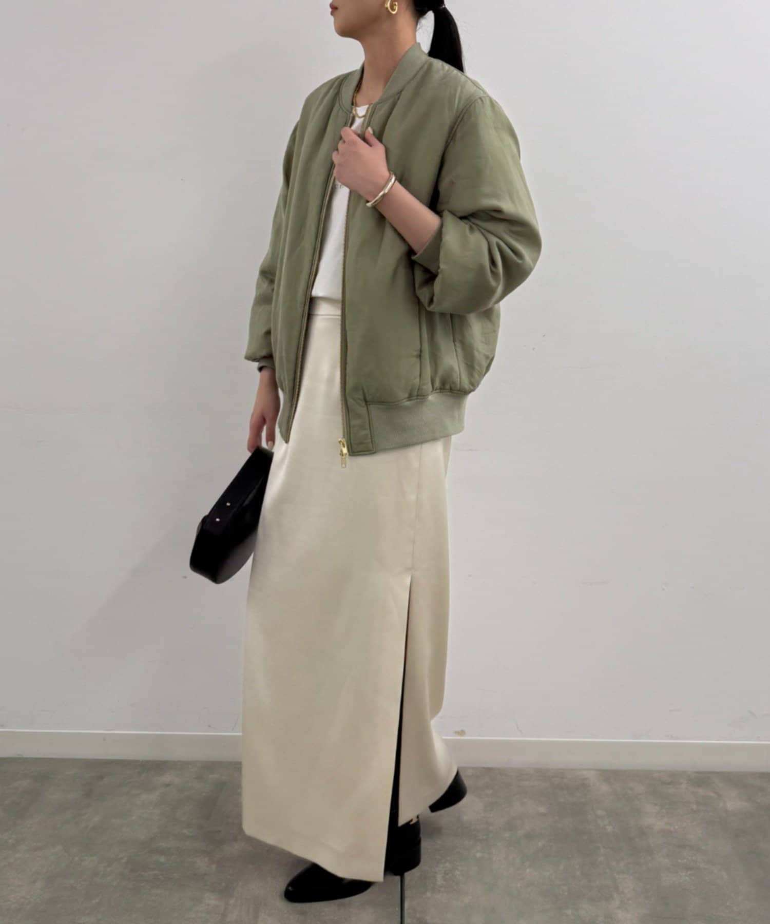 カジュアルな印象のMA-1ブルゾンを、洗練された大人の女性にも着こなせるようにアップデートしました