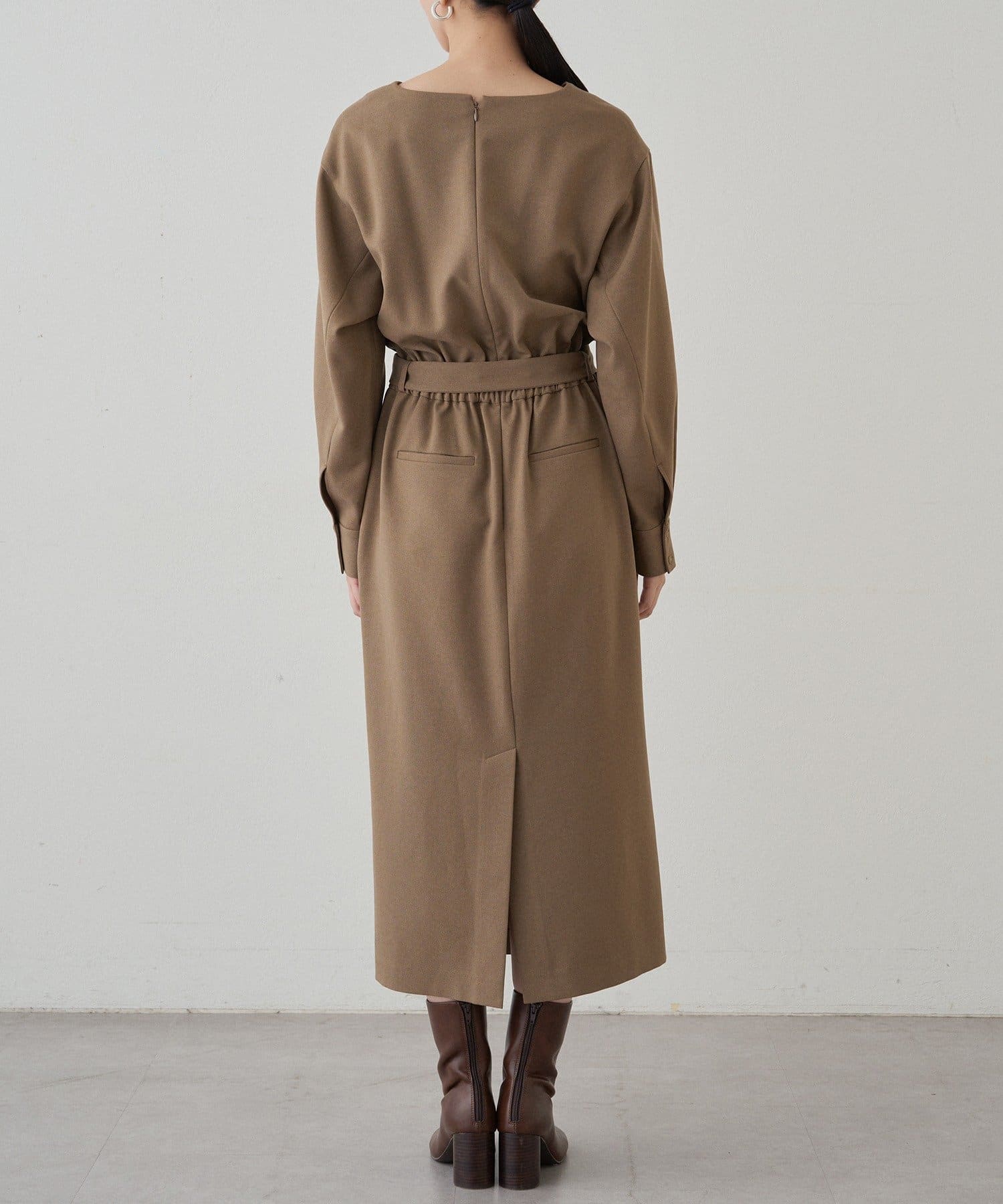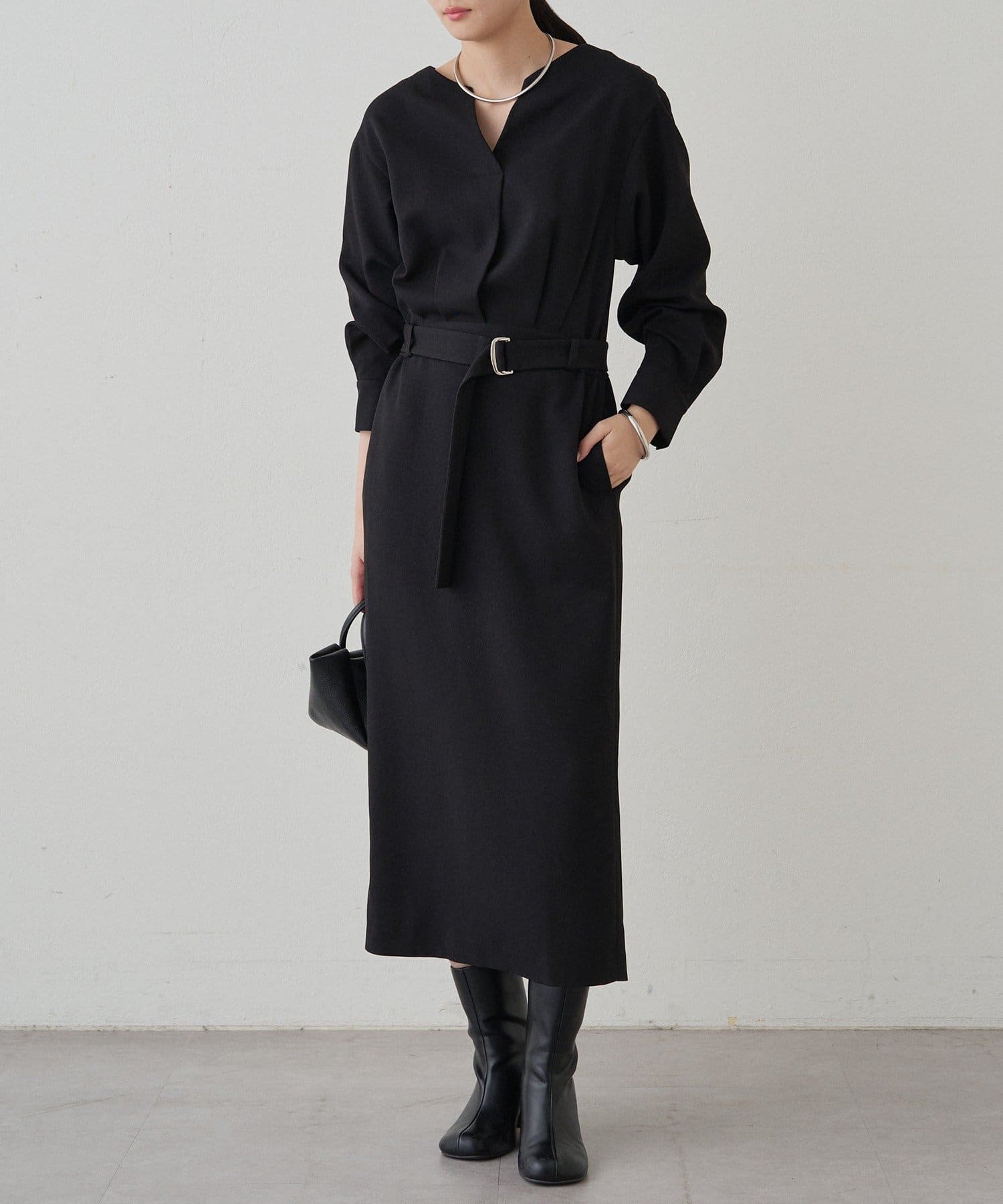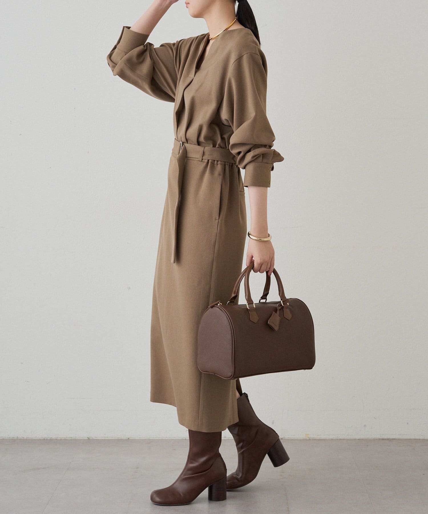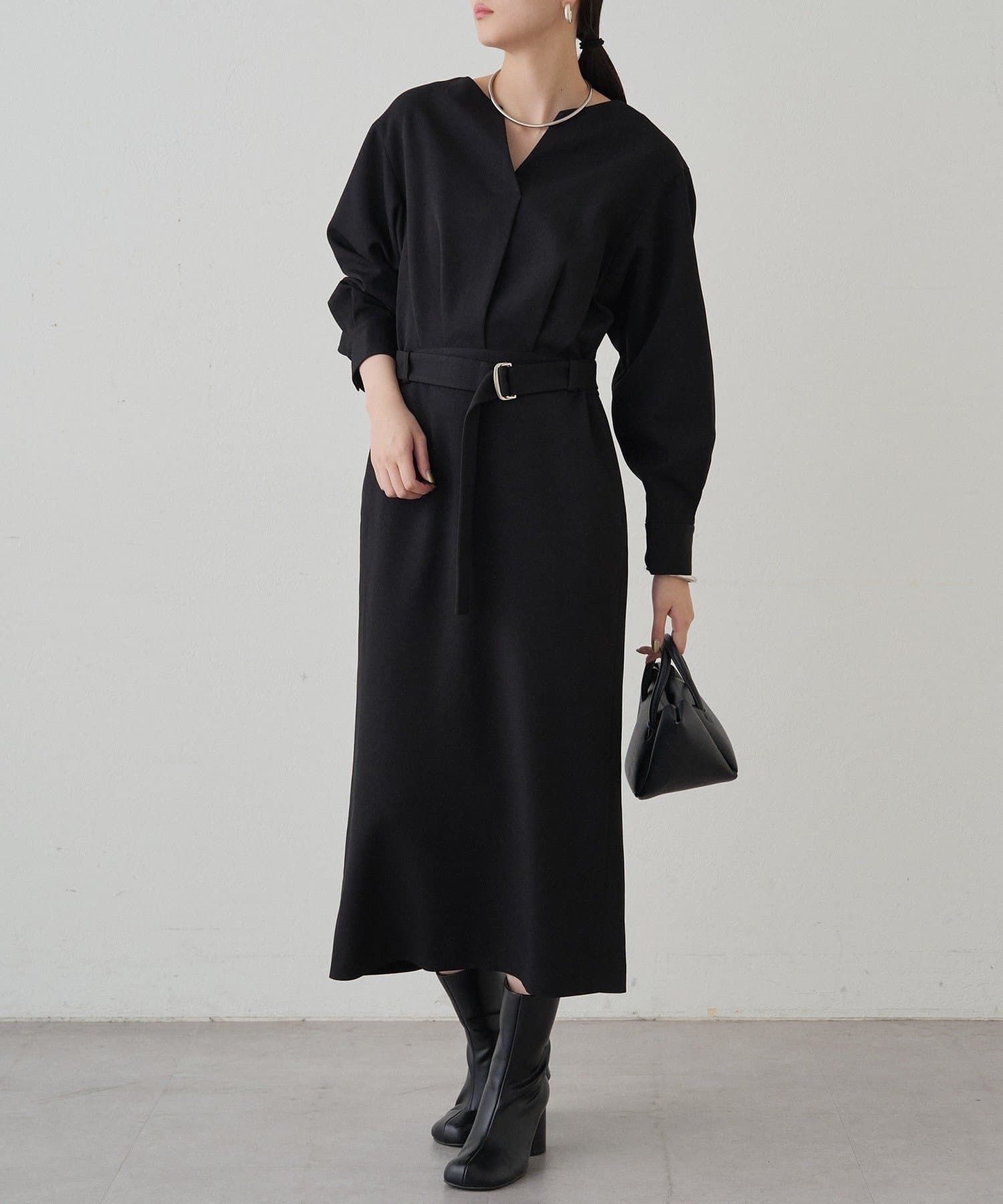 一枚で着るだけでスタイリングが完成するワンピースは、足元はブーツで秋らしく、パンプスで上品に。