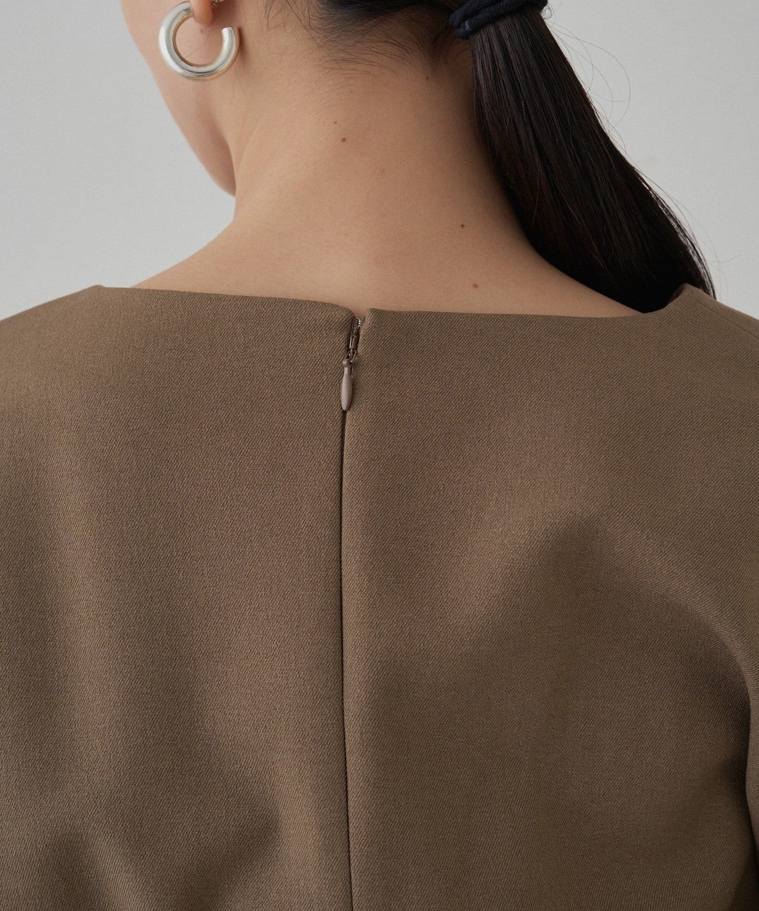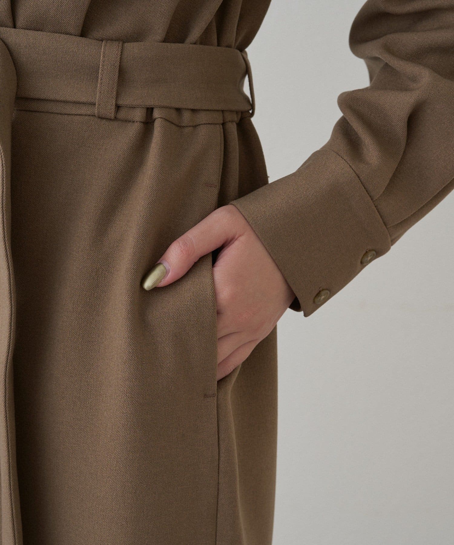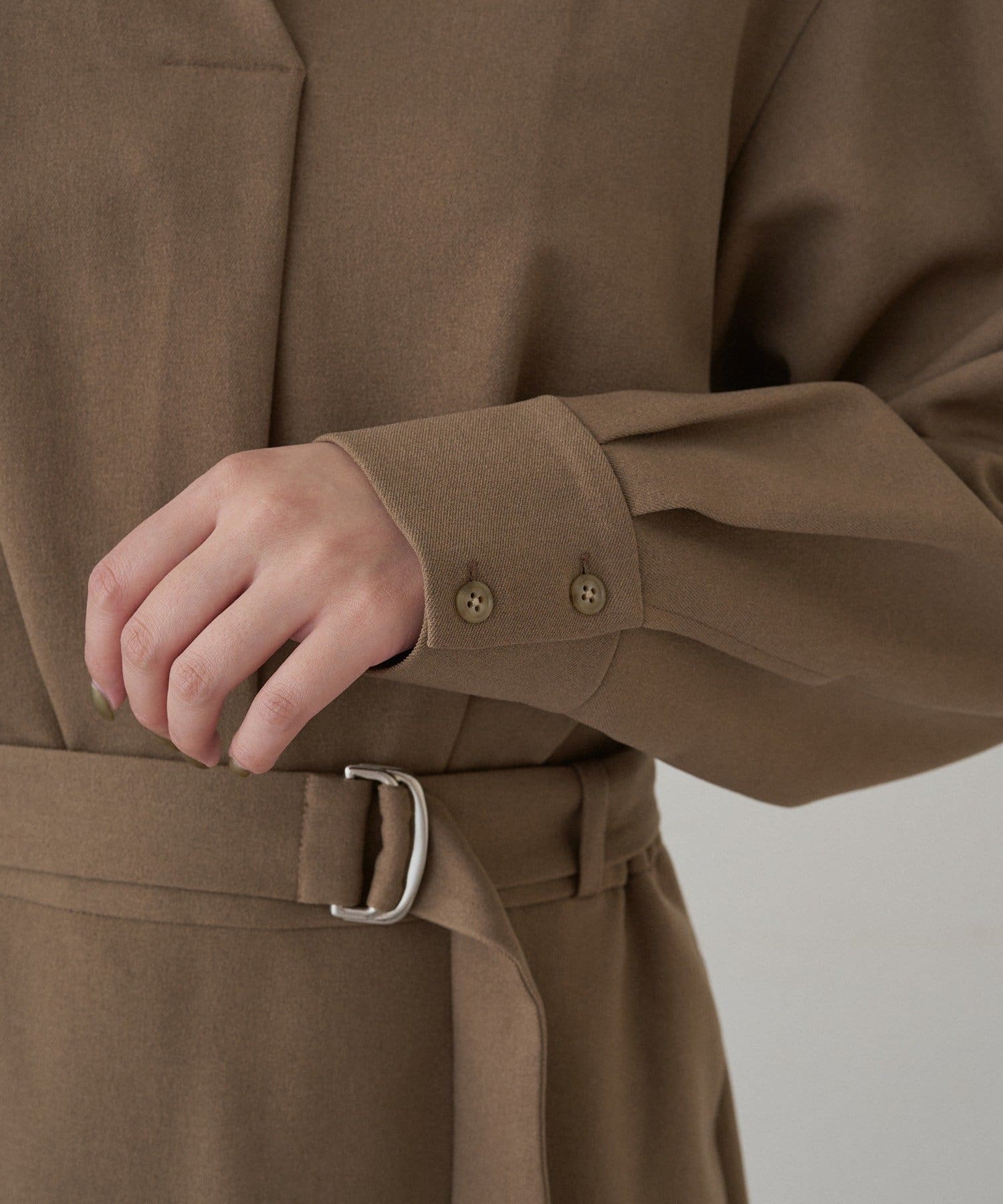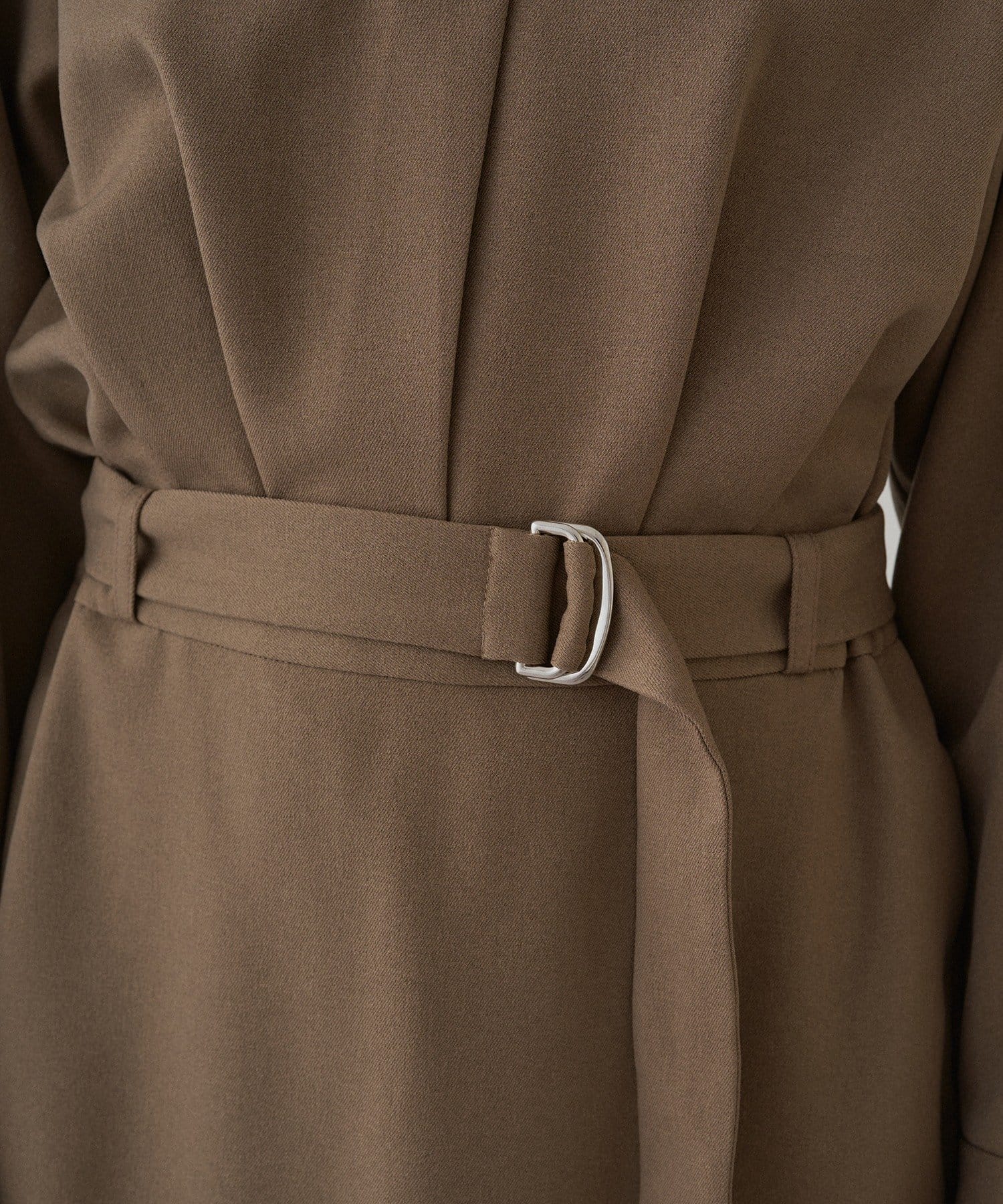 共布のベルトでウエストマークすれば、スタイルアップ効果も抜群。