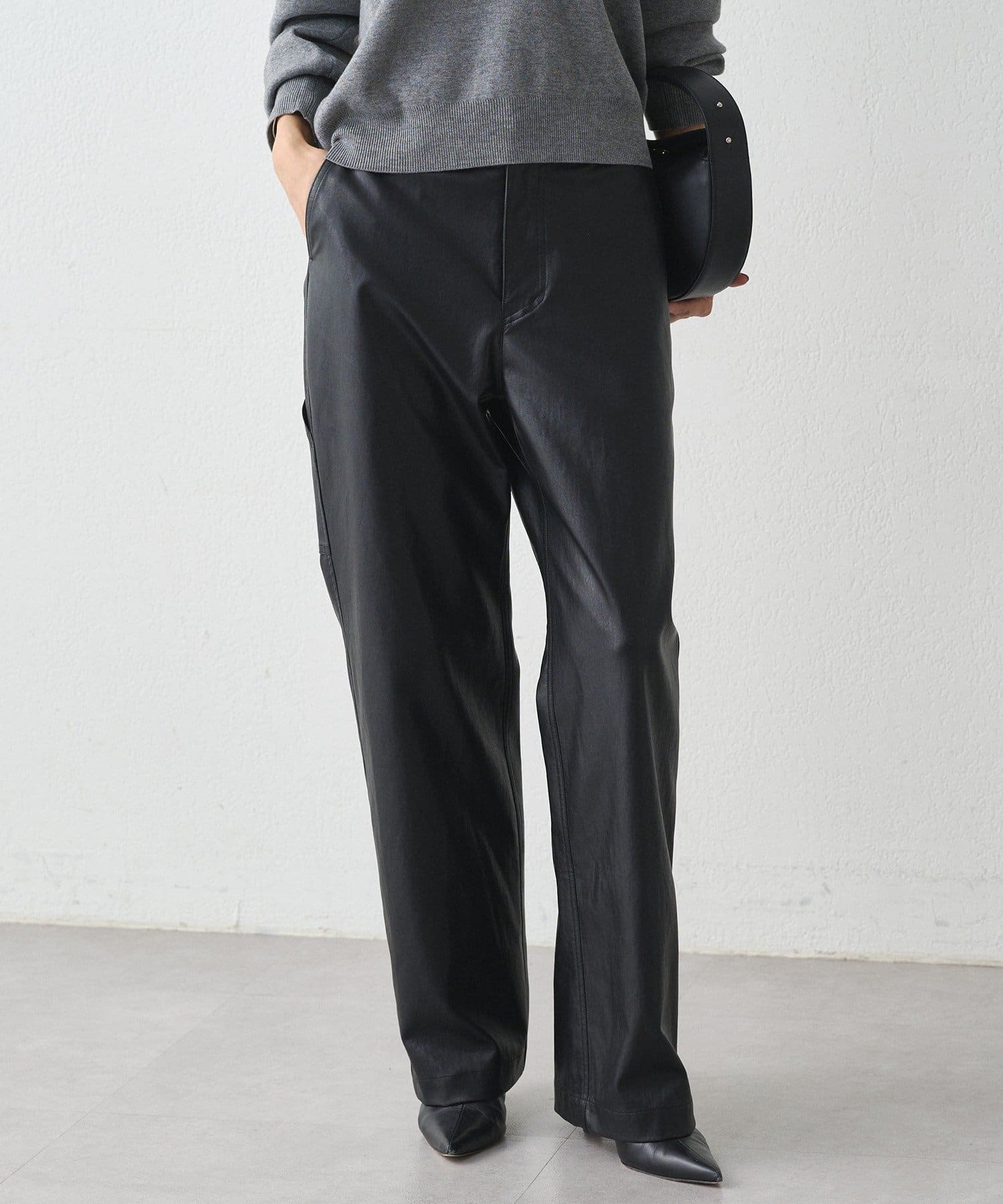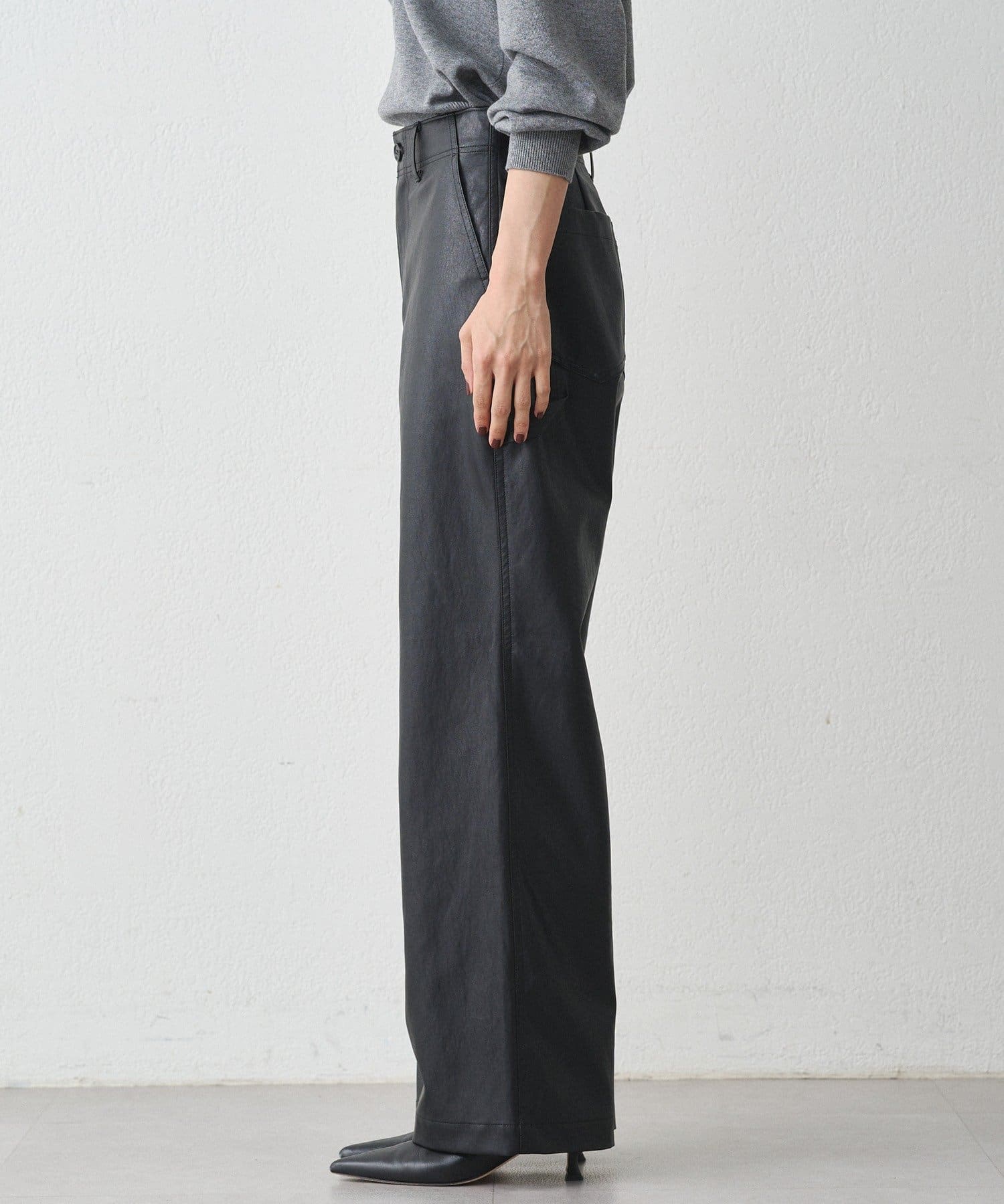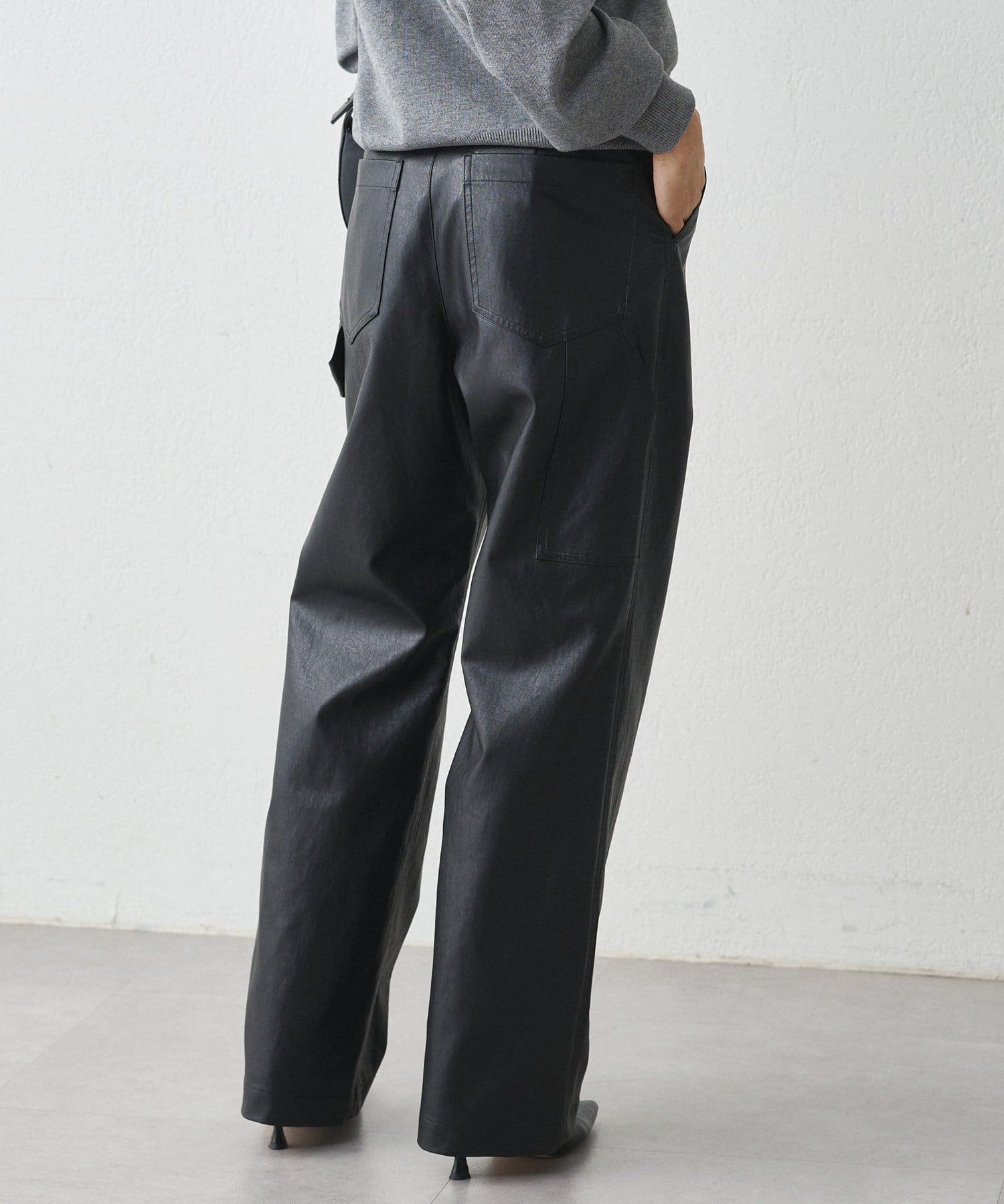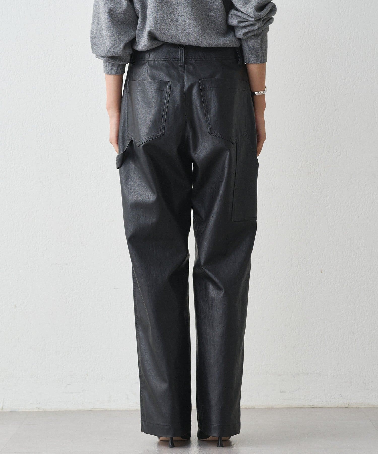 ペンキ職人が履いているペインターパンツをイメージしフェイクレザーで洗練された印象に。