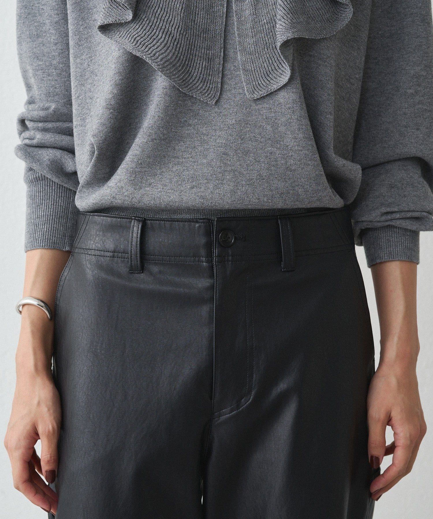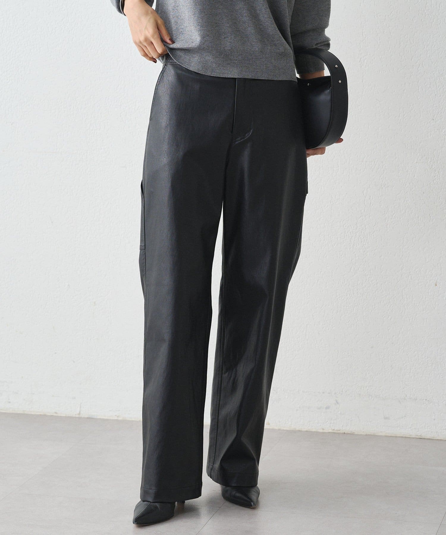 程よい光沢感と、ゆったりとしたシルエットが魅力のレザーパンツ
