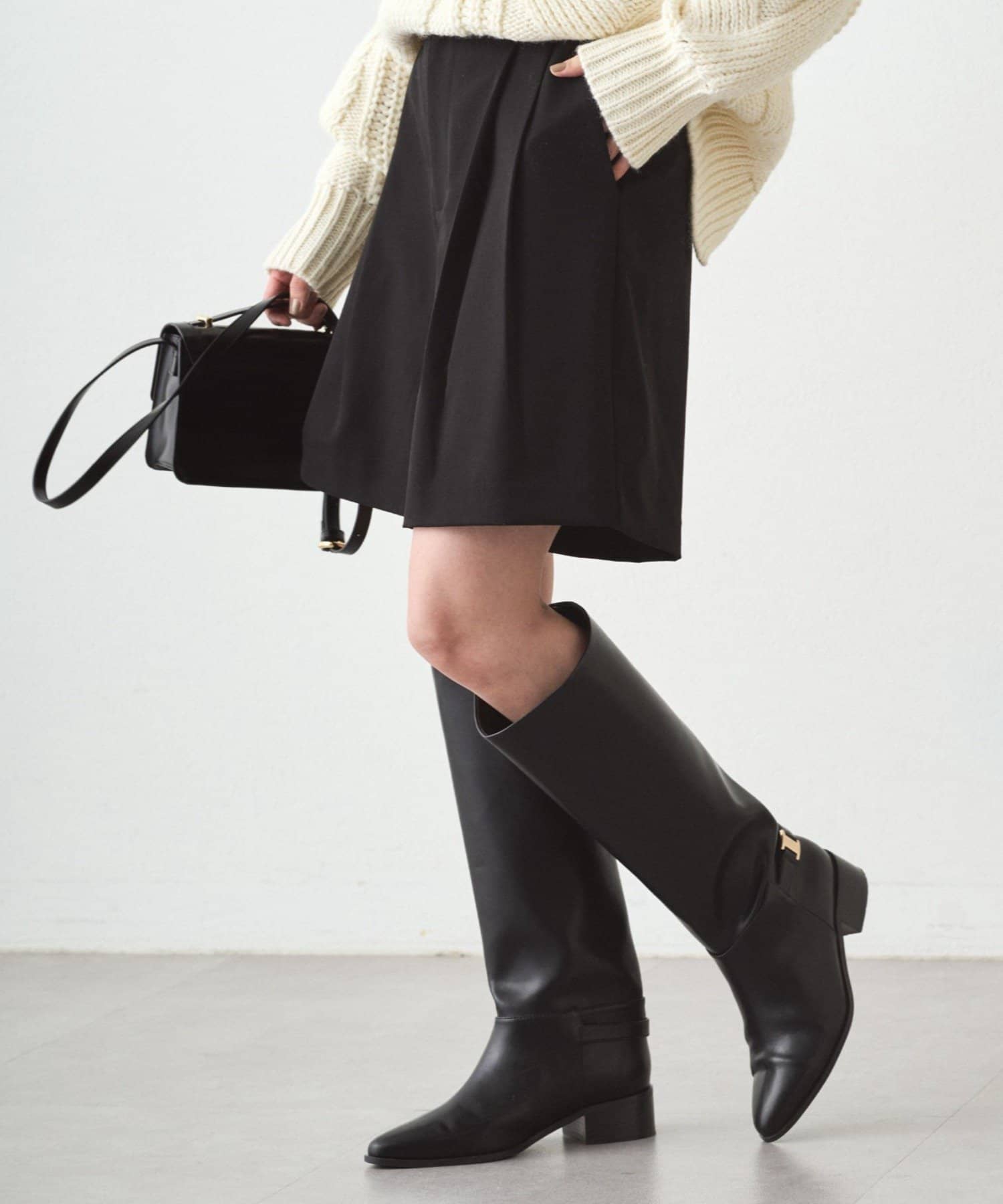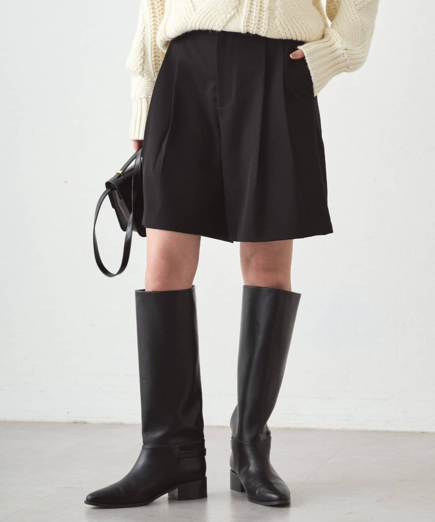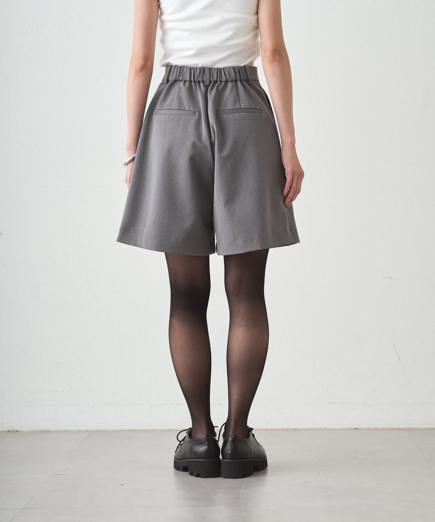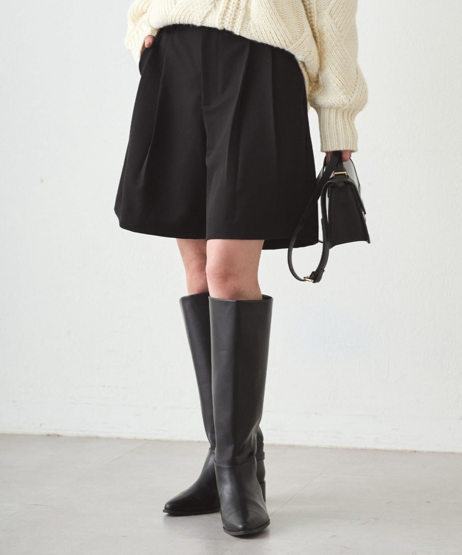 一見スカートのようなフレアシルエットが、気になる太ももをカバーしつつ、上品でフェミニンな印象を与えます。