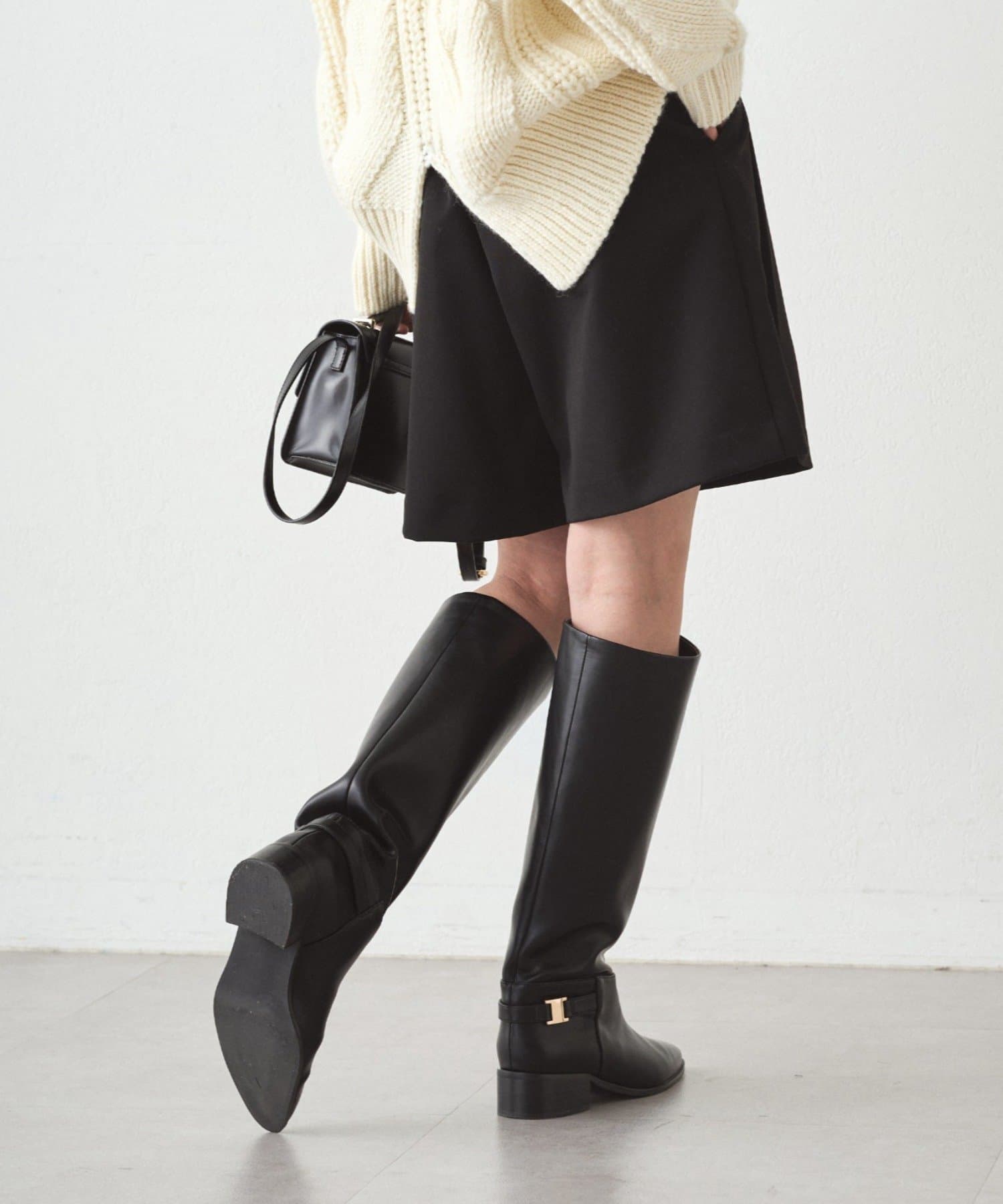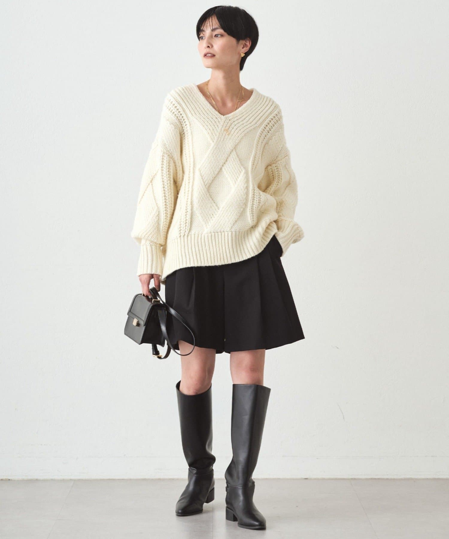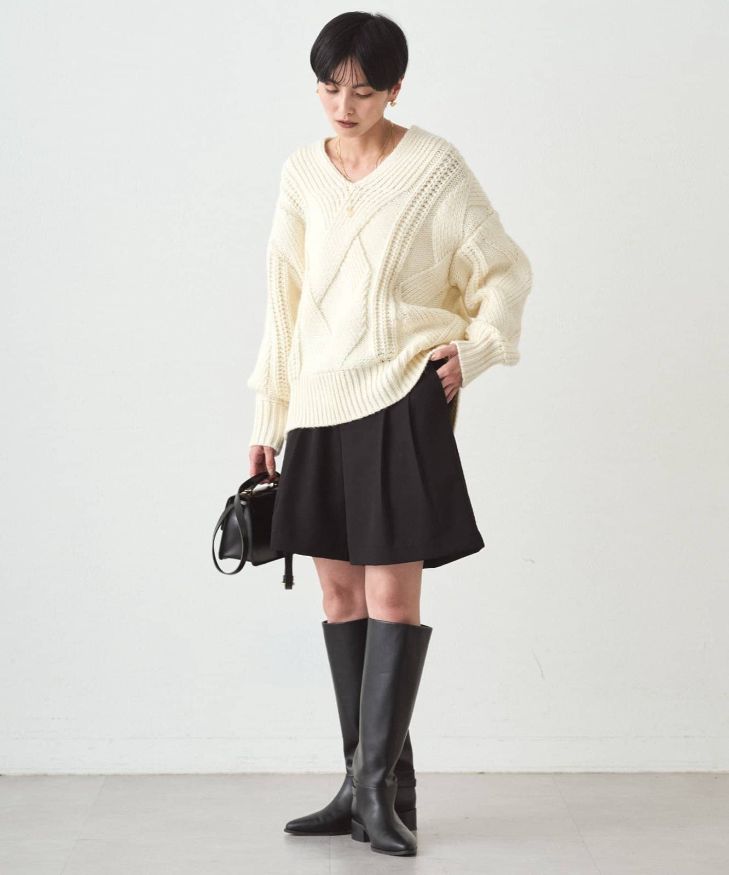 一見スカートのようなフレアシルエットが、気になる太ももをカバーしつつ、上品でフェミニンな印象を与えます。