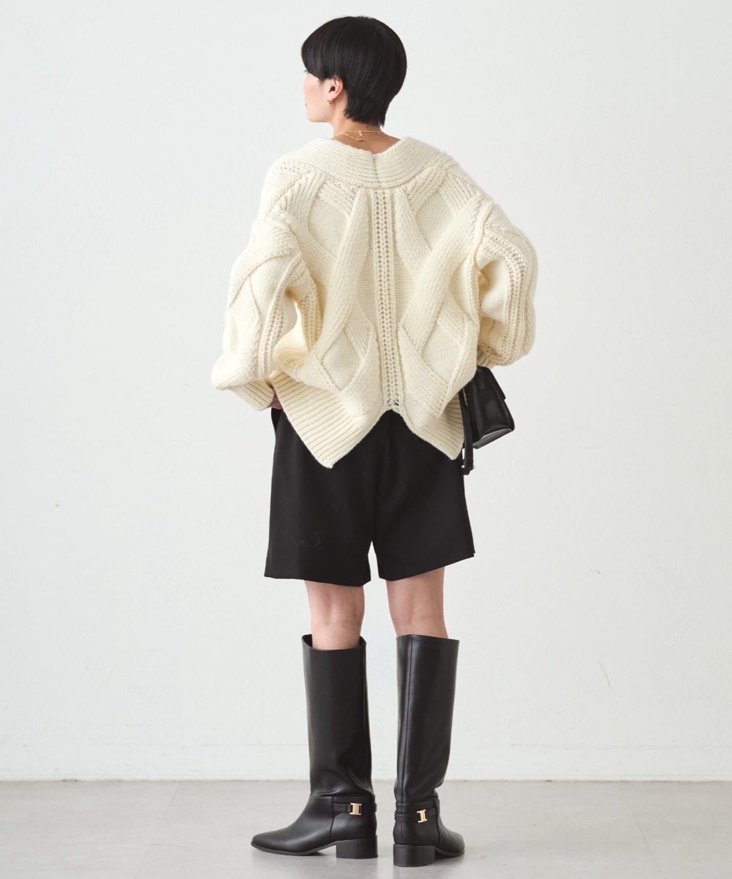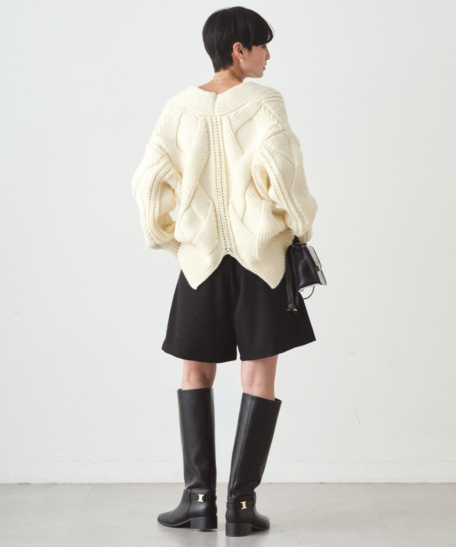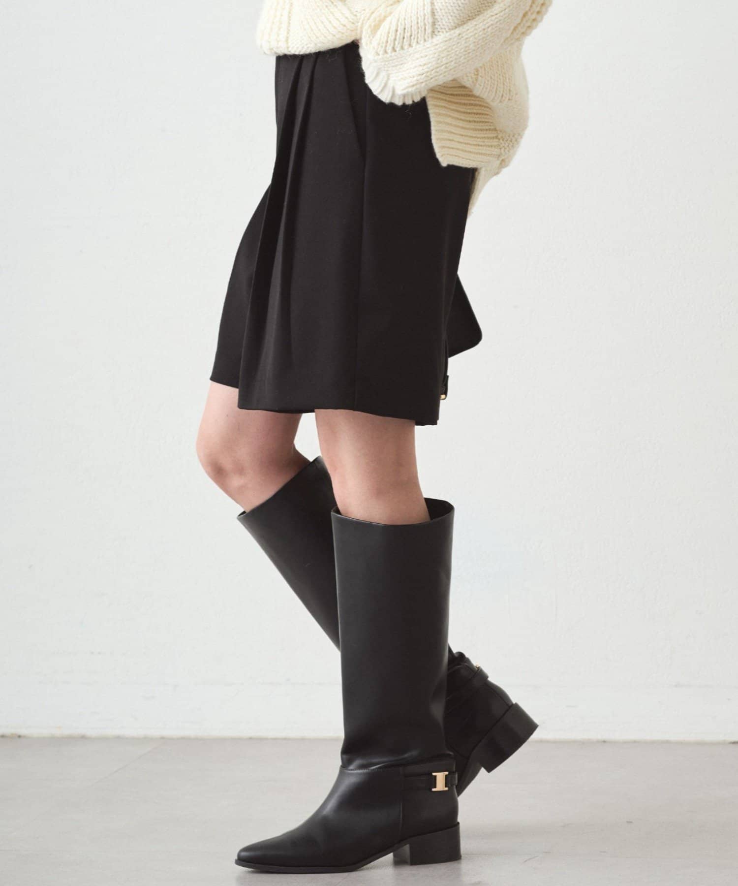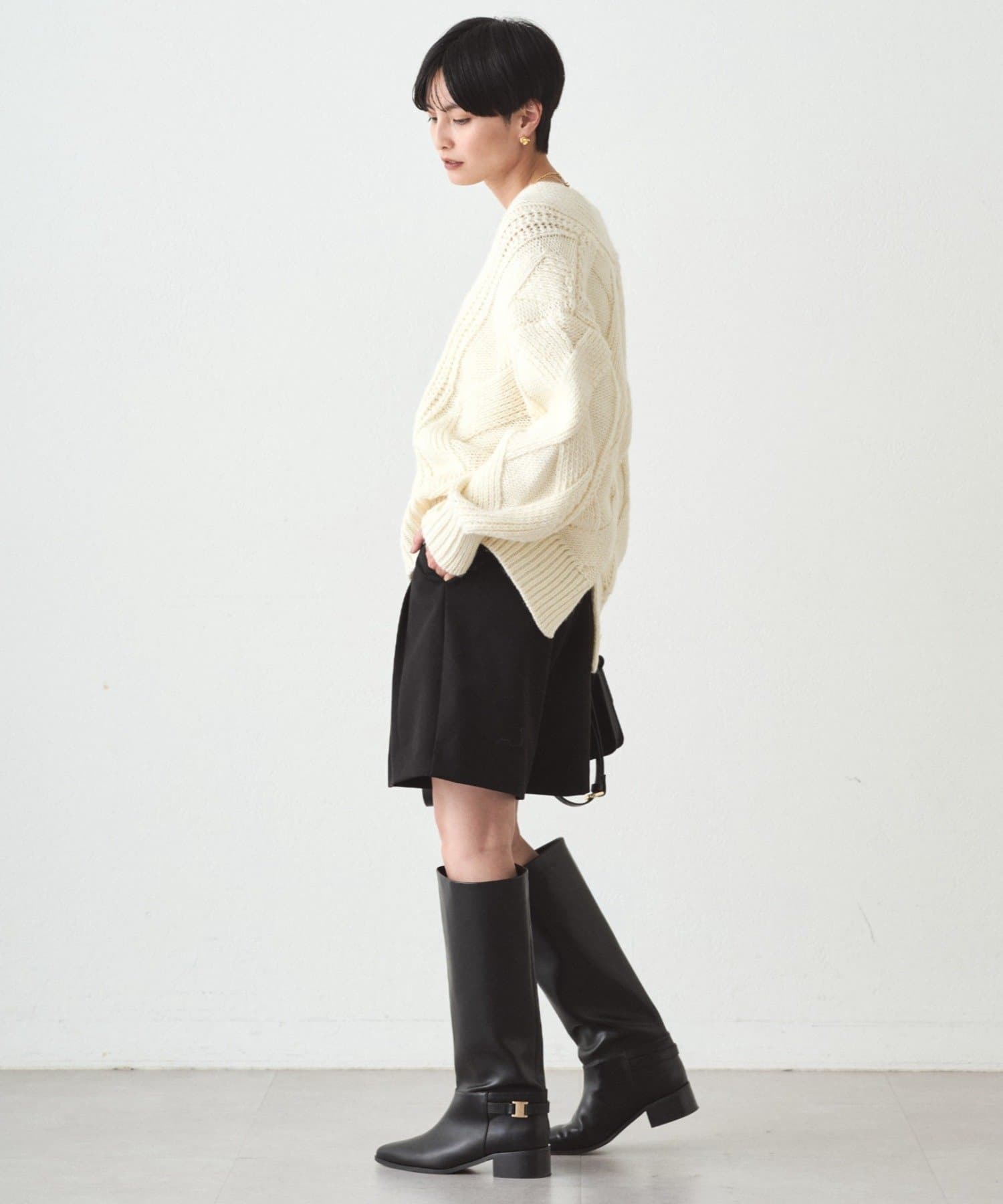 一見スカートのようなフレアシルエットが、気になる太ももをカバーしつつ、上品でフェミニンな印象を与えます。