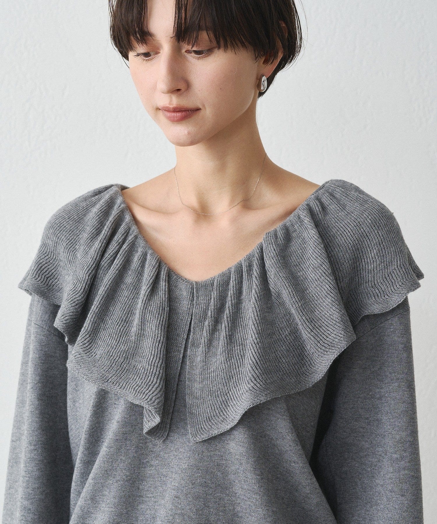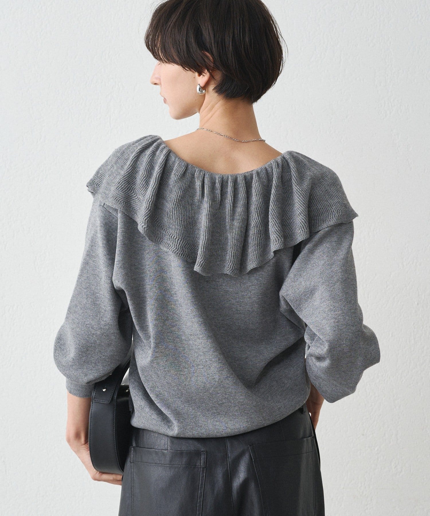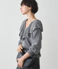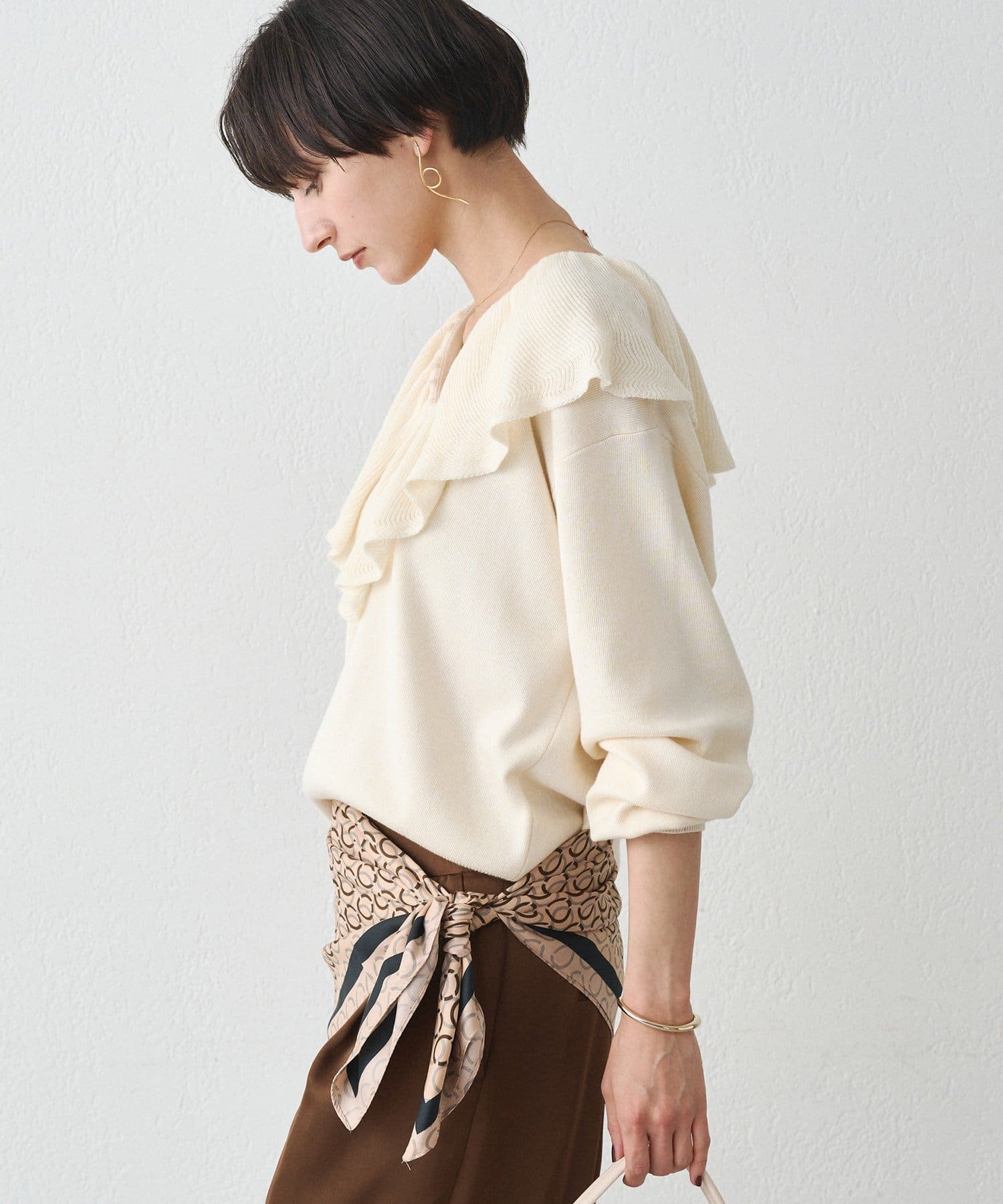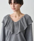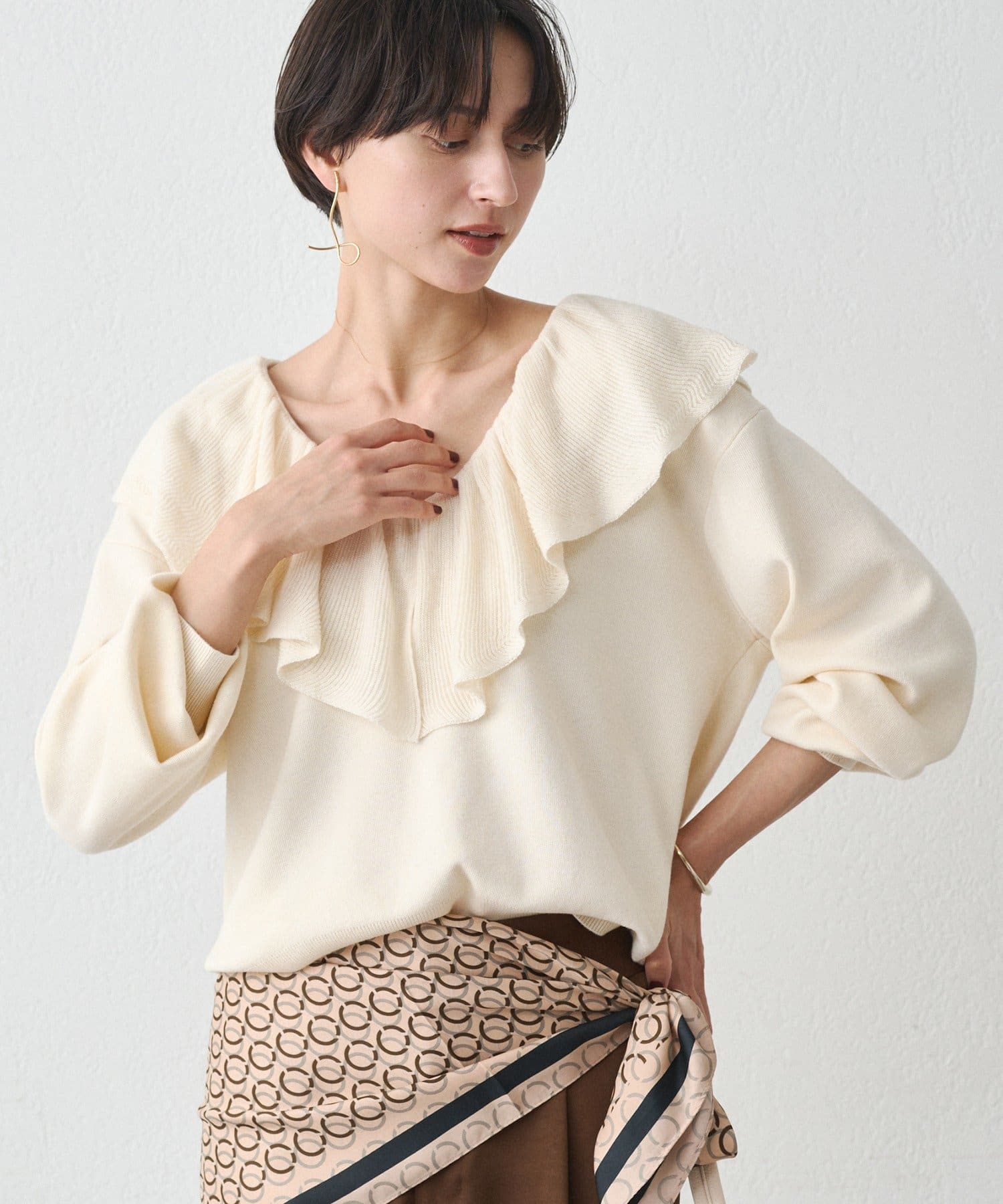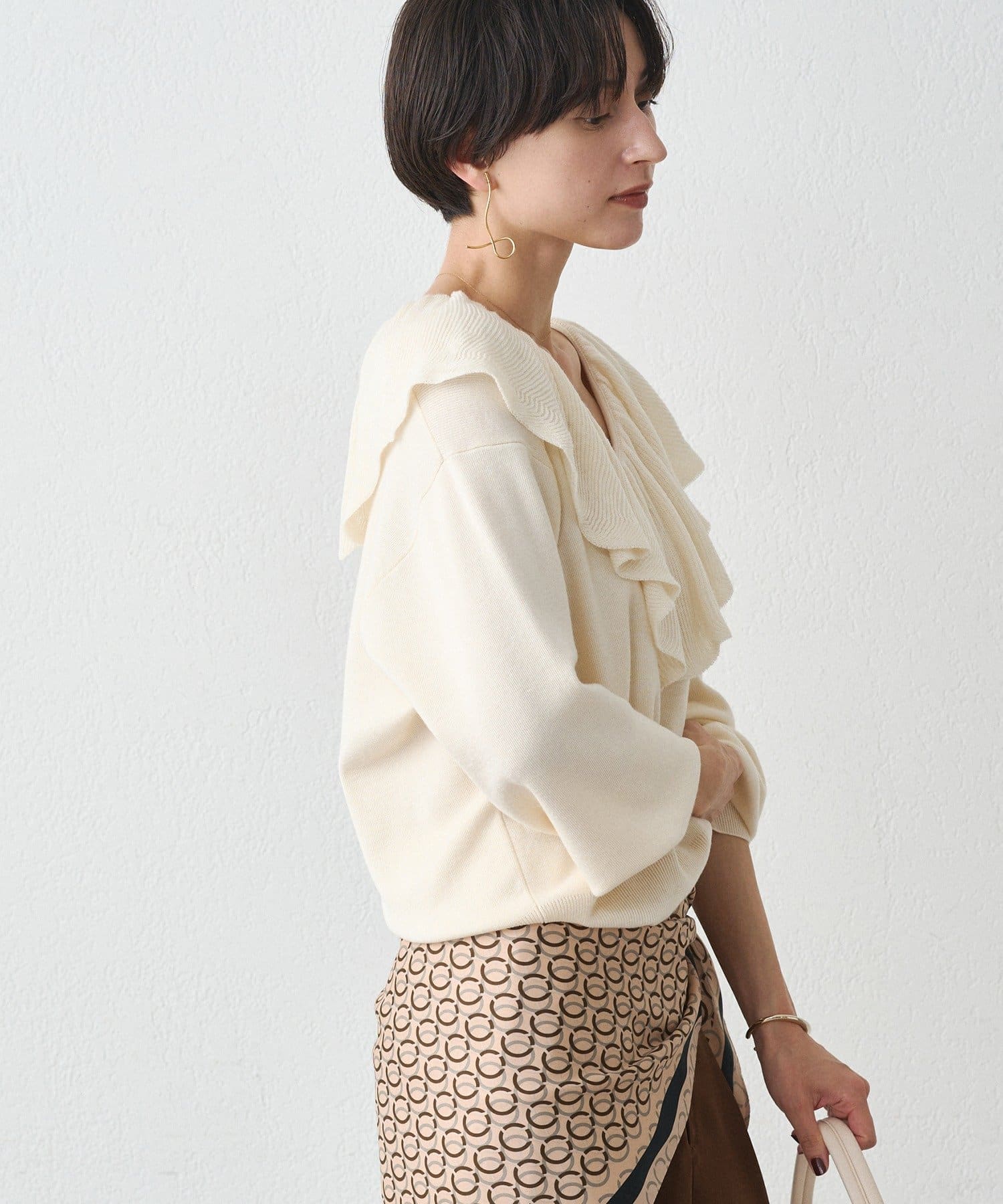 華奢見えするVネックデザインと、ボリュームのあるフリルで華やかさも演出。