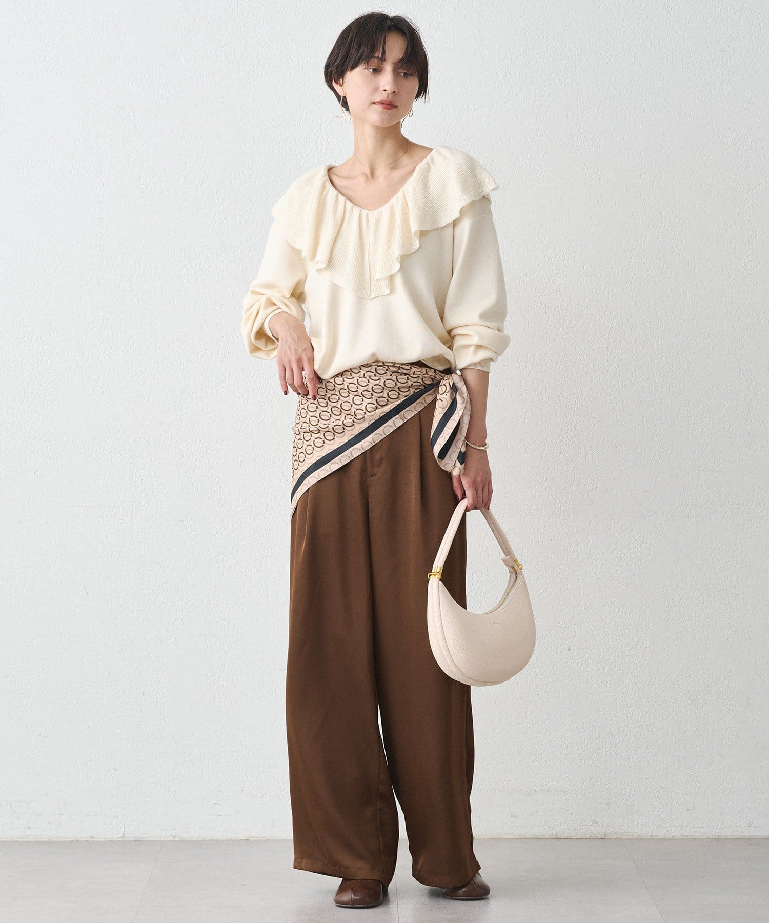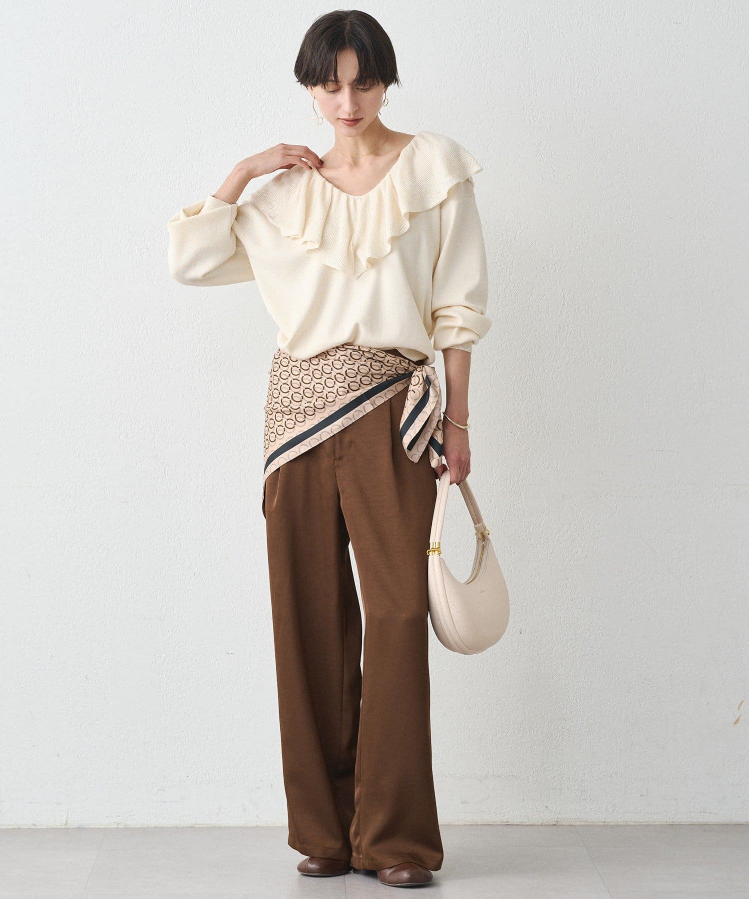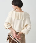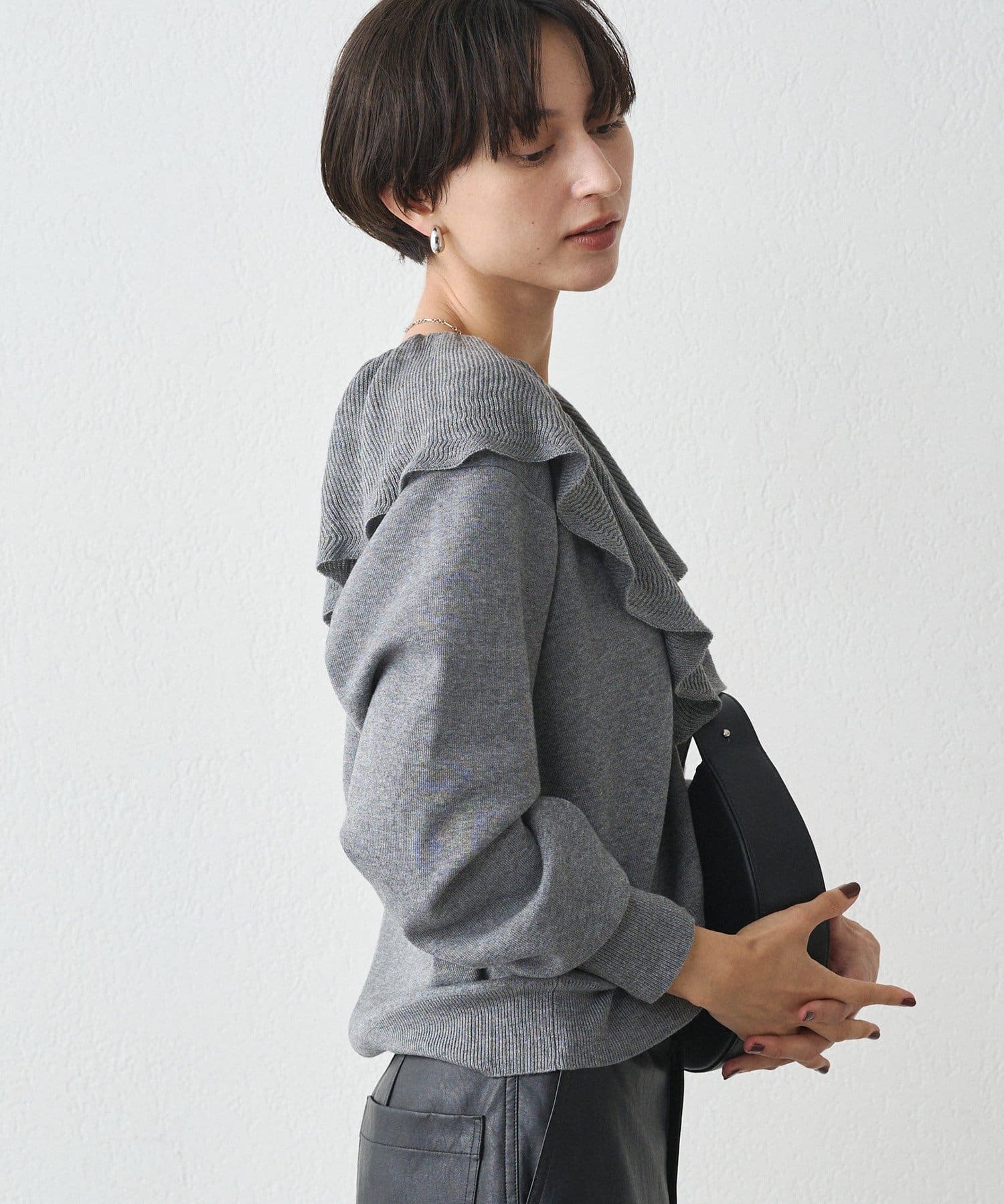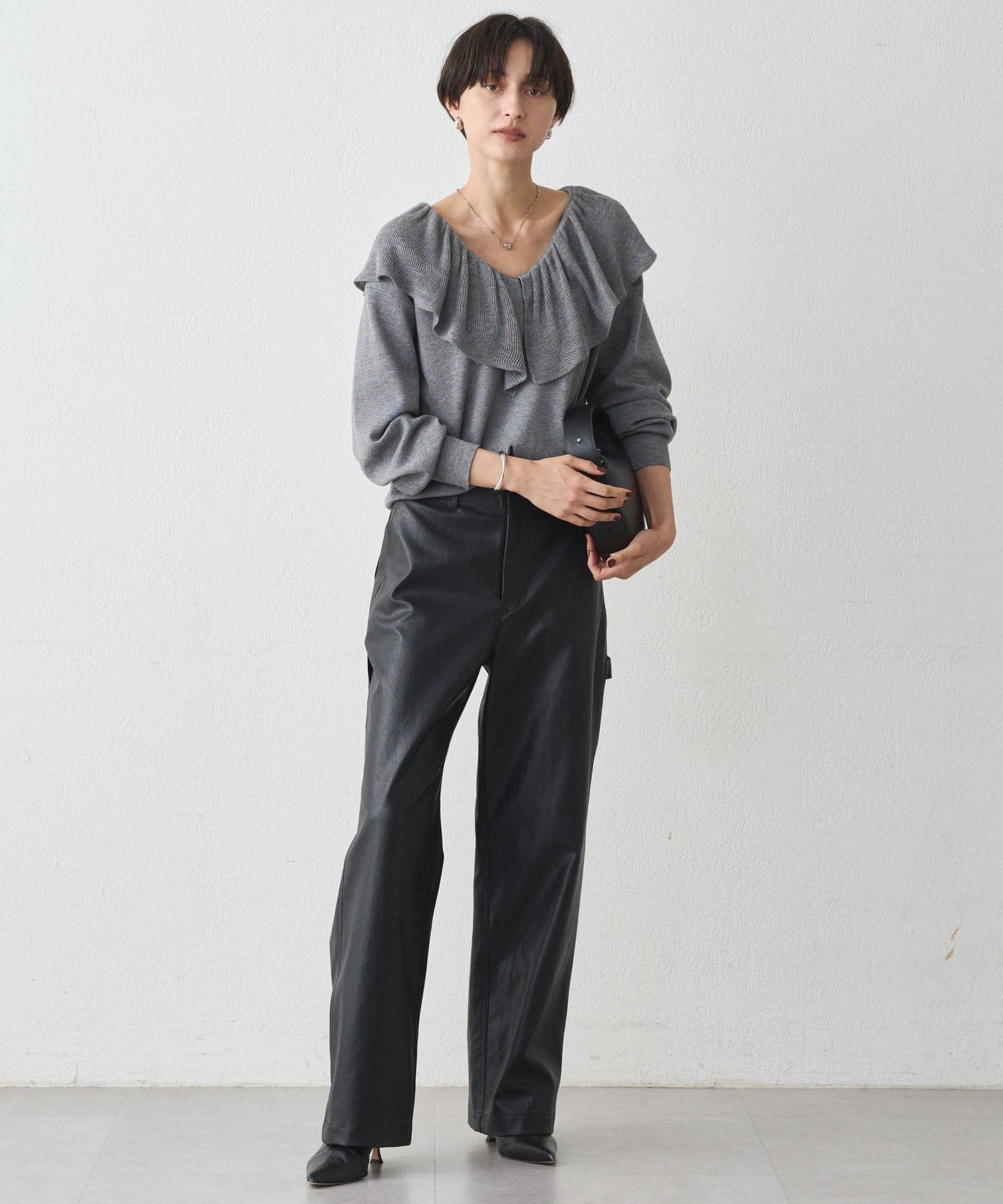 華奢見えするVネックデザインと、ボリュームのあるフリルで華やかさも演出。