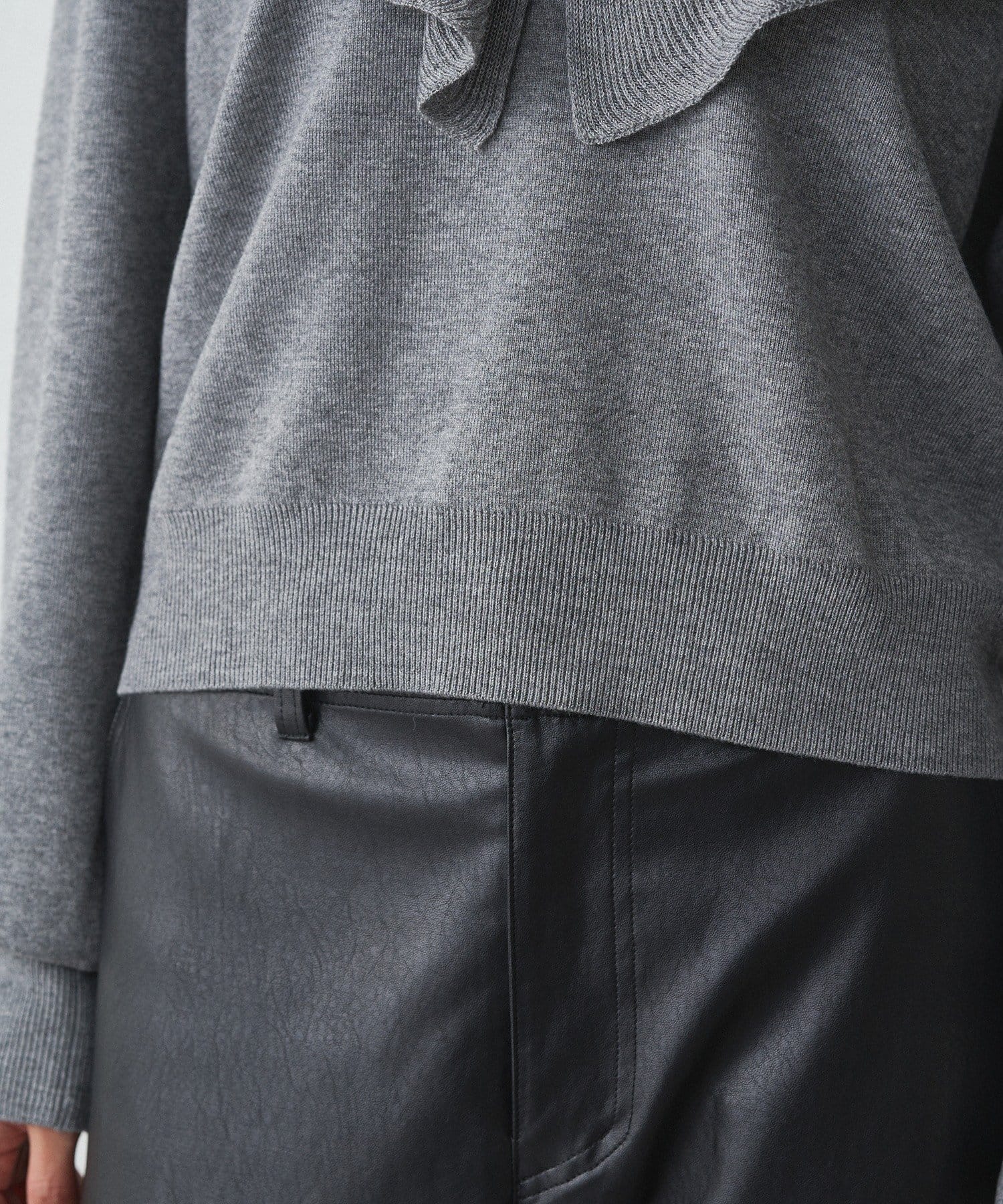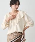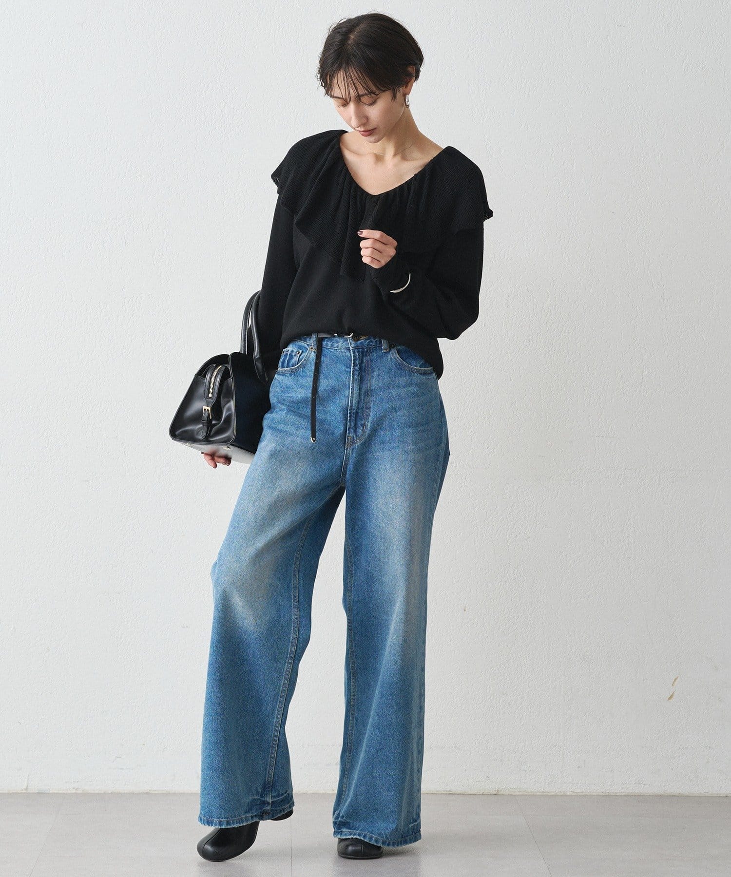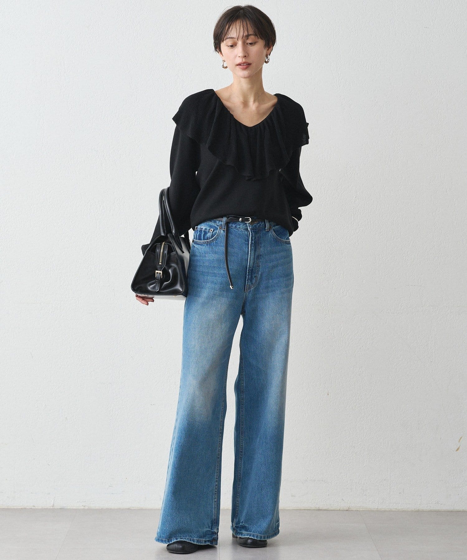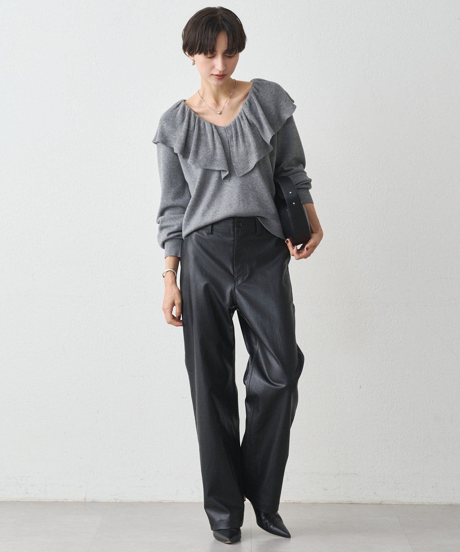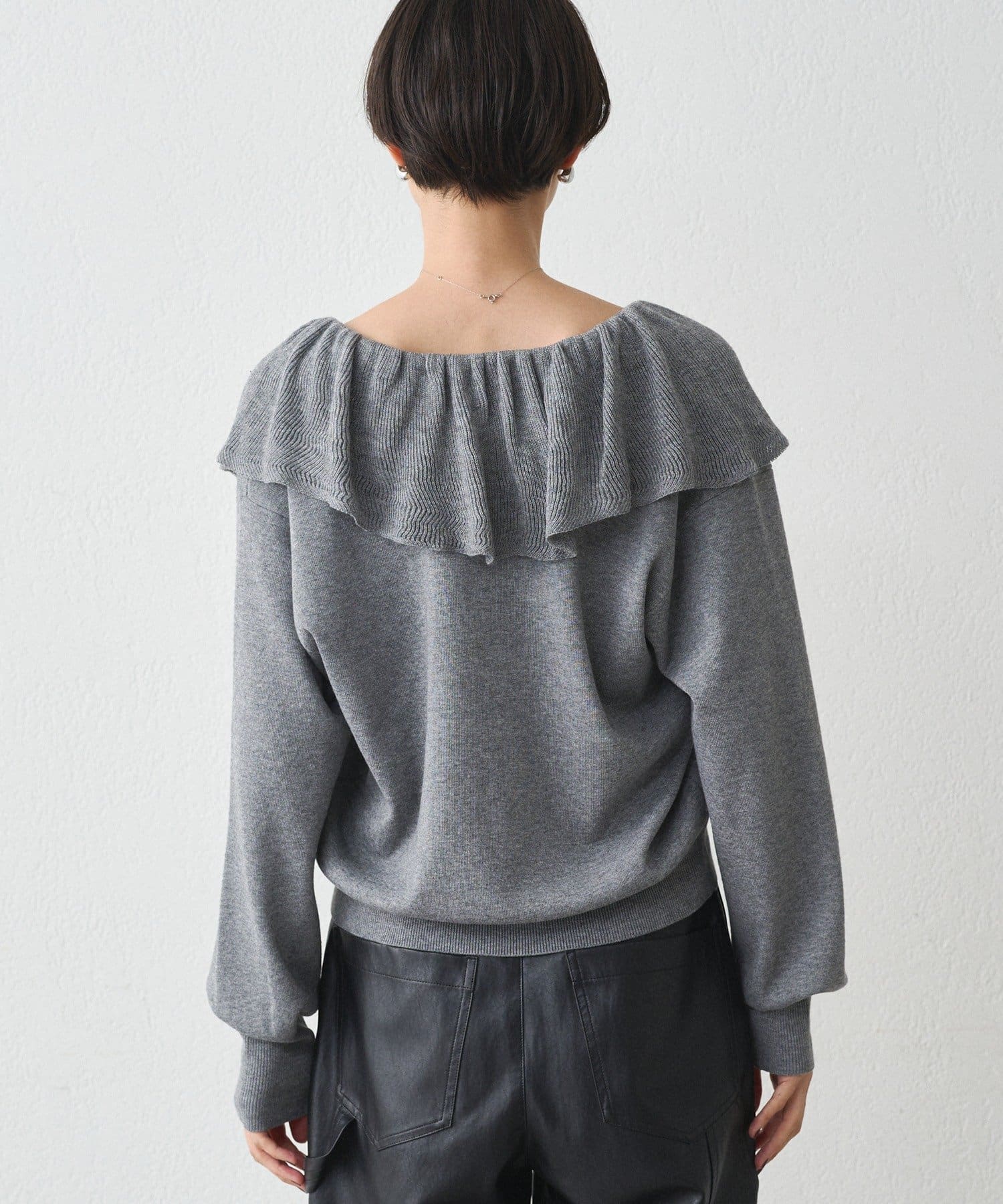 華奢見えするVネックデザインと、ボリュームのあるフリルで華やかさも演出。