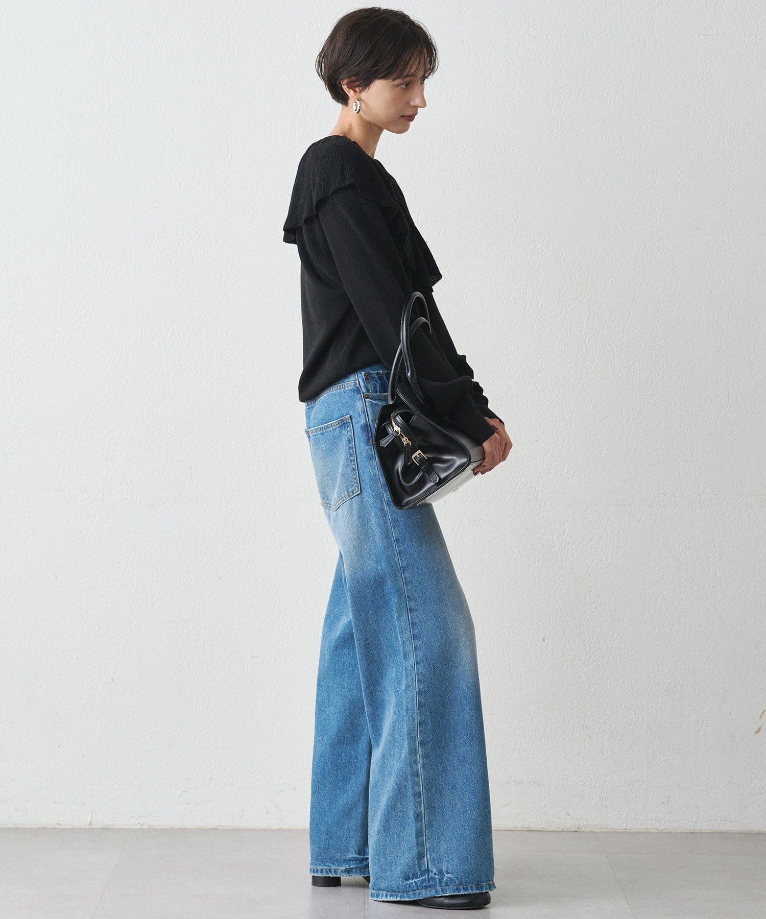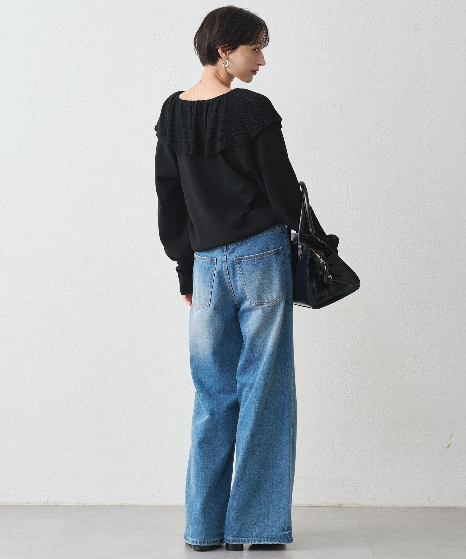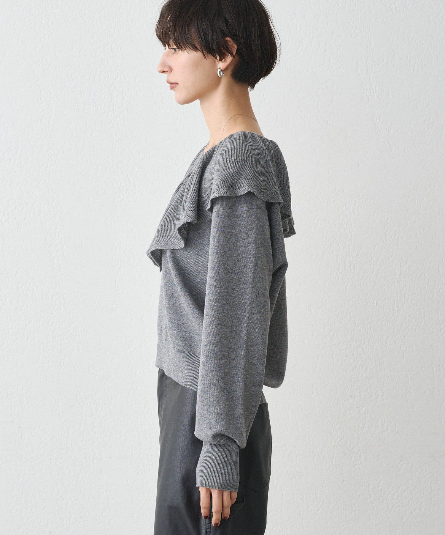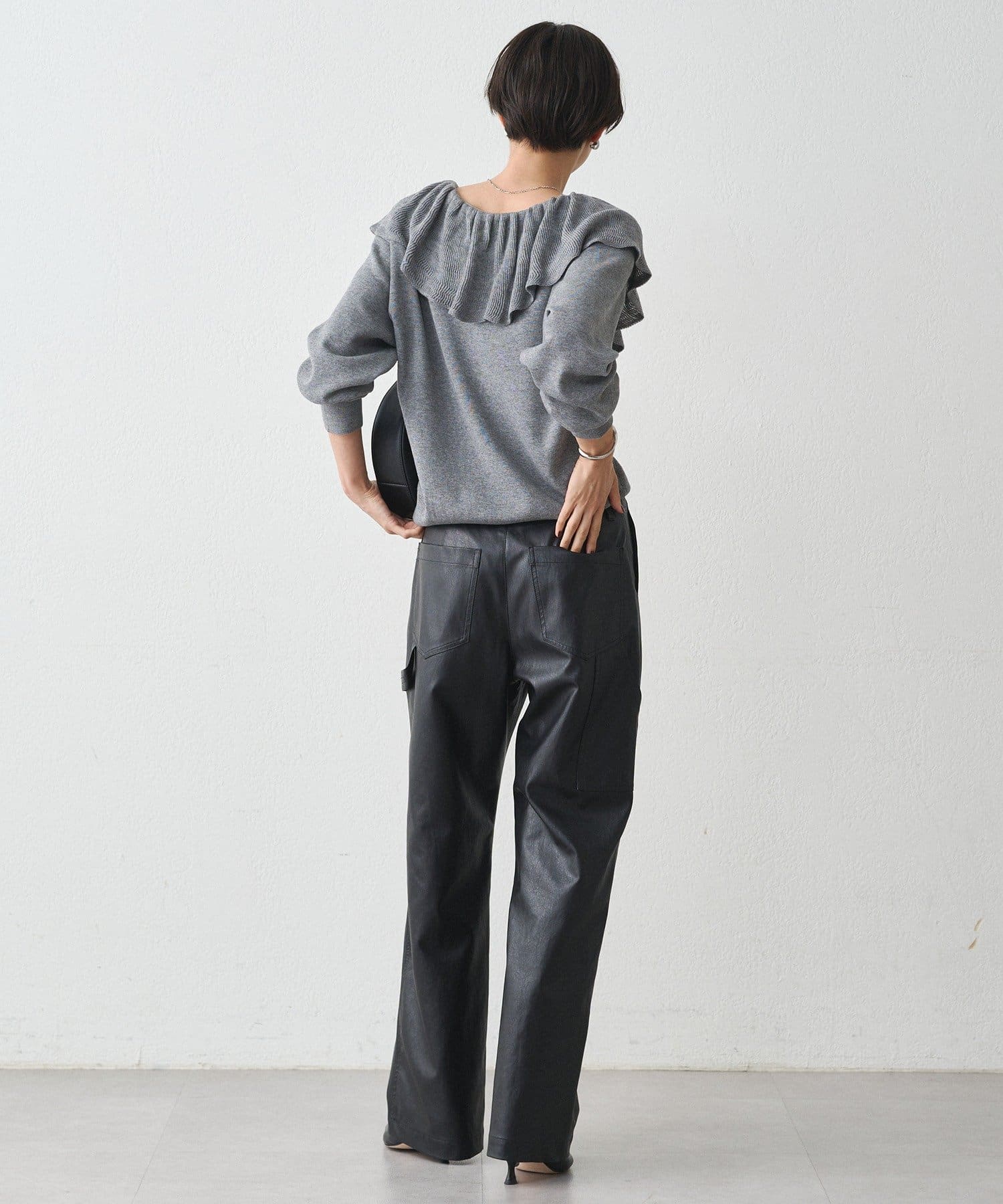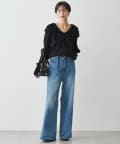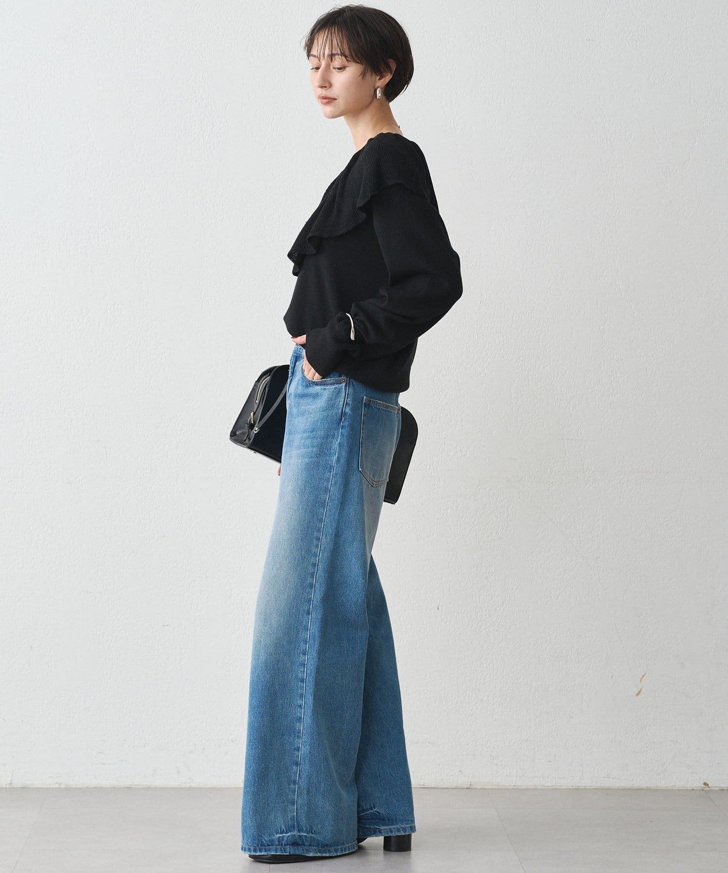 華奢見えするVネックデザインと、ボリュームのあるフリルで華やかさも演出。