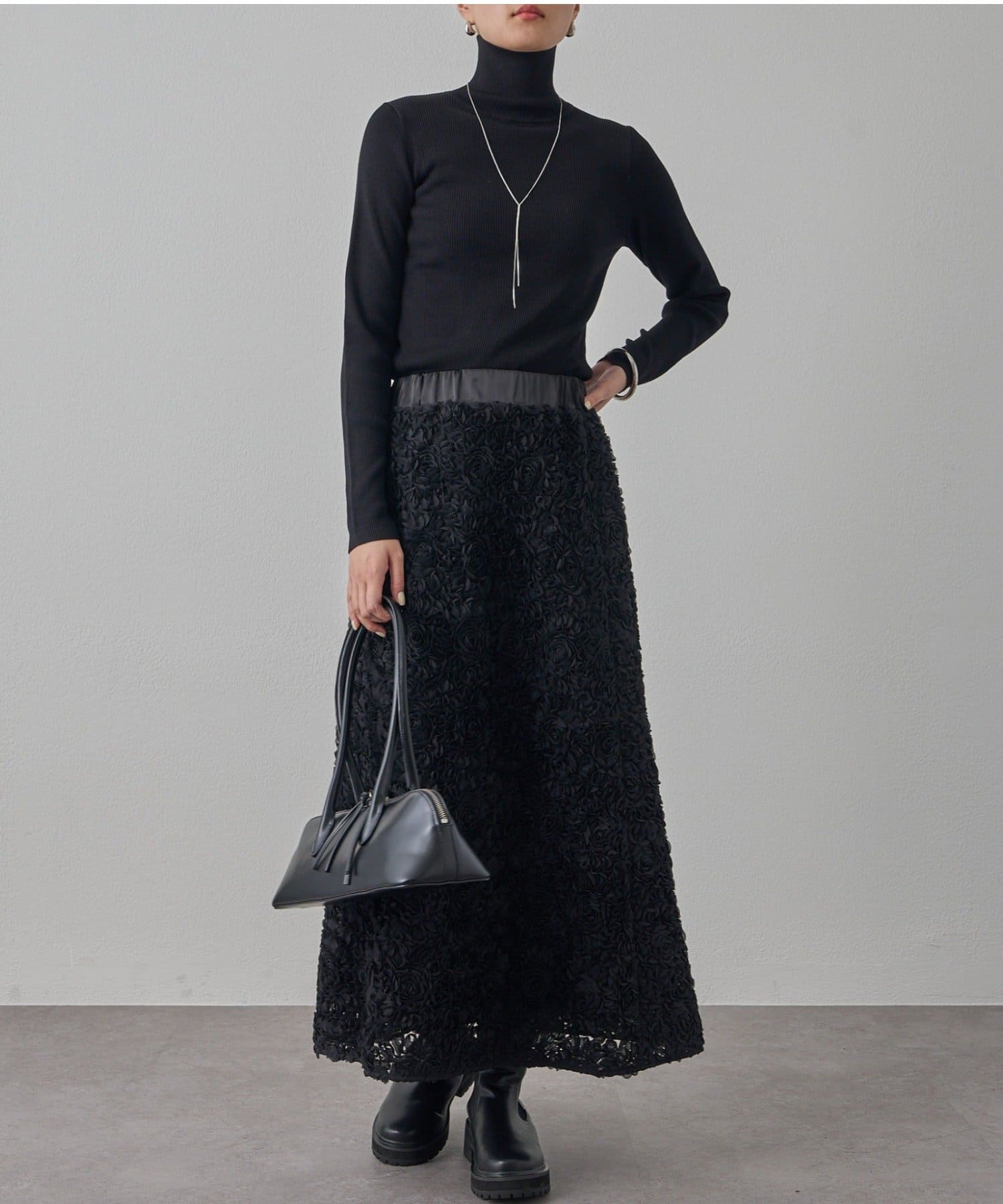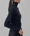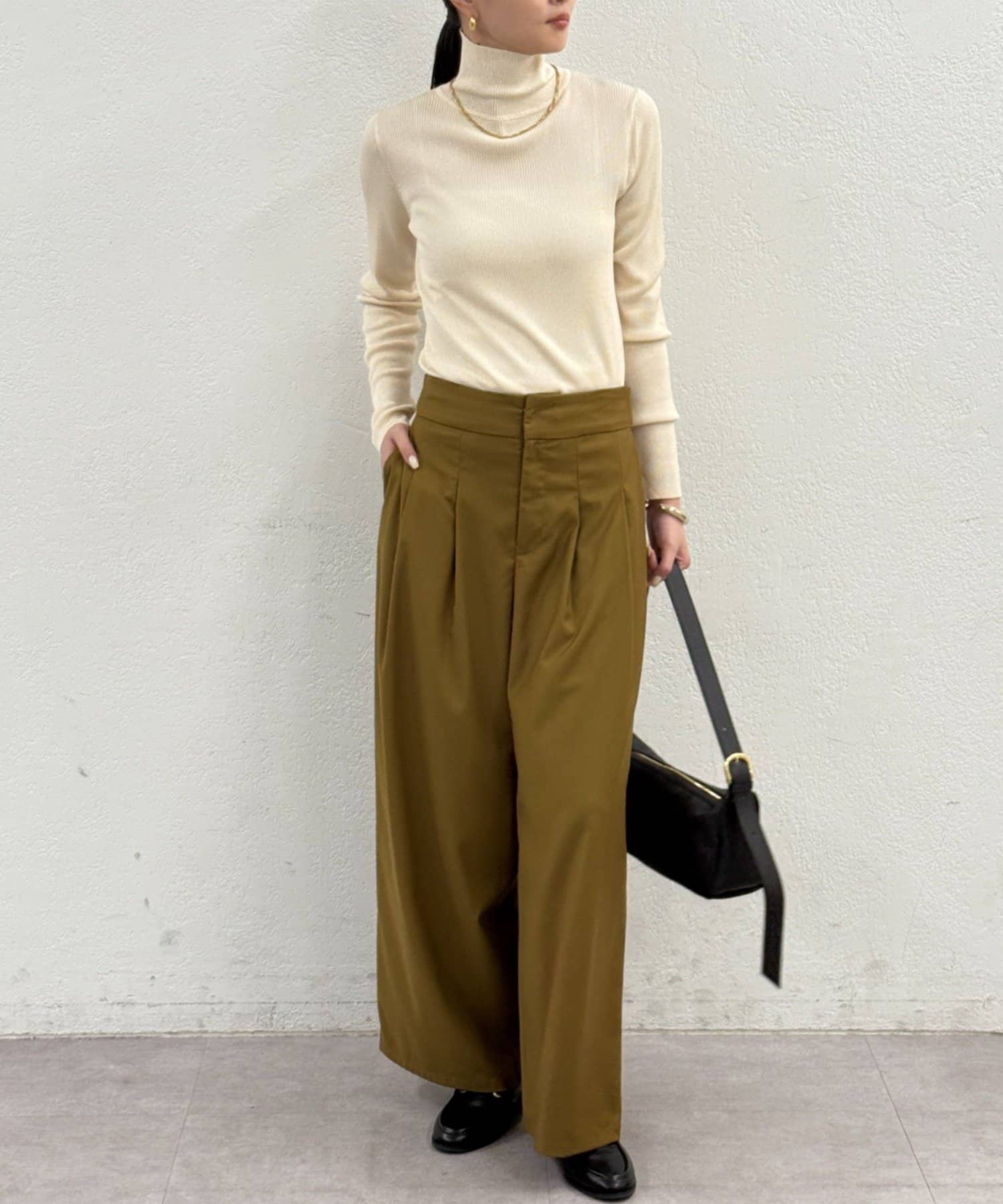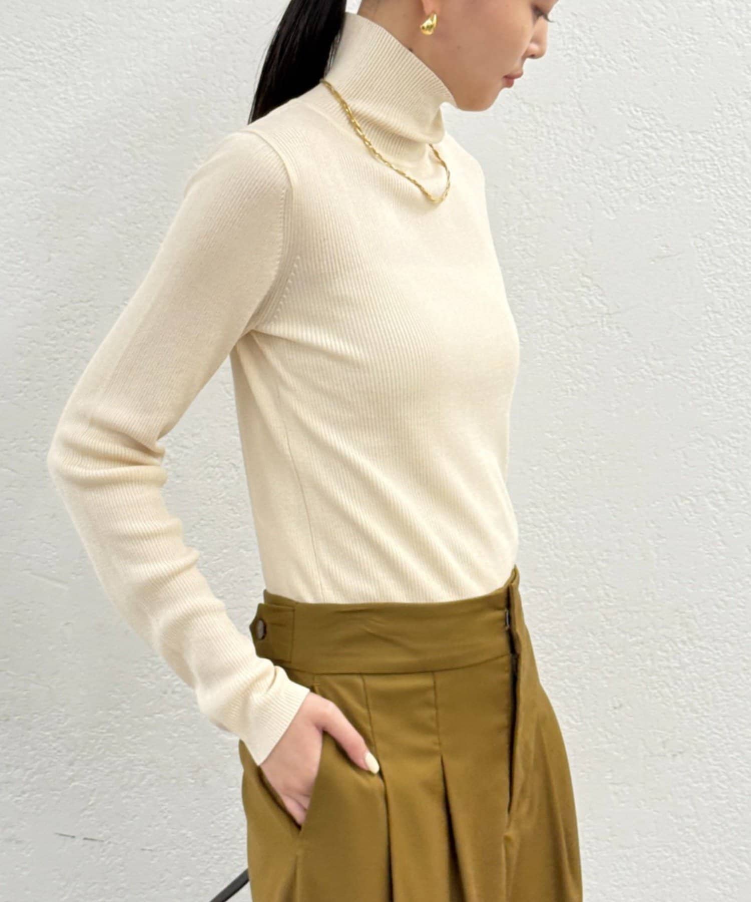 タートルネックが首元を優しく包み込み、小顔効果も期待できます。