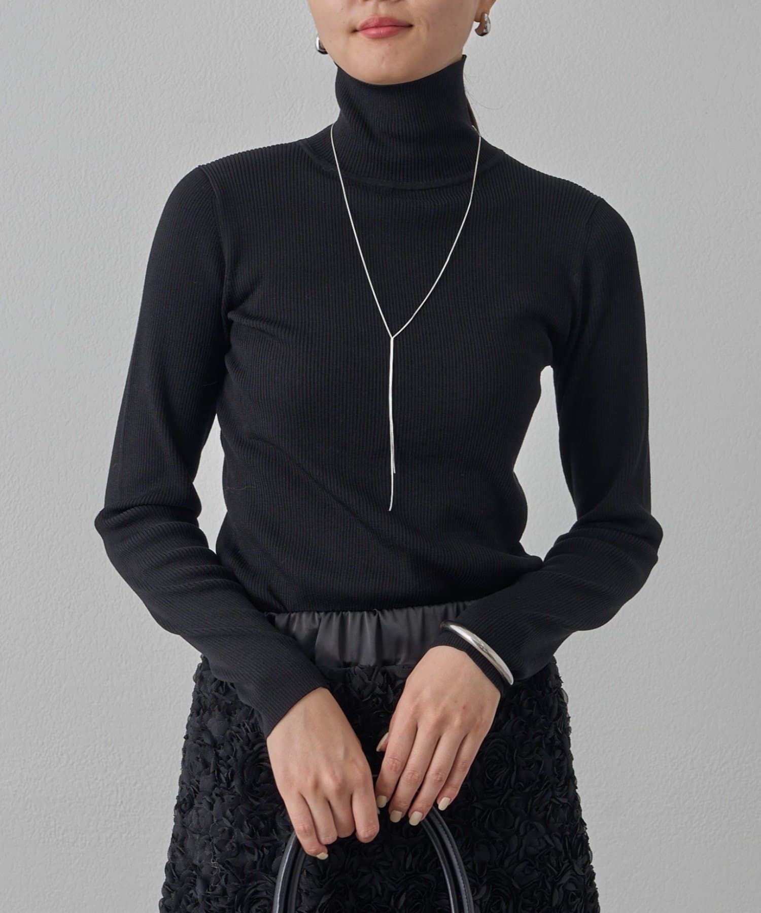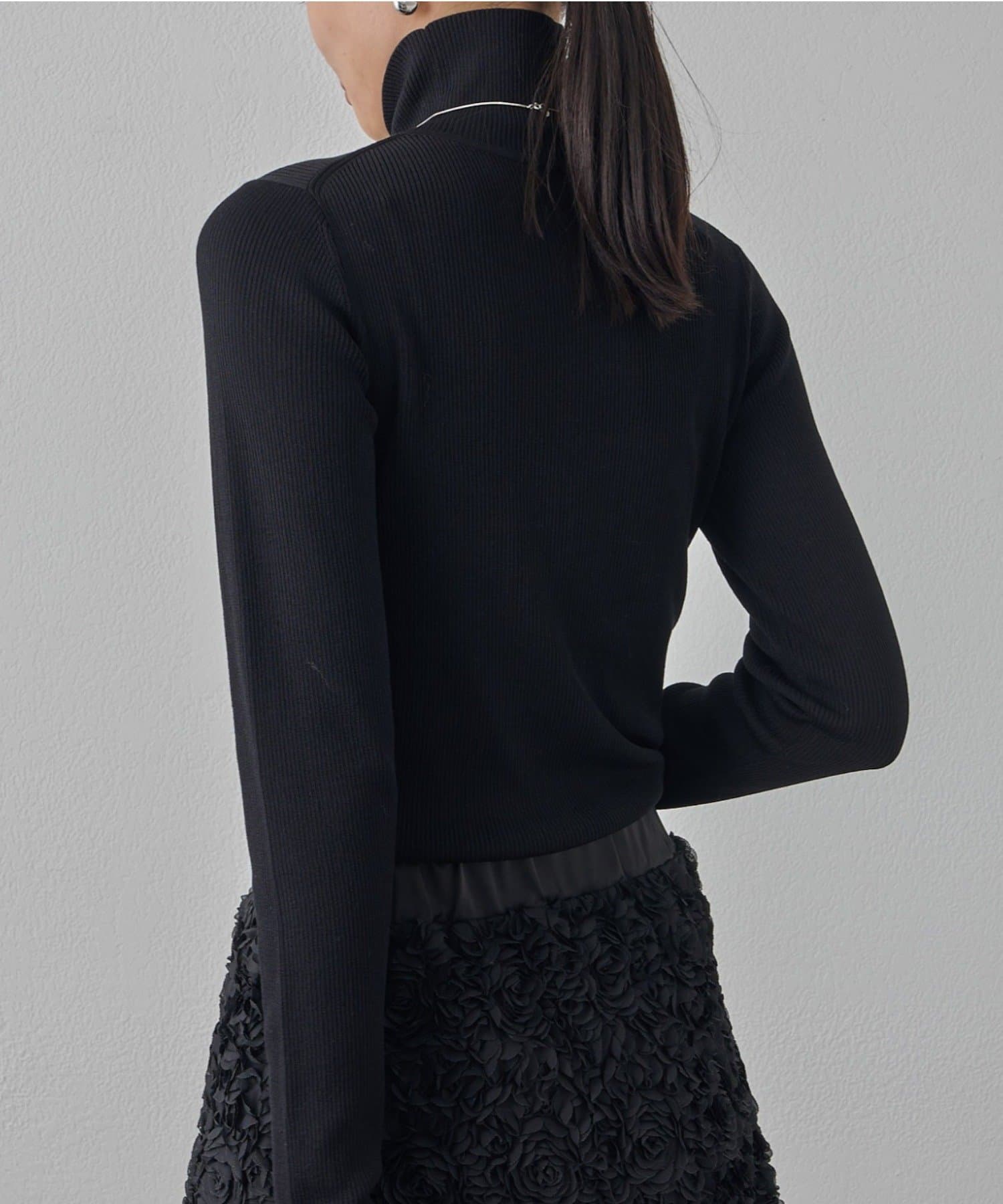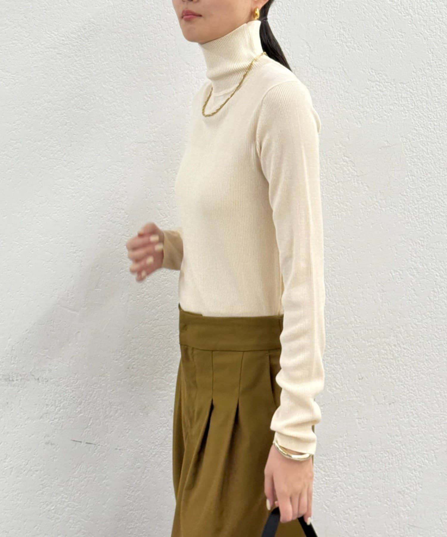 程よくボディラインにフィットするリブ編みが、女性らしいシルエットを演出。