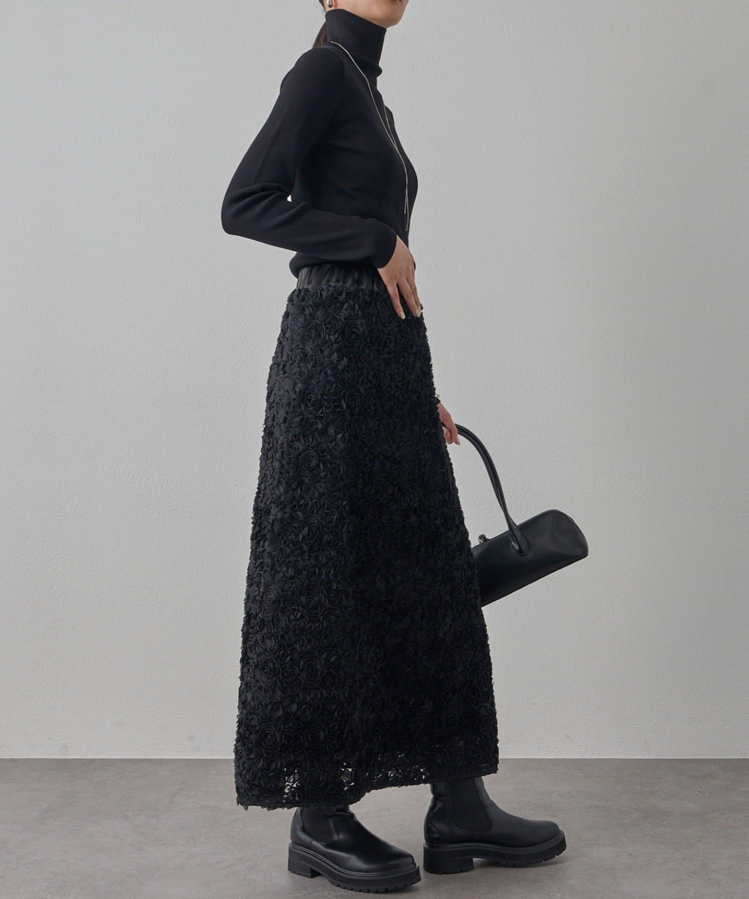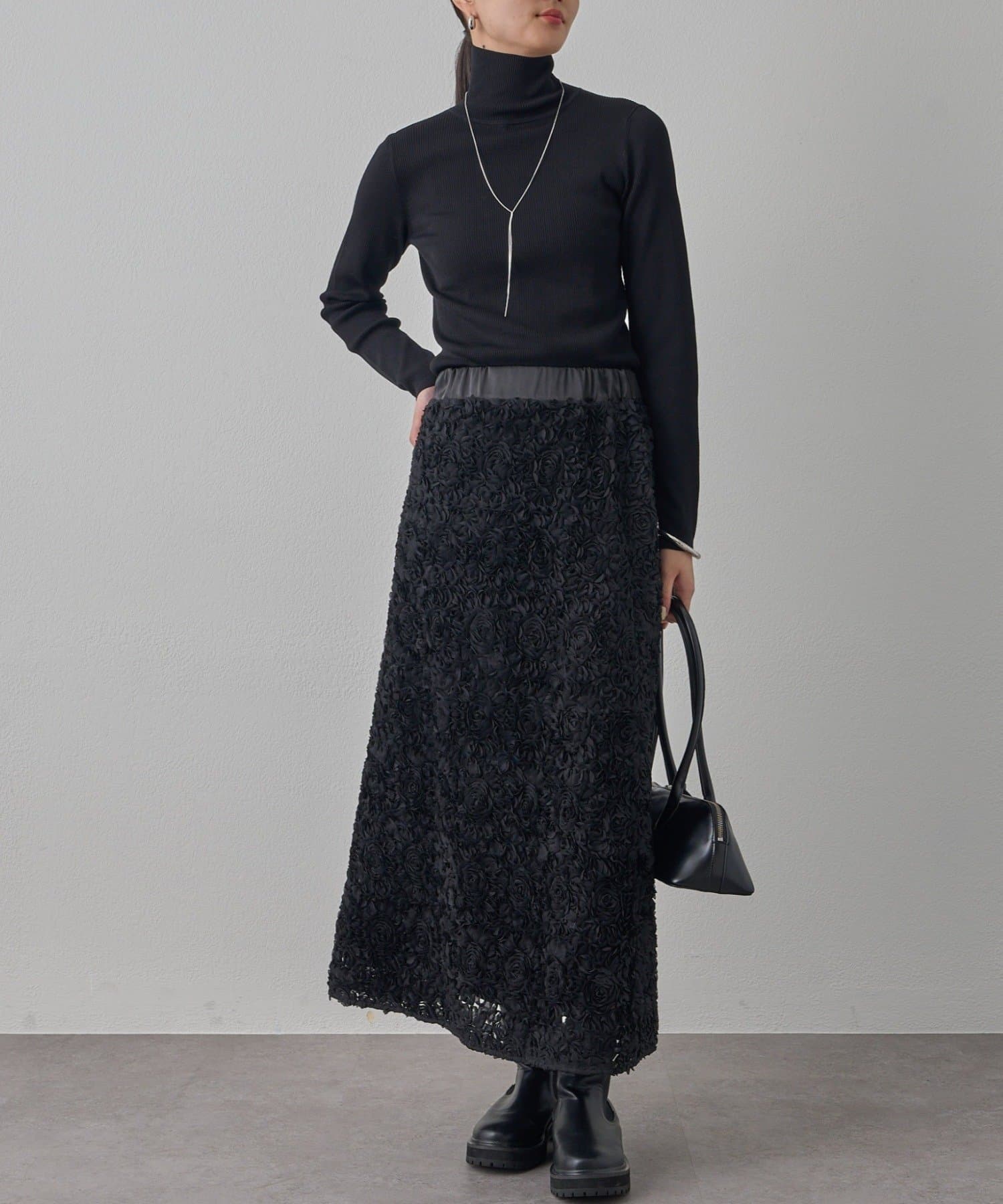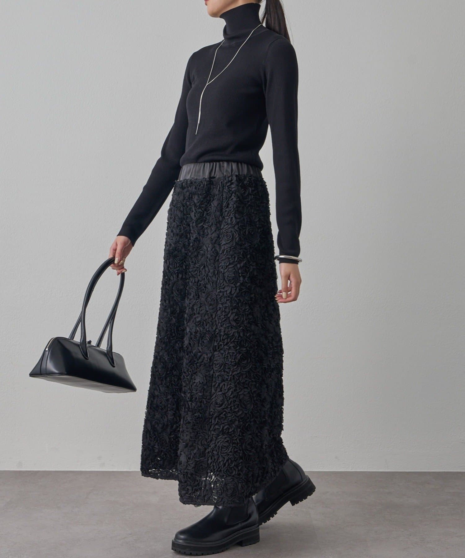 程よくボディラインにフィットするリブ編みが、女性らしいシルエットを演出。