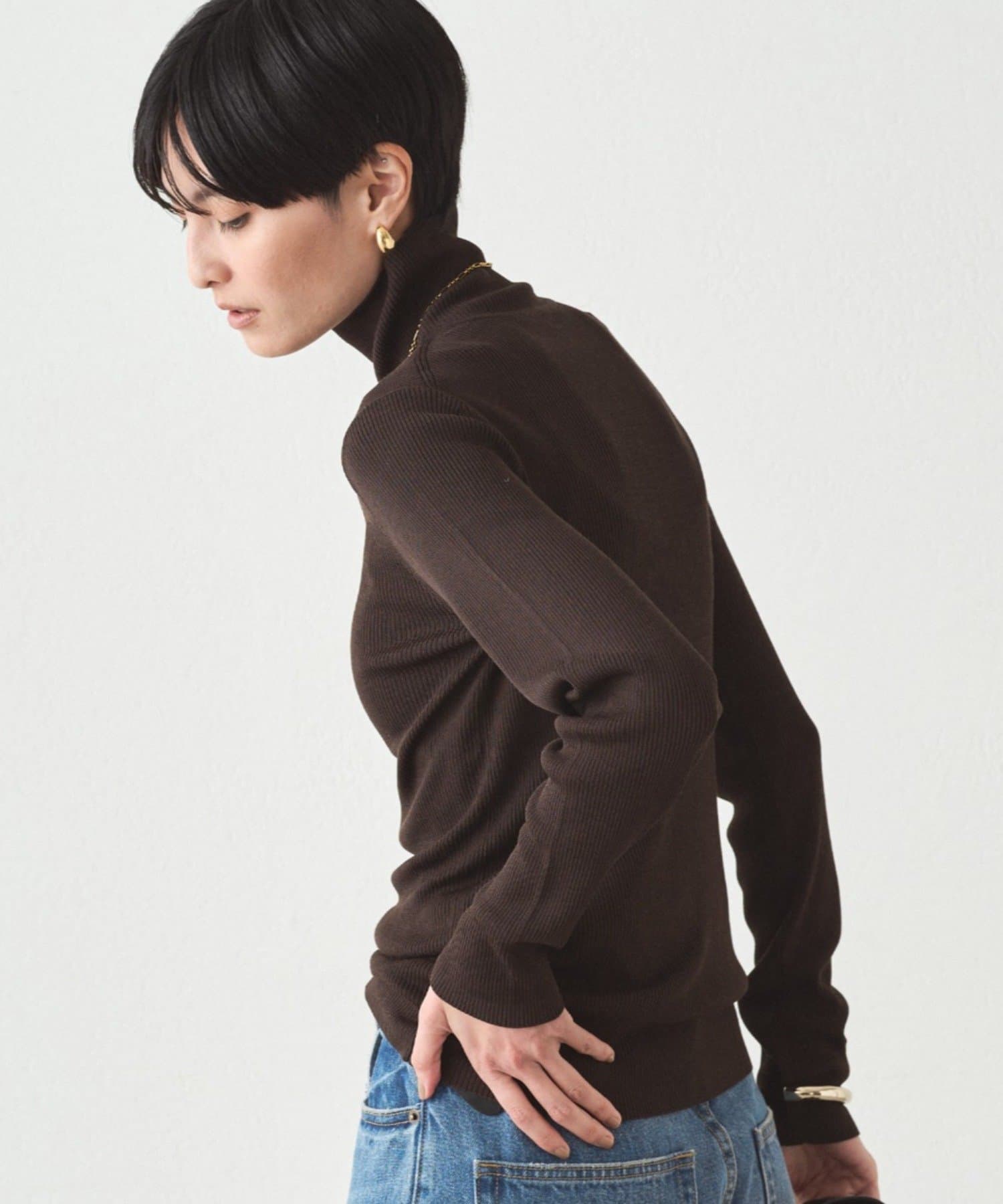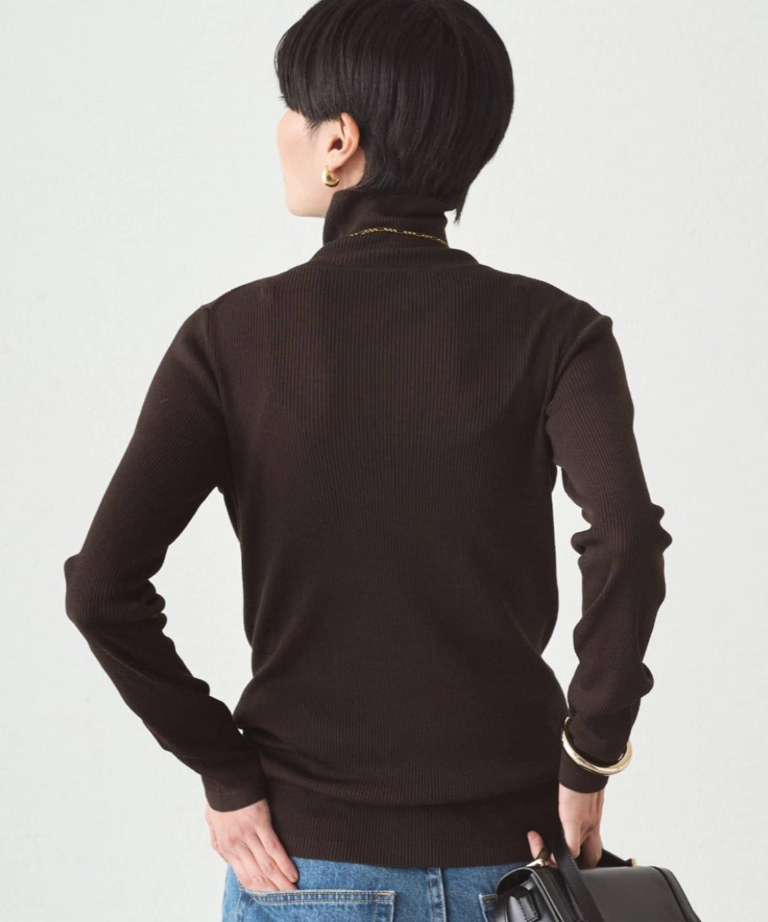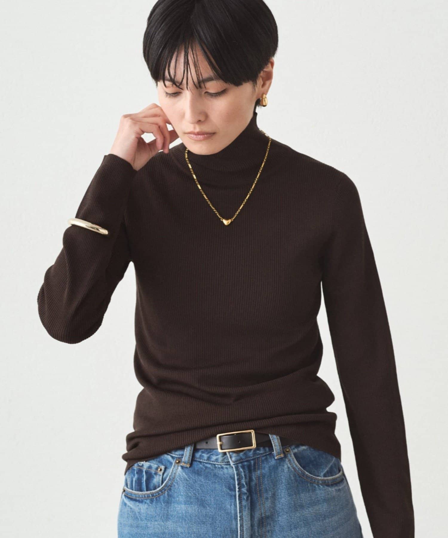 程よくボディラインにフィットするリブ編みが、女性らしいシルエットを演出。