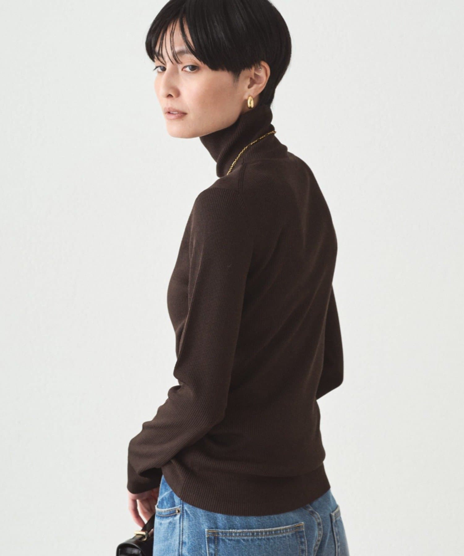 タートルネックが首元を優しく包み込み、小顔効果も期待できます。