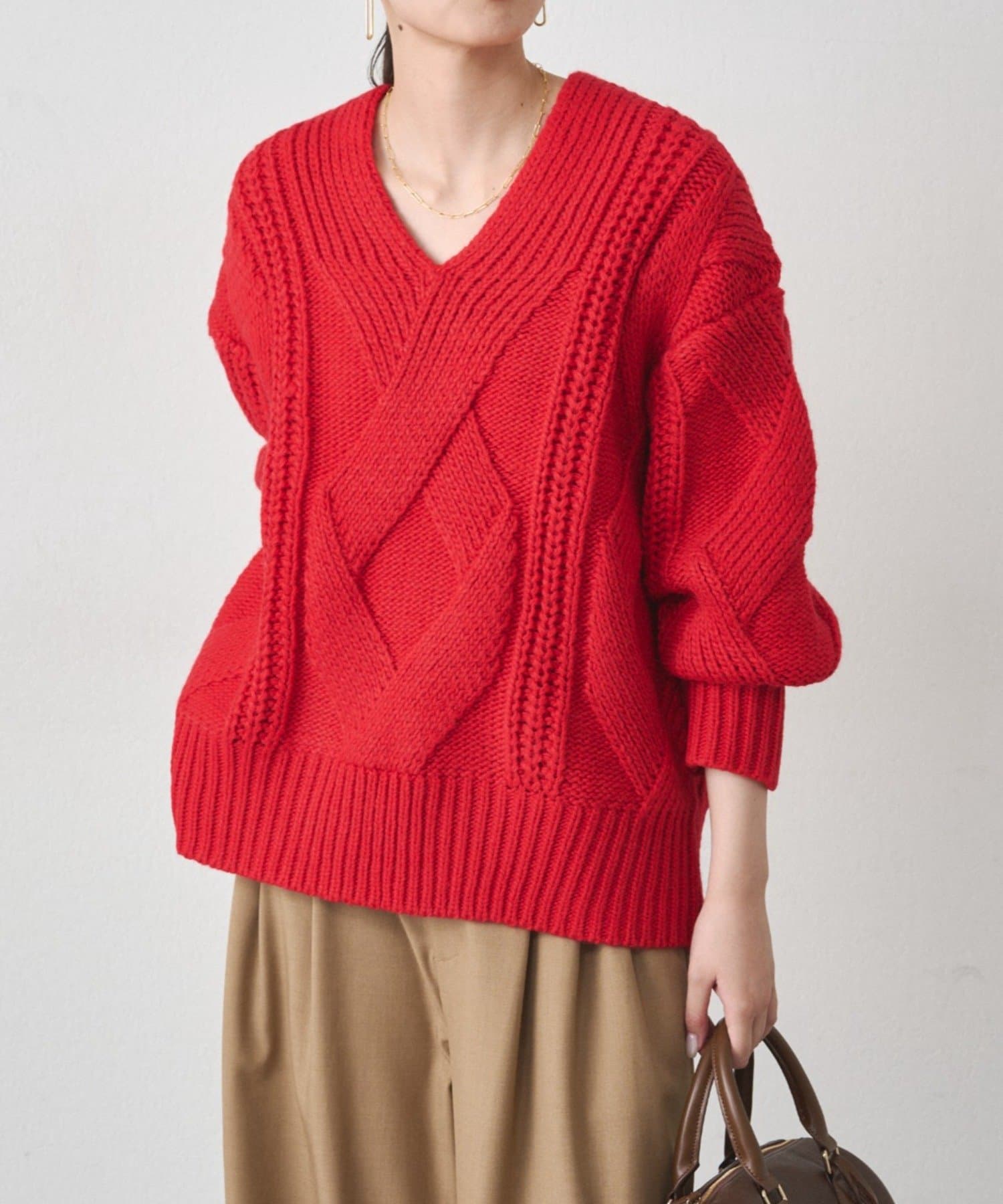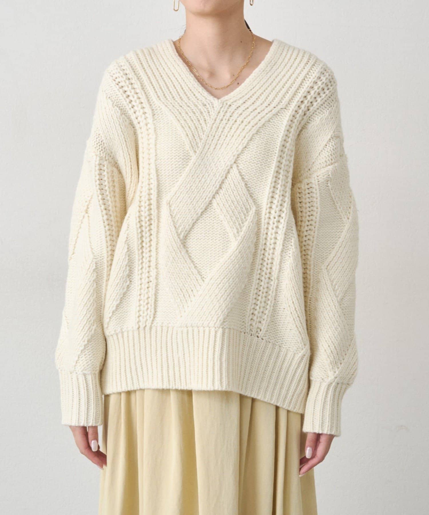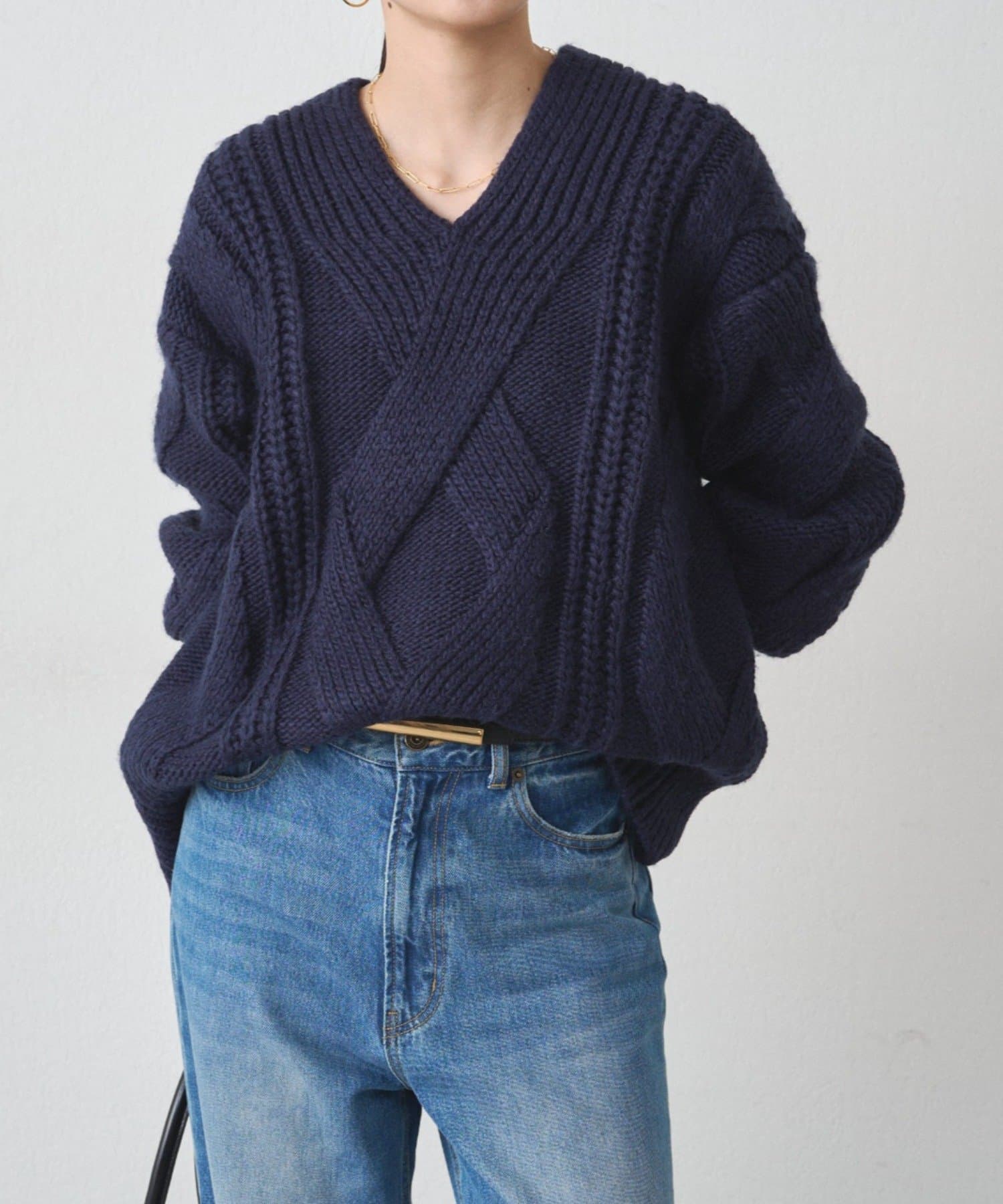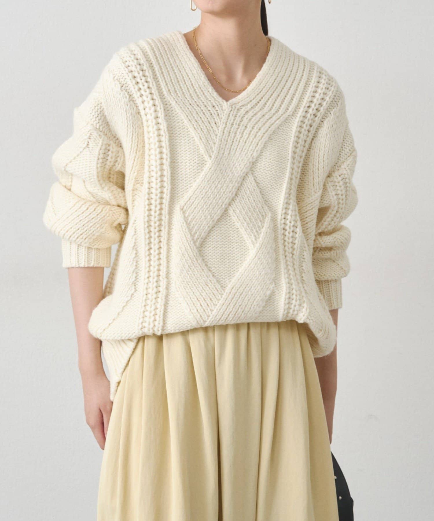 ざっくり感がたまらない。大人のこなれ感を演出する、ケーブルニット。