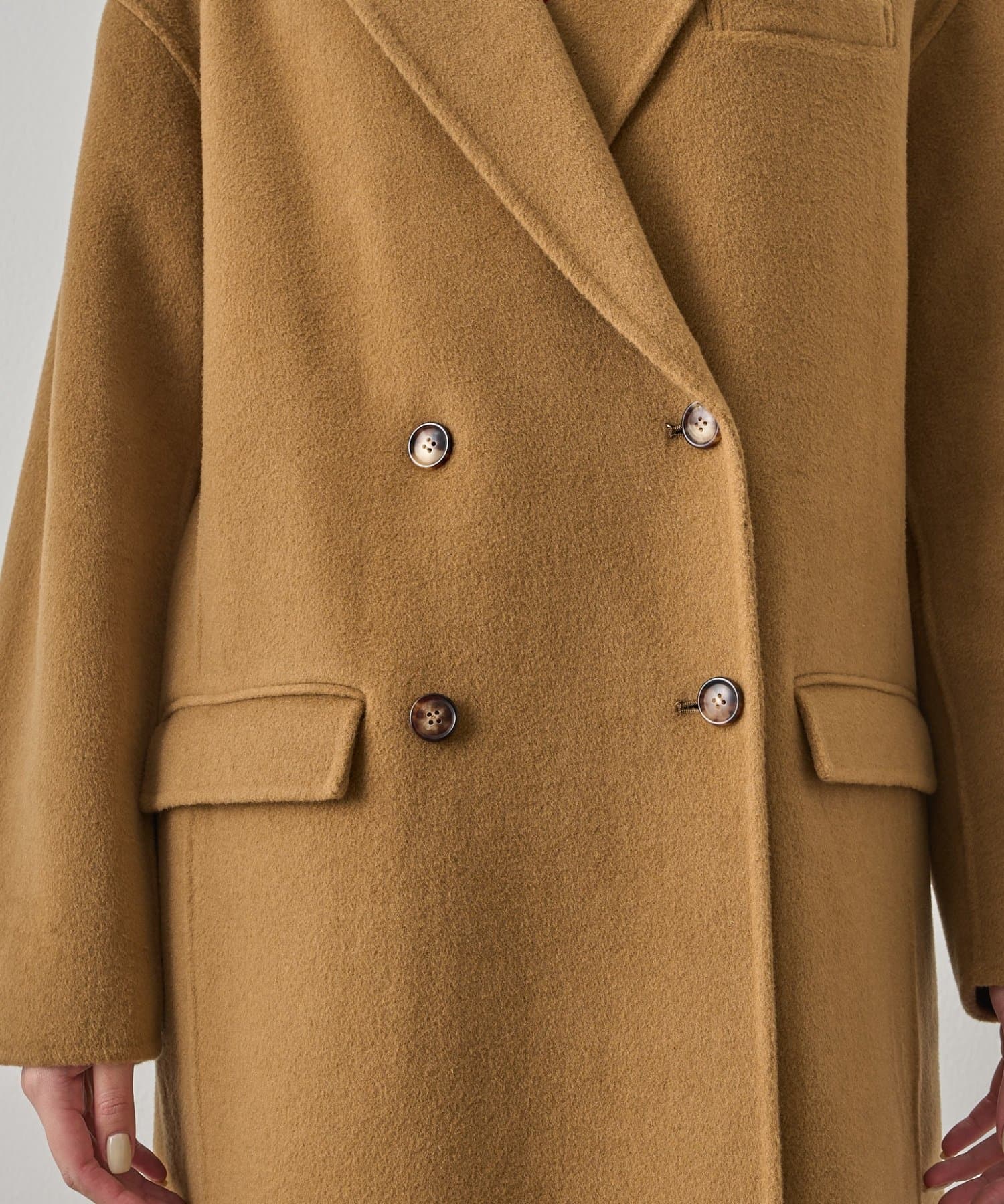 ダブルボタンのデザインが、クラシカルで上品な雰囲気をプラス。