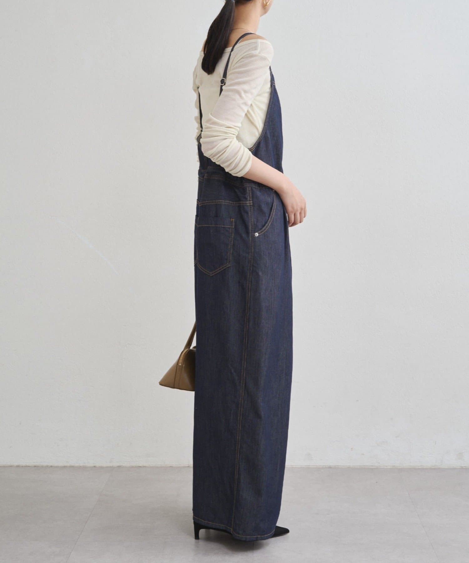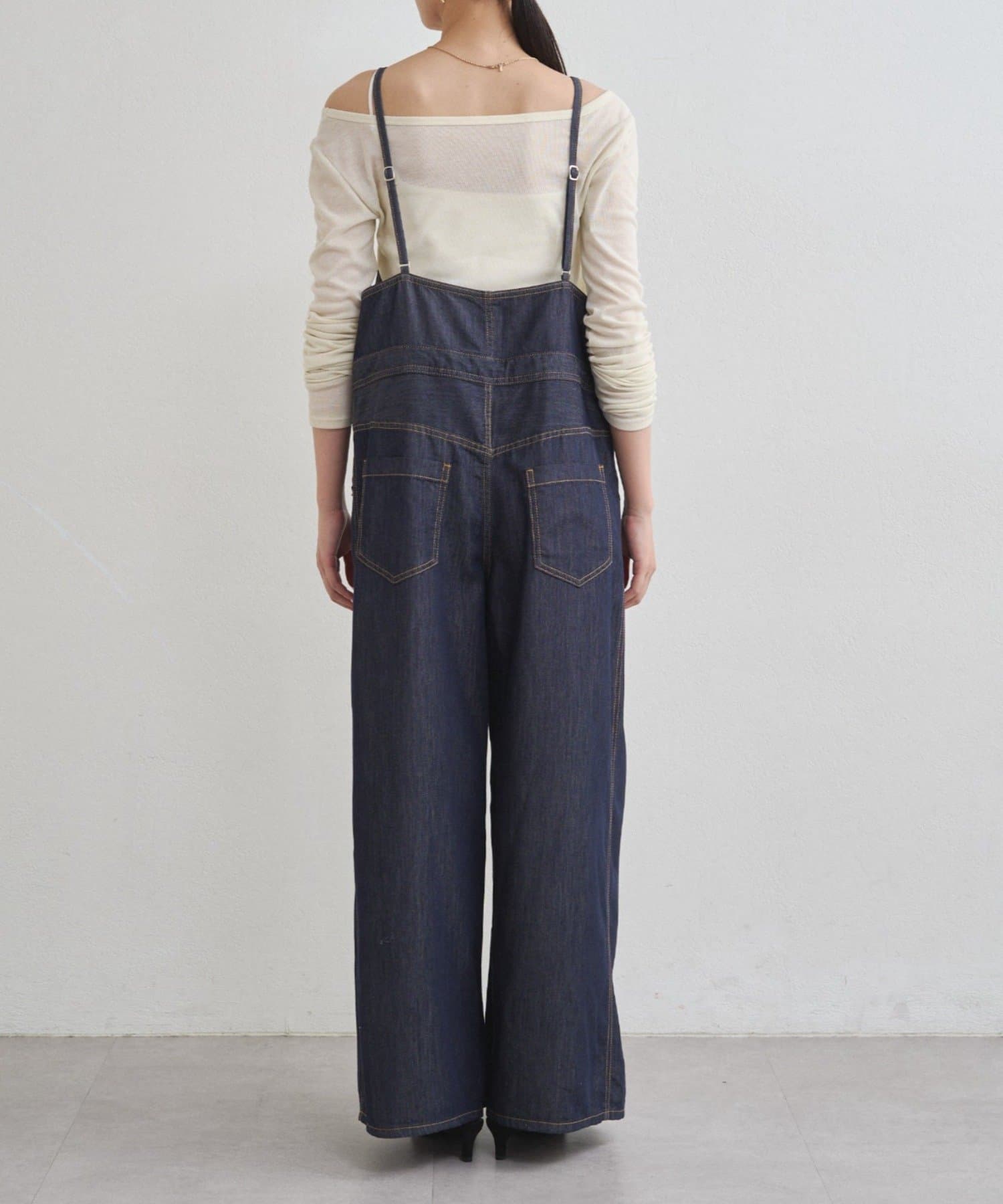 少し薄めでツヤ感のあるライトなデニム生地を使用したサロペット。
